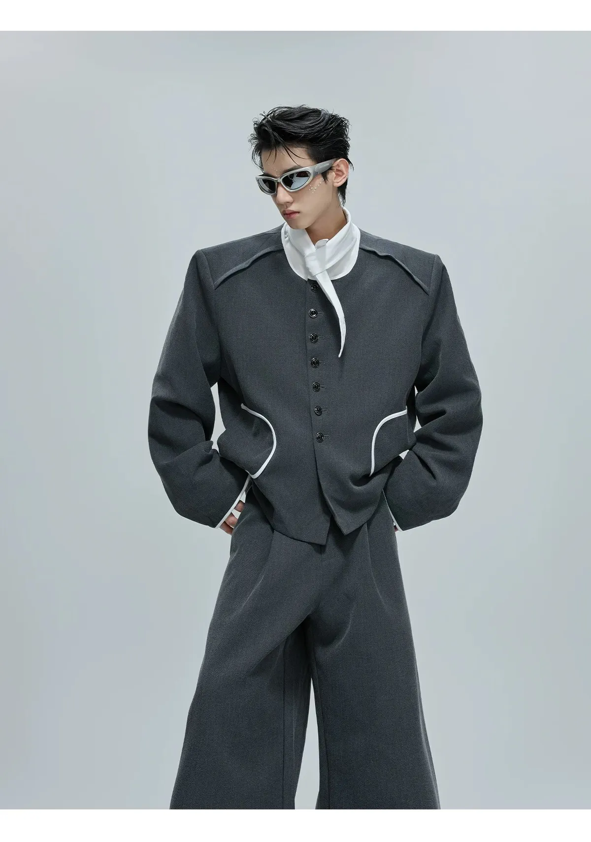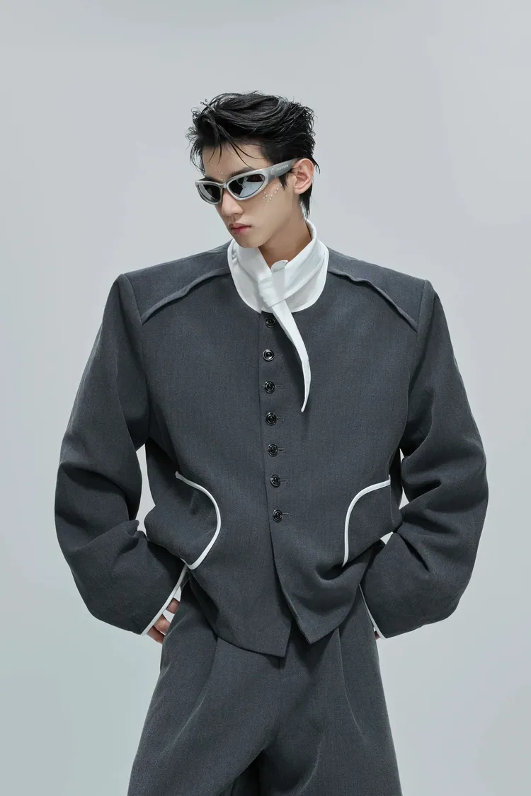 ARGUE 不規則裁片 立領 外套(卡其/灰)
