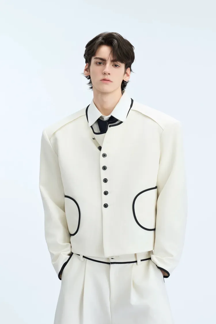 ARGUE 絲綢絨面 寬短大口袋 外套(白棕/黑白)