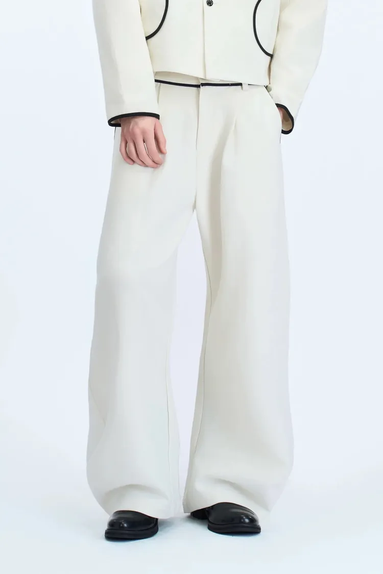 ARGUE 光澤感 壓褶綁帶 直筒 西裝褲(黑/咖)