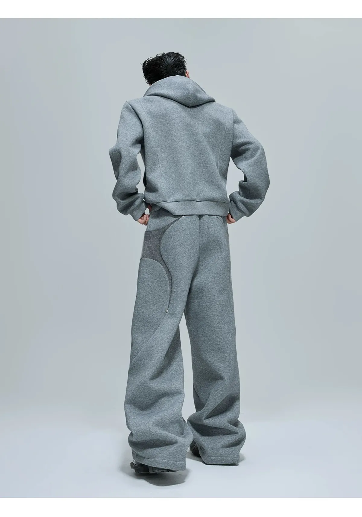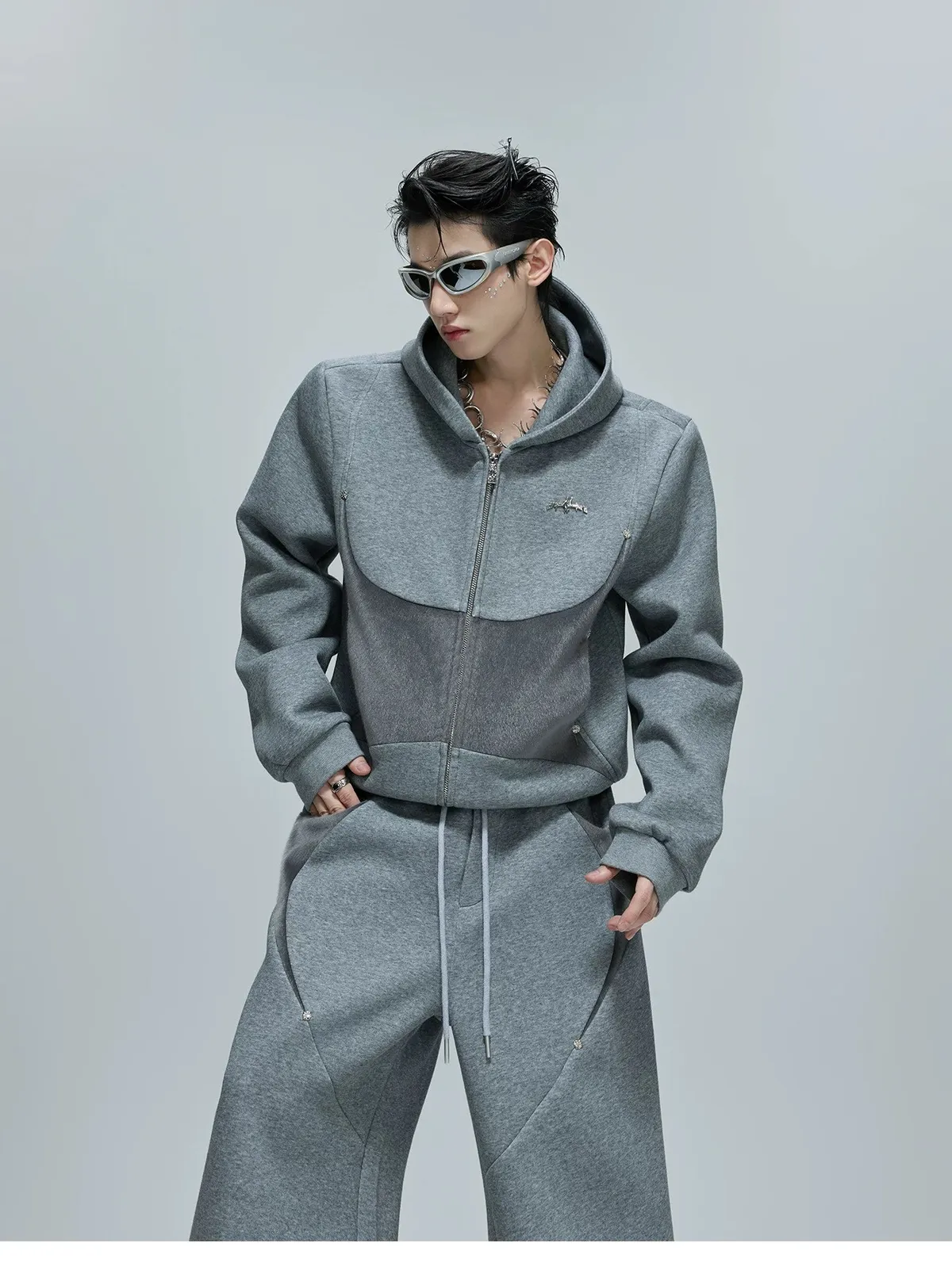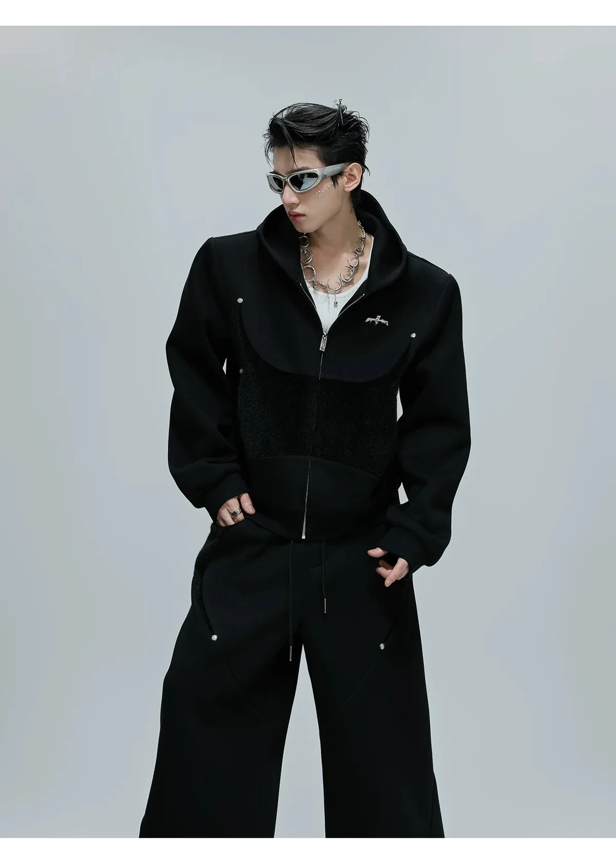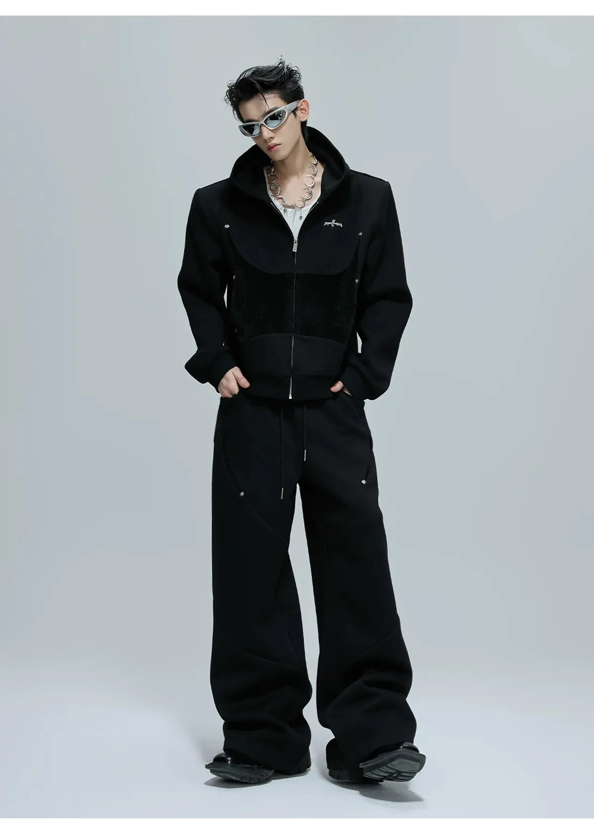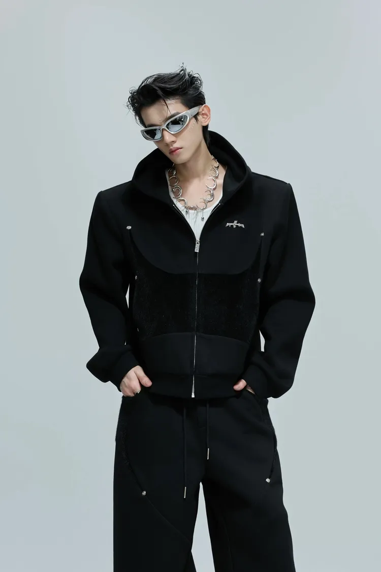 ARGUE 馬毛拼接 解構短版 連帽外套 棉褲 套裝(黑/灰)