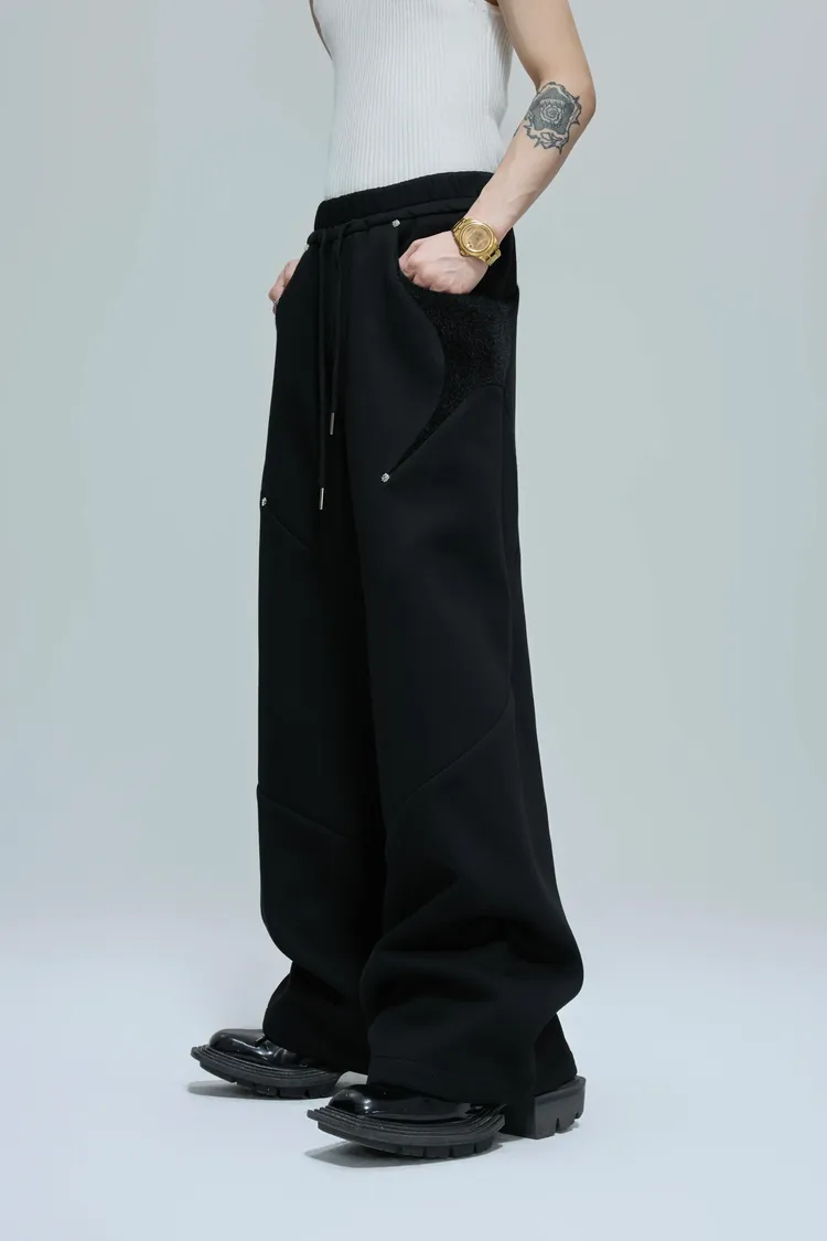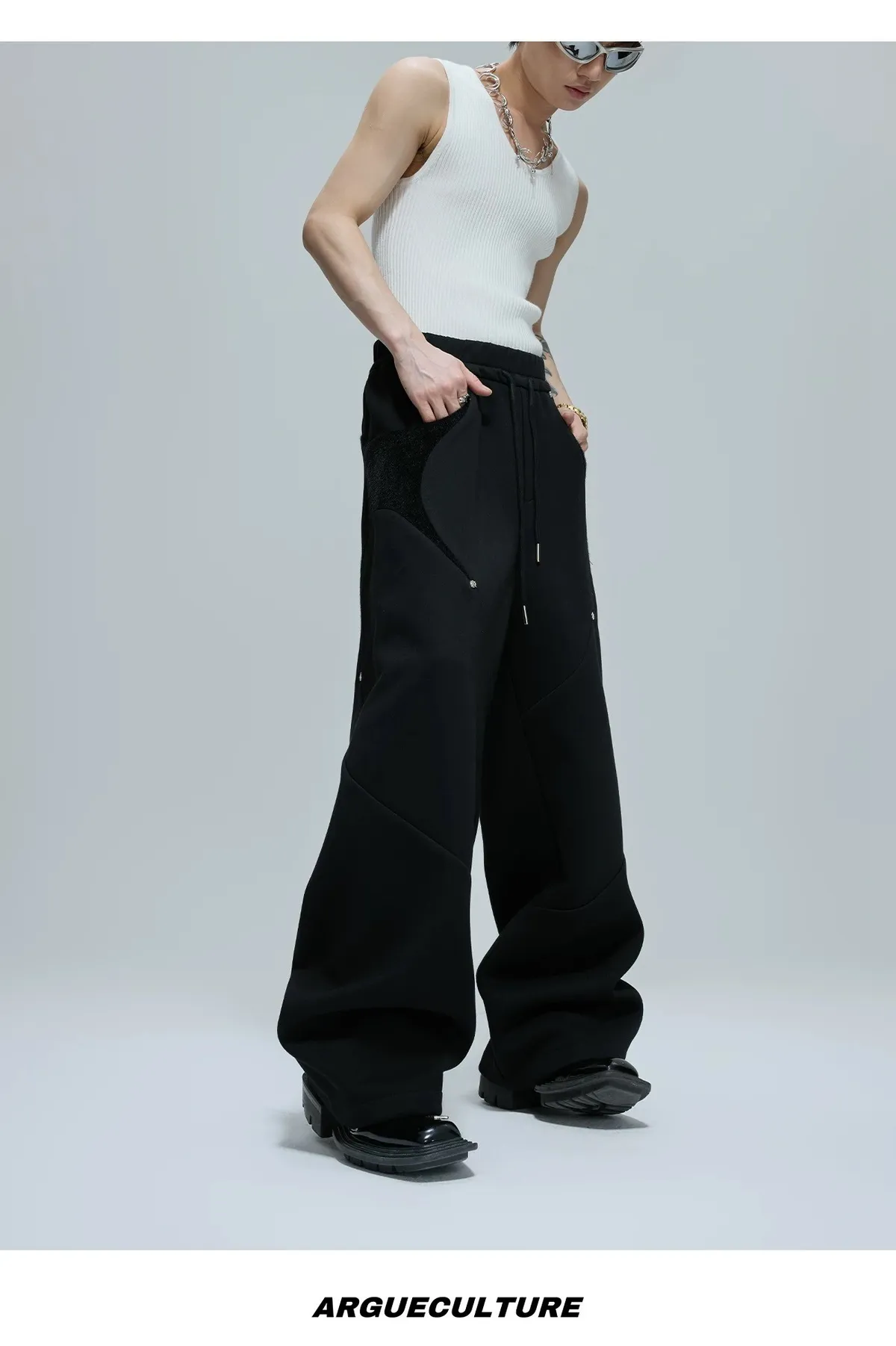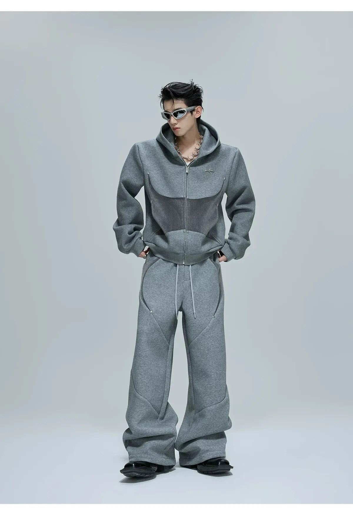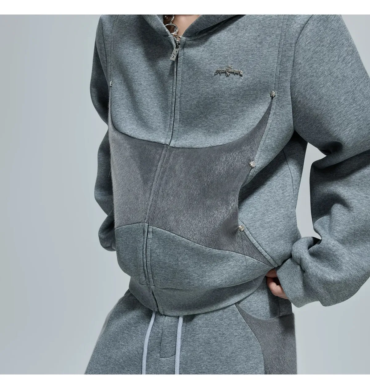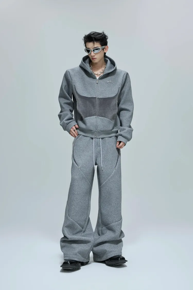ARGUE 馬毛拼接 解構短版 連帽外套 棉褲 套裝(黑/灰)