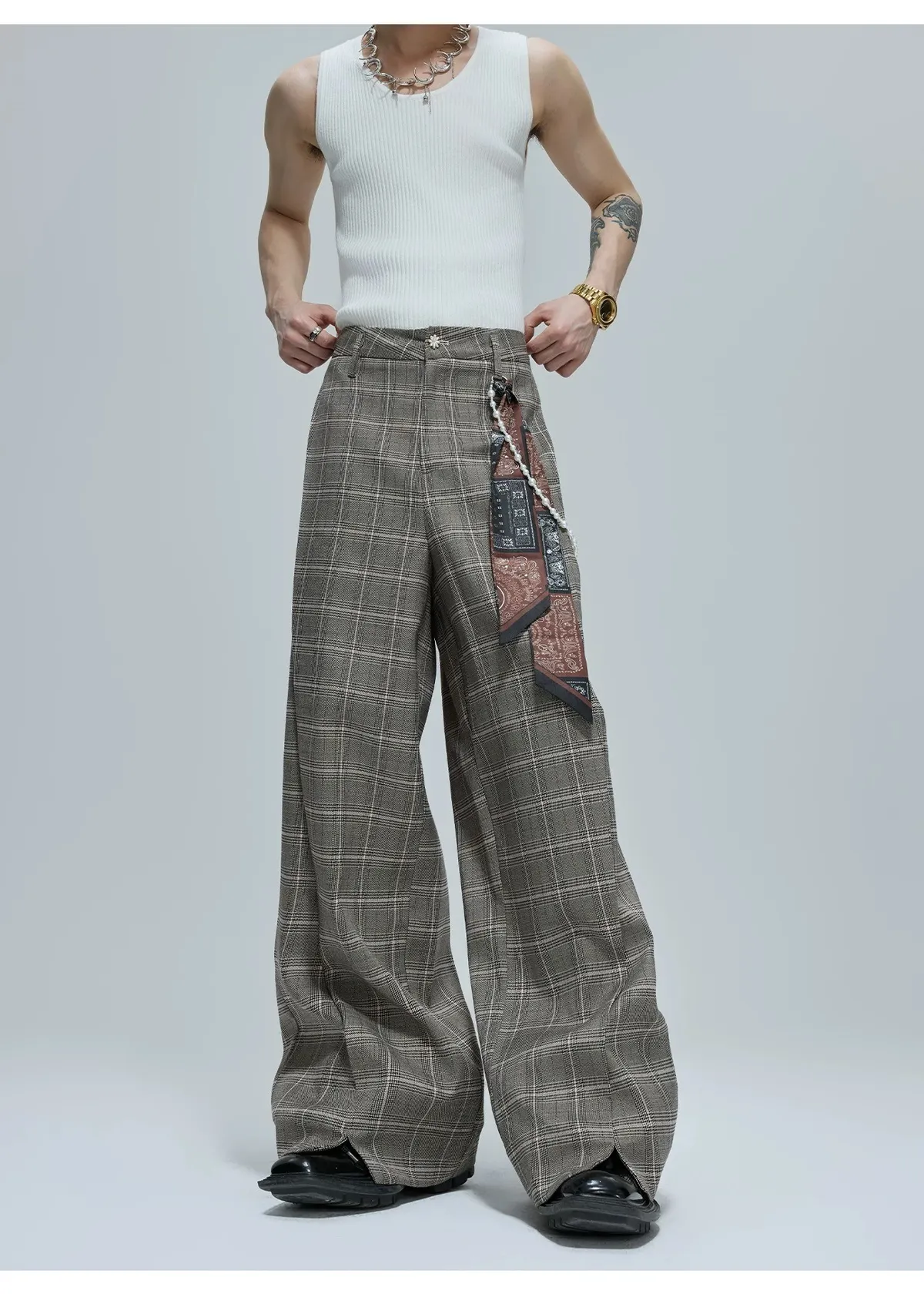 ARGUE 飄帶領巾 胸花別針 襯衫 西裝褲 套裝(黑/棕/白)
