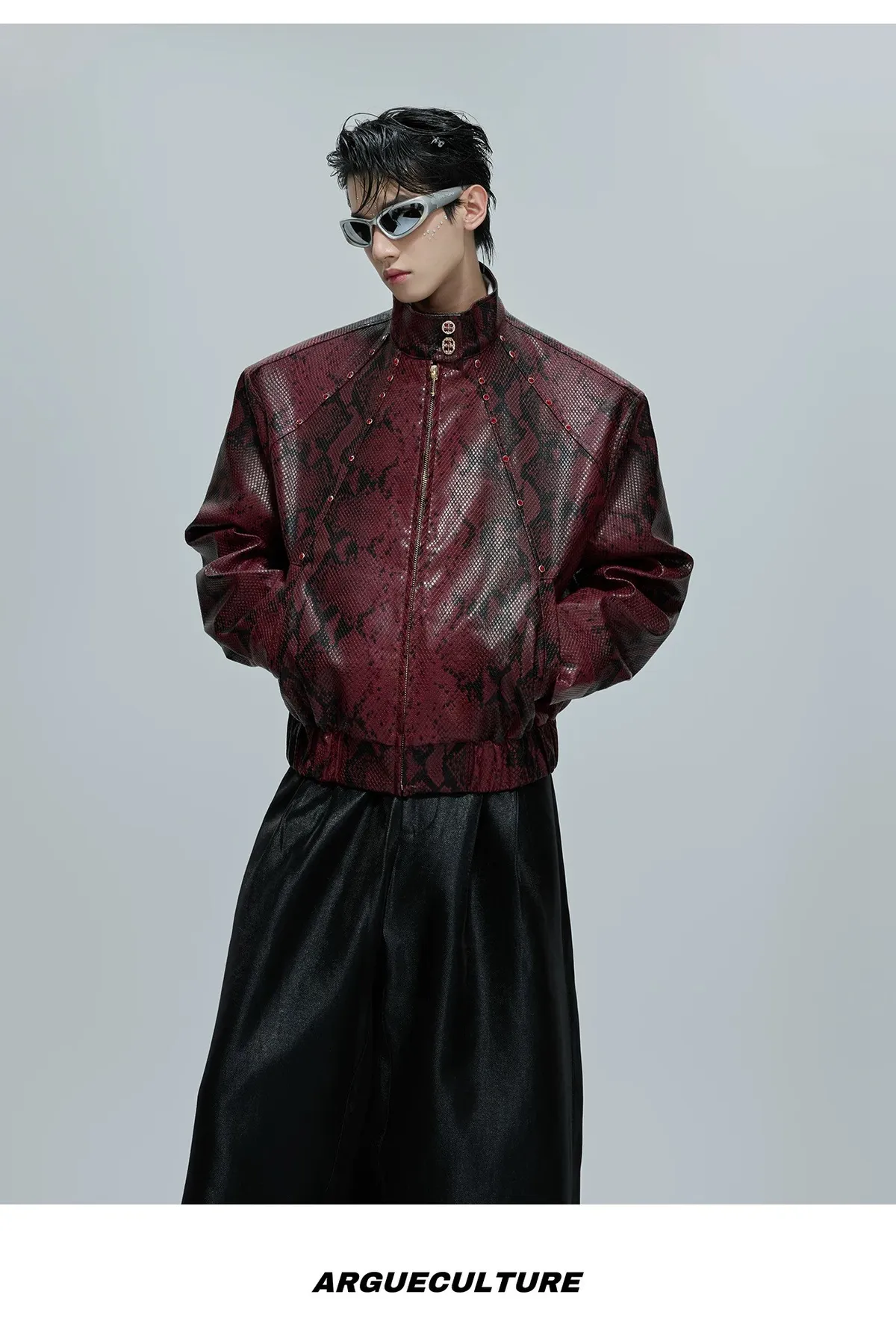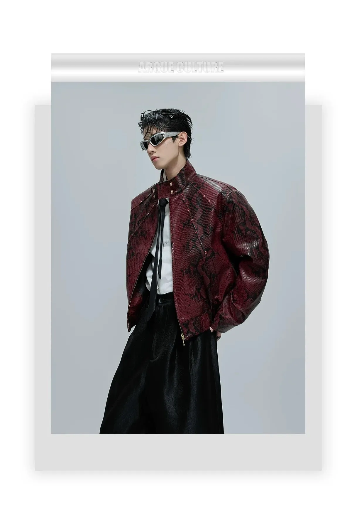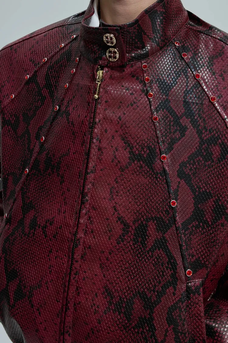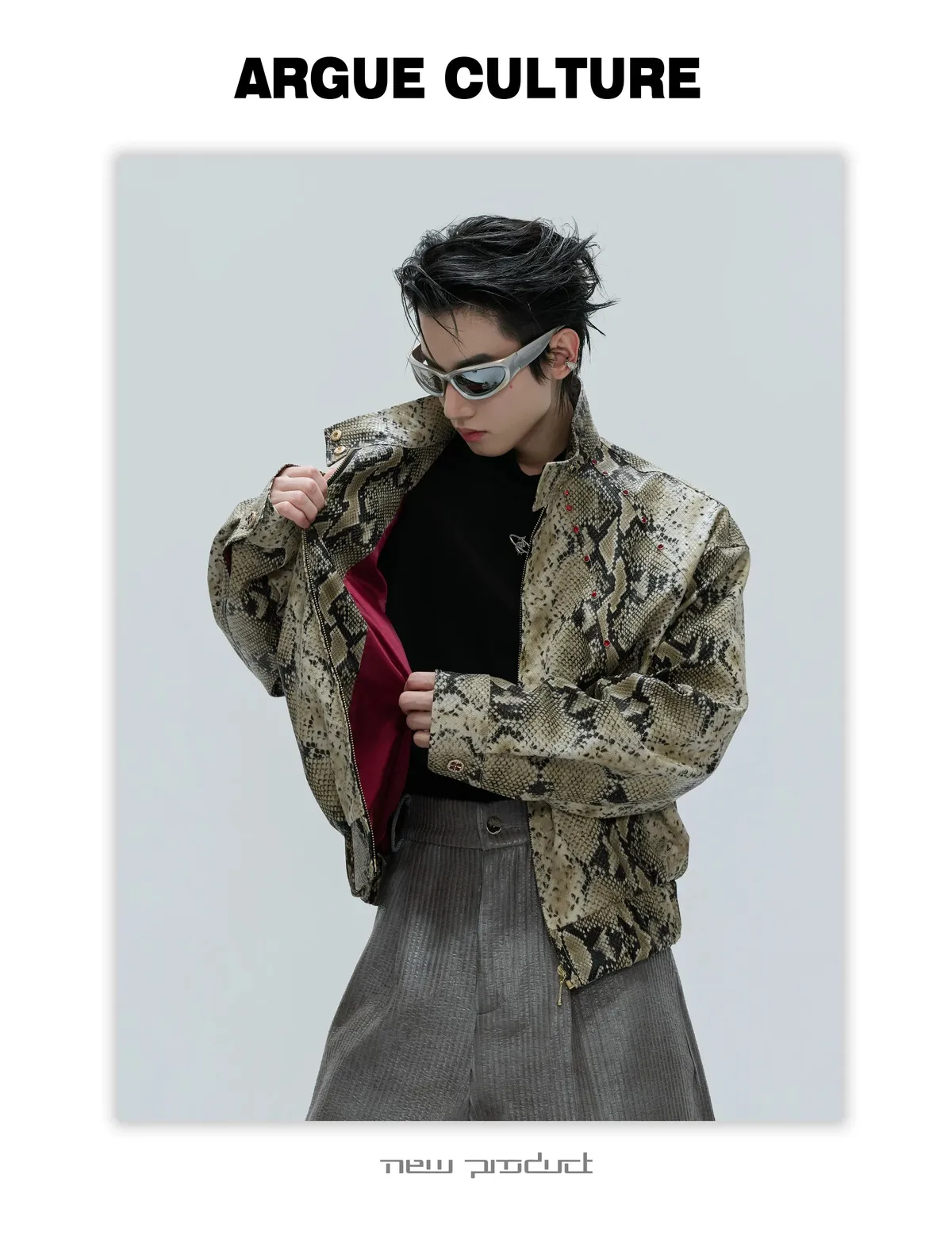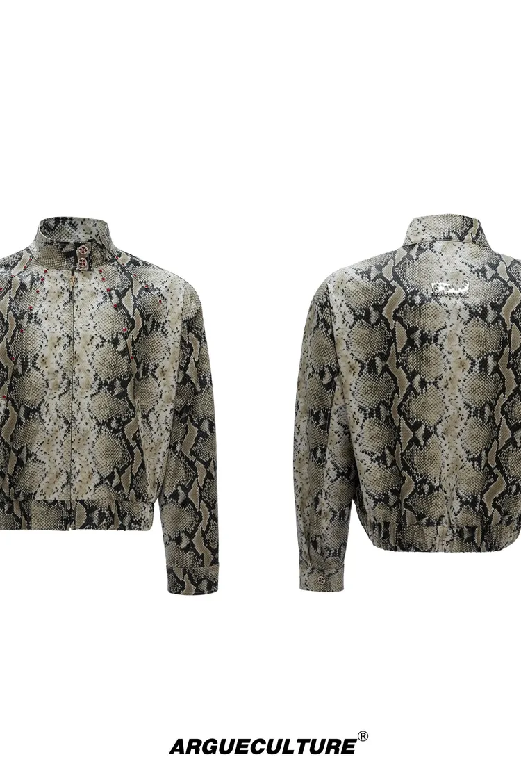 ARGUE 血蟒蛇紋 寶石 寬短 外套(黑/紅/棕)
