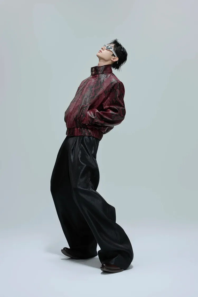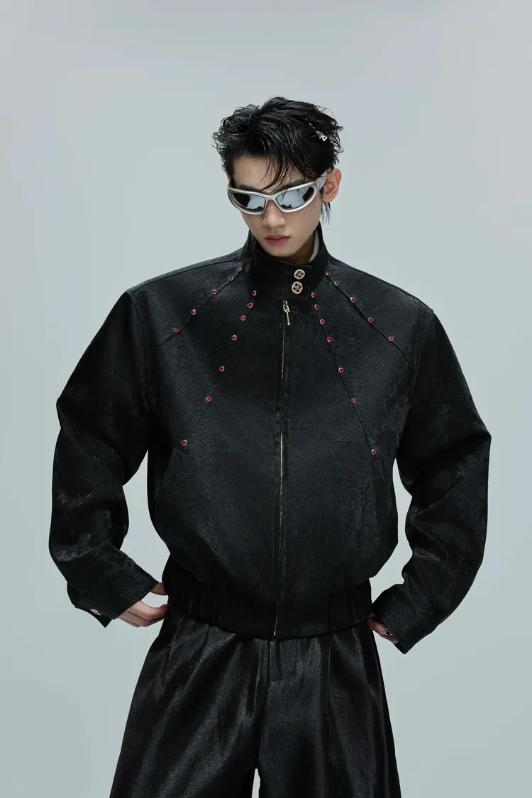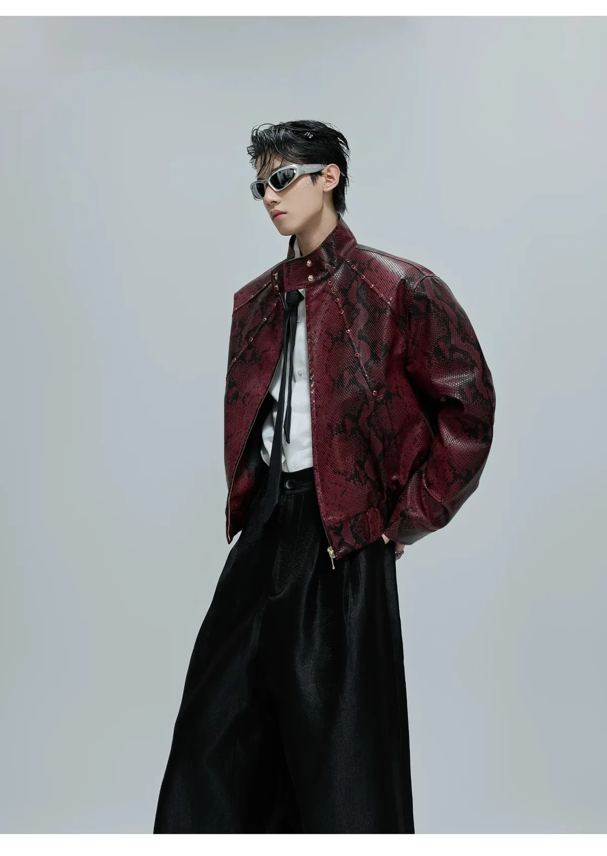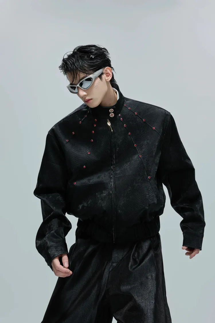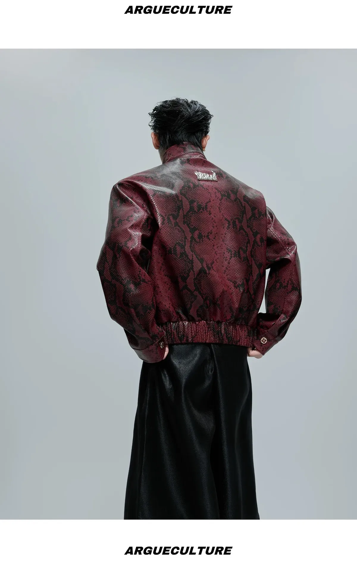 ARGUE 血蟒蛇紋 寶石 寬短 外套(黑/紅/棕)