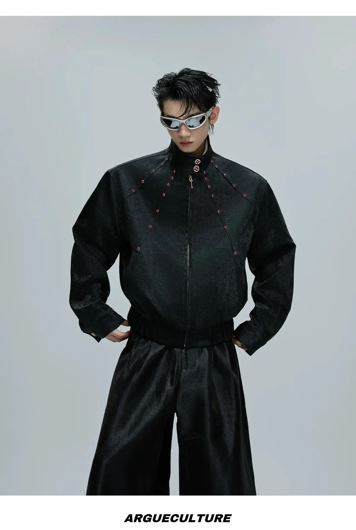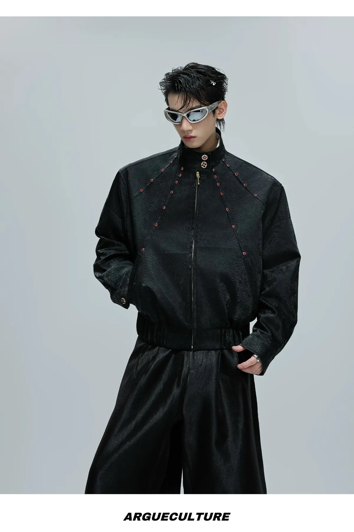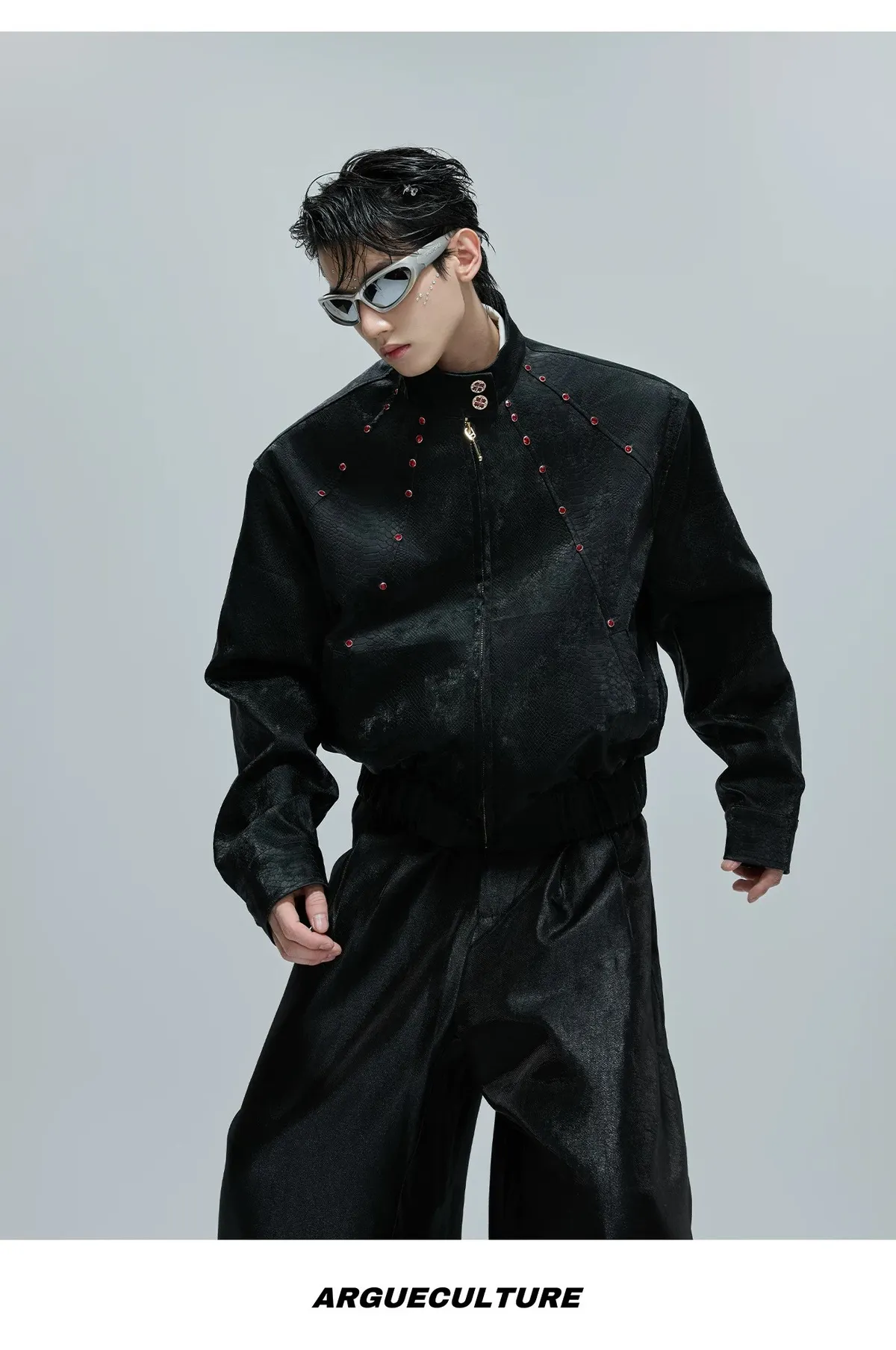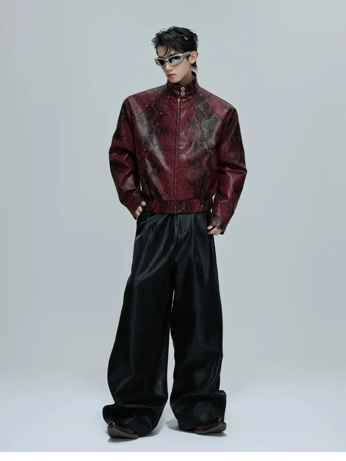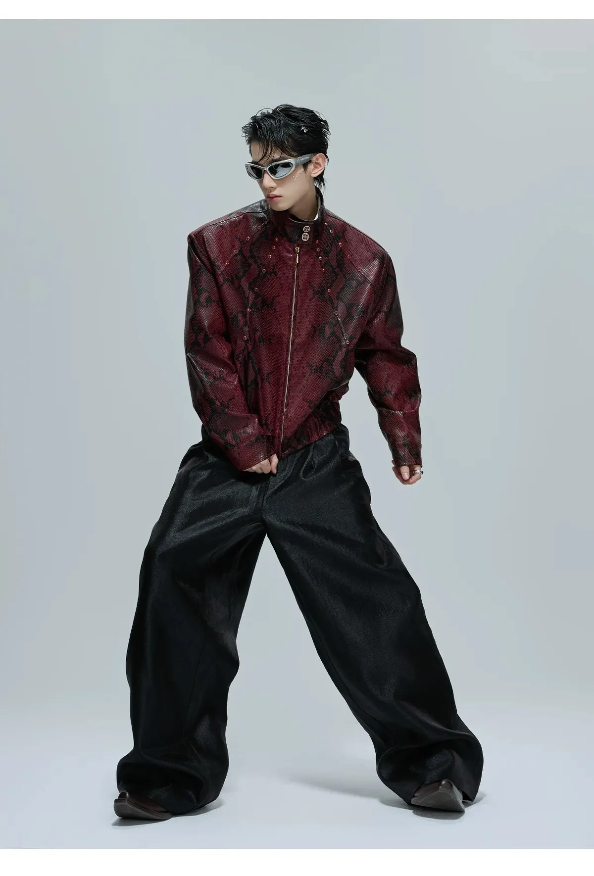 ARGUE 血蟒蛇紋 寶石 寬短 外套(黑/紅/棕)