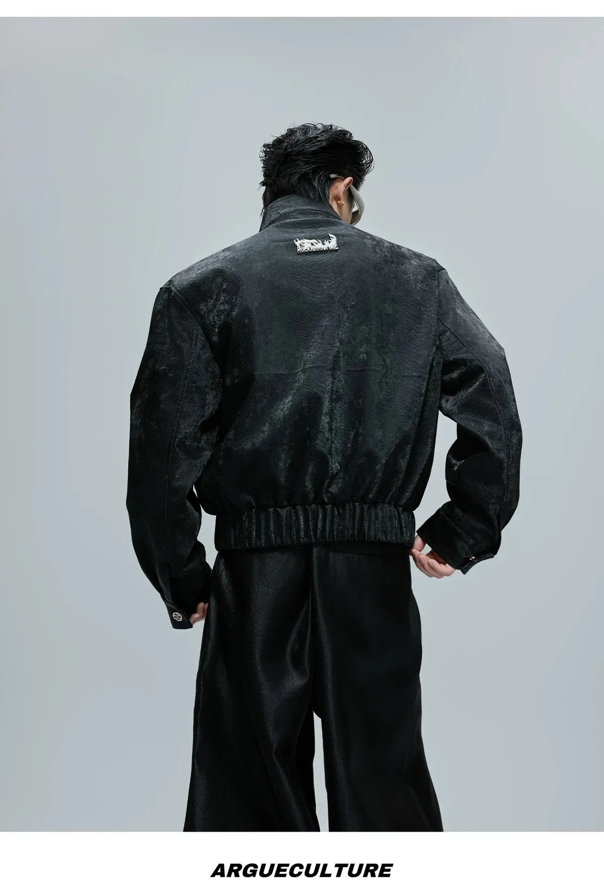 ARGUE 絲綢絨面 寬短大口袋 外套(白棕/黑白)
