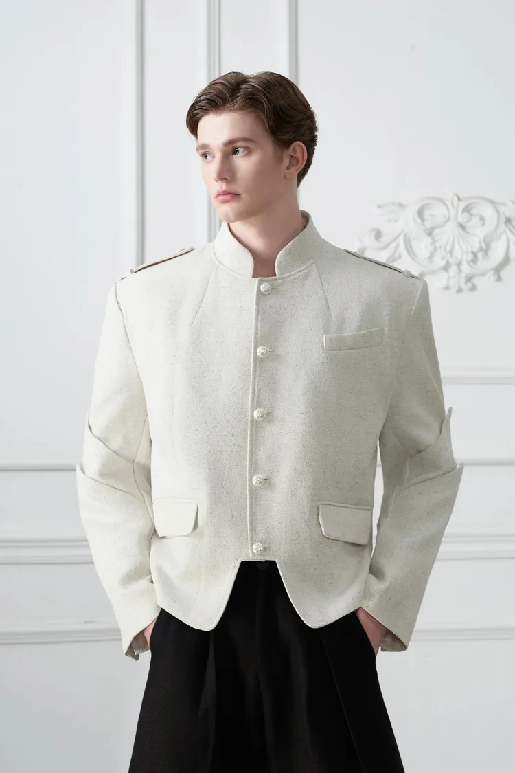 ARGUE 不規則裁片 立領 外套(卡其/灰)