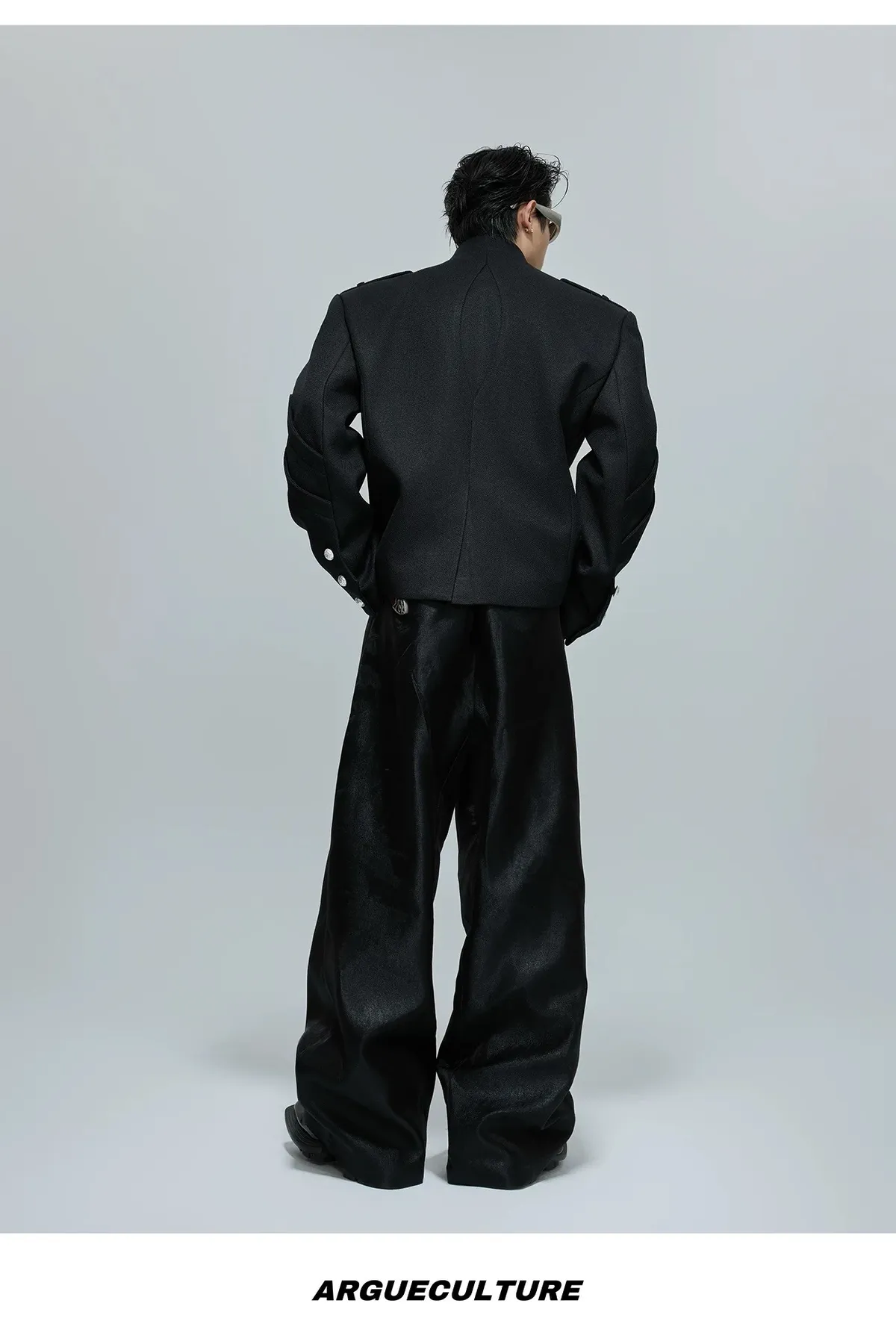 ARGUE 光澤感 壓褶綁帶 直筒 西裝褲(黑/咖)
