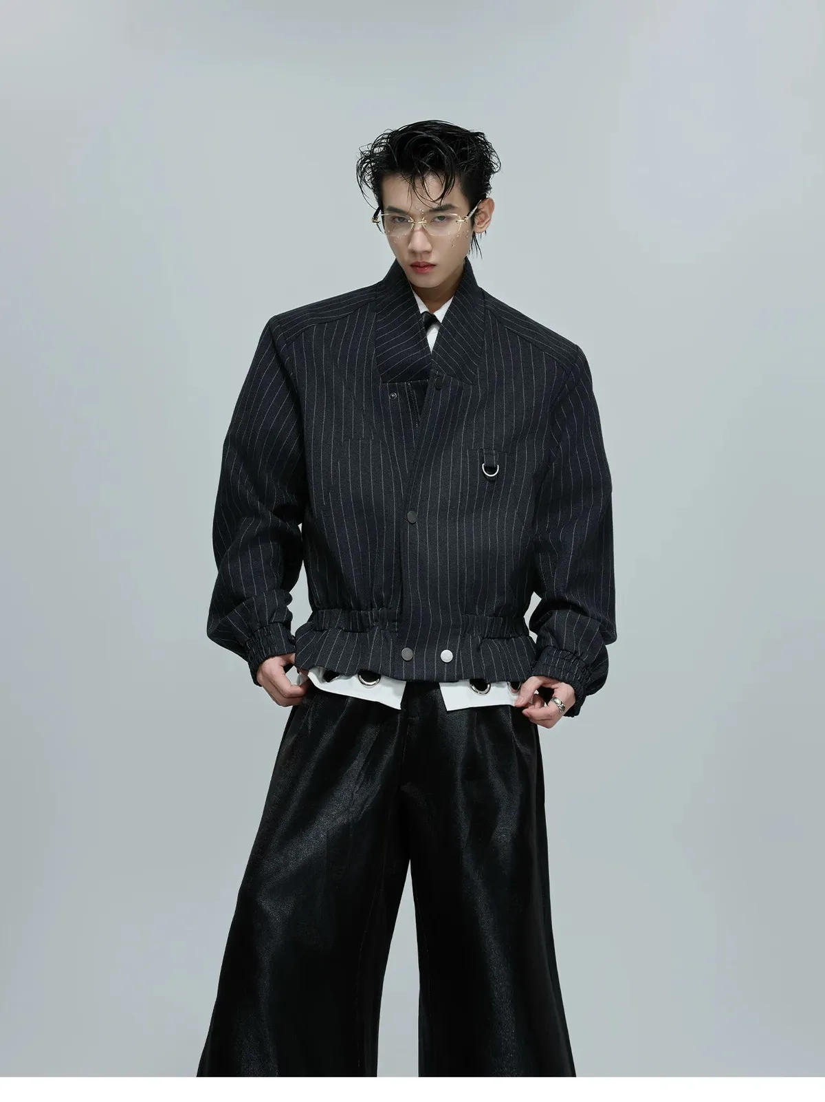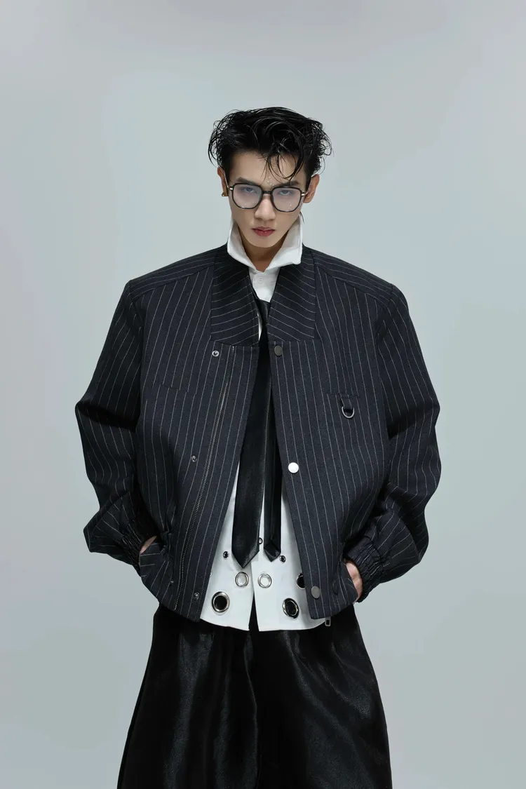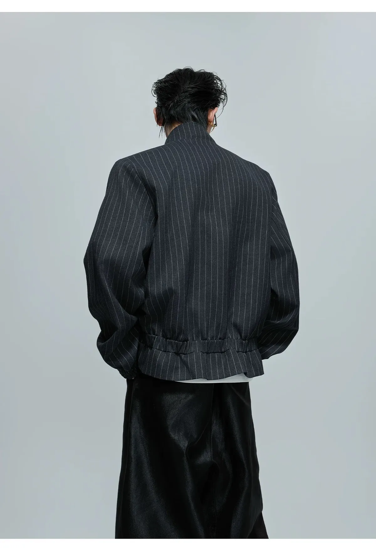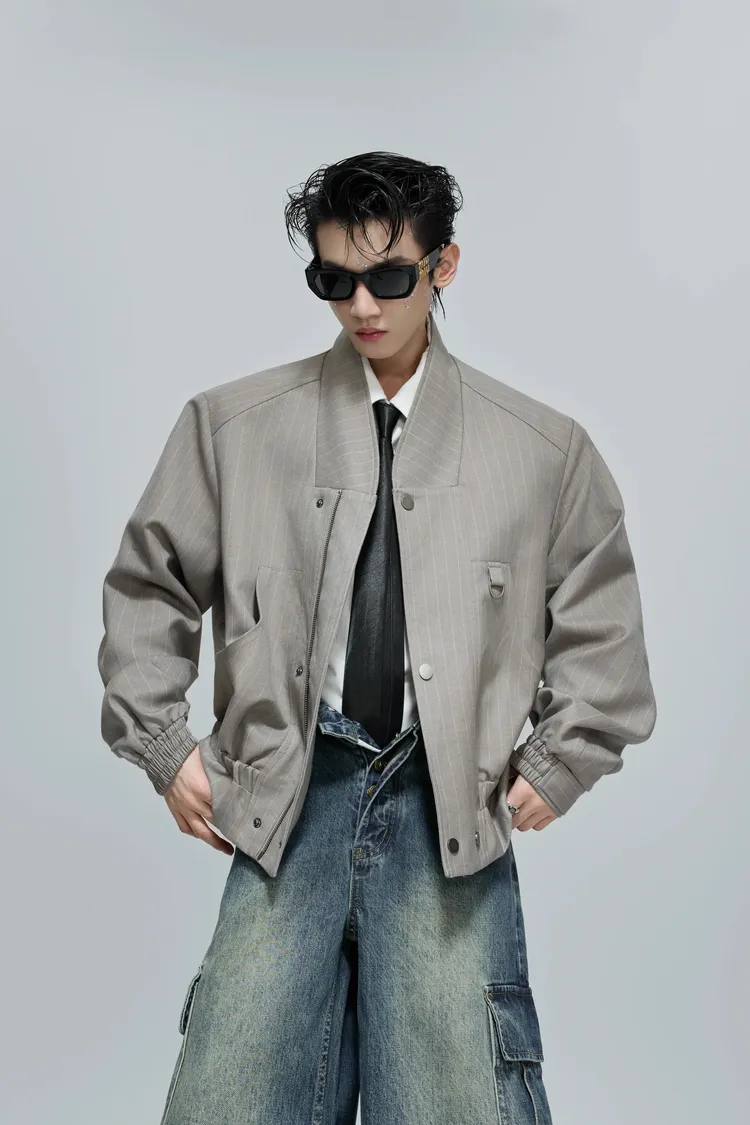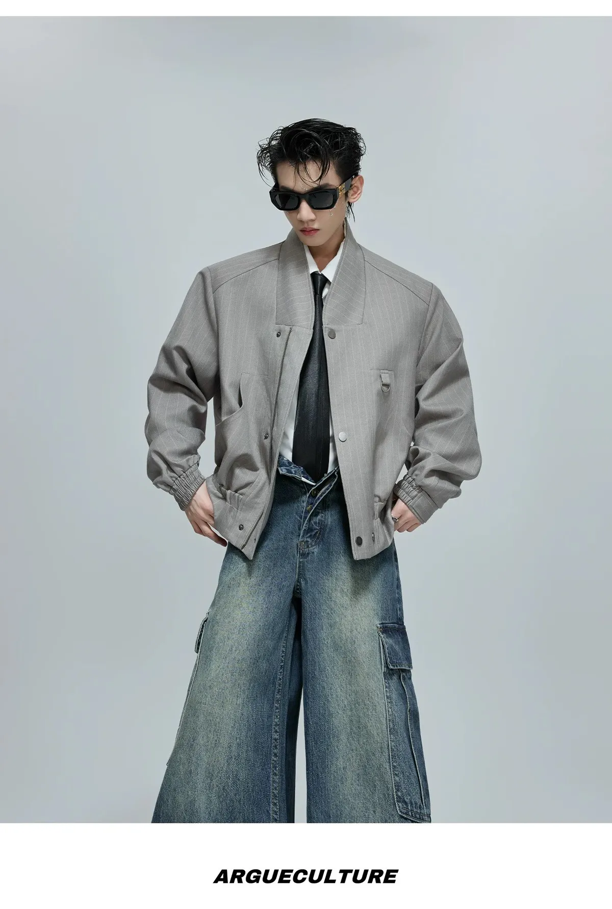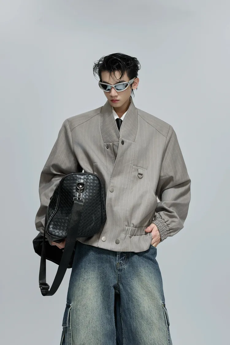 ARGUE 立領條紋 短寬廓形 外套(深藍/灰)