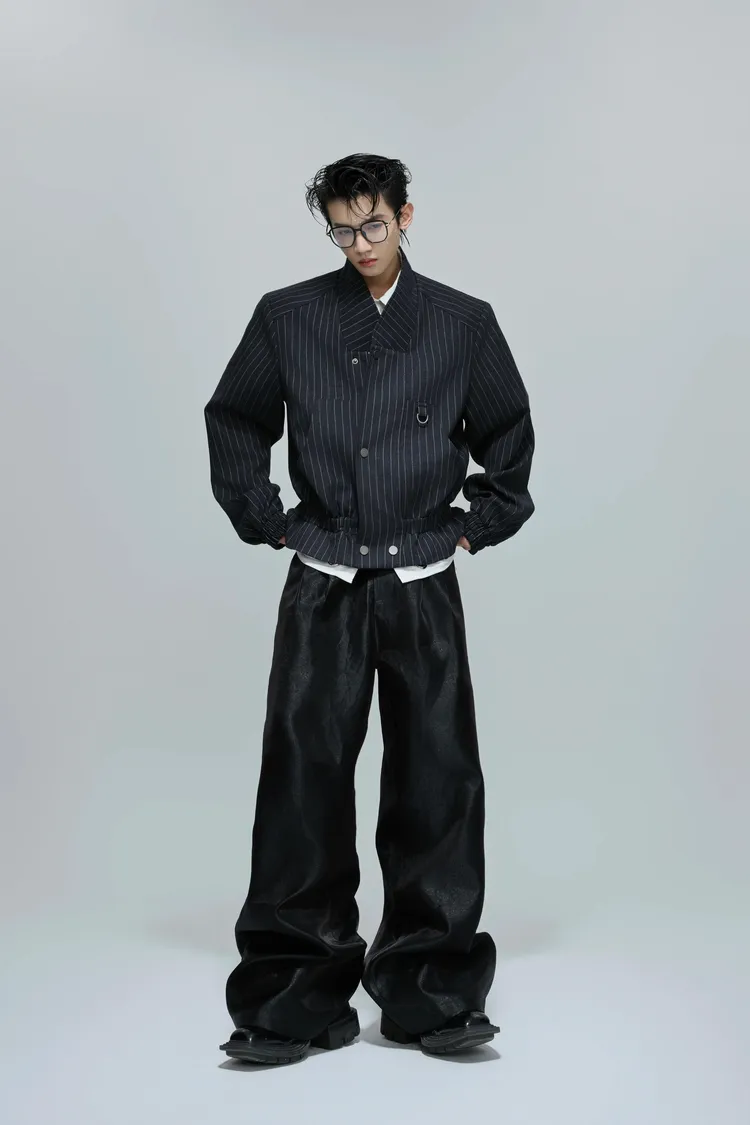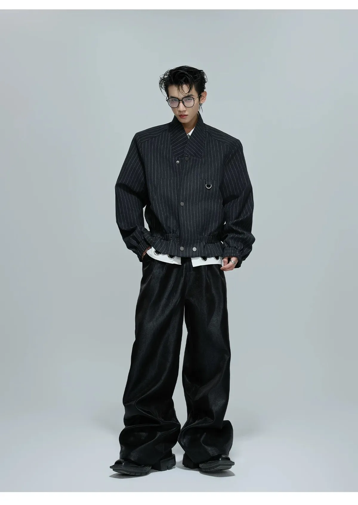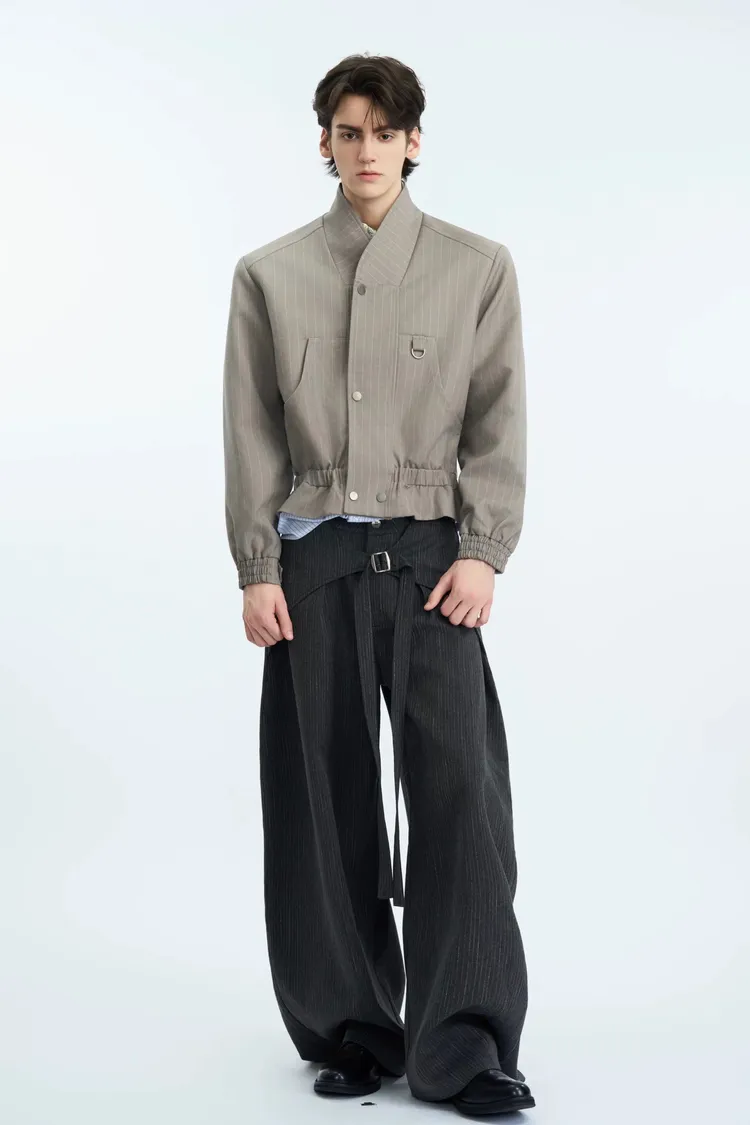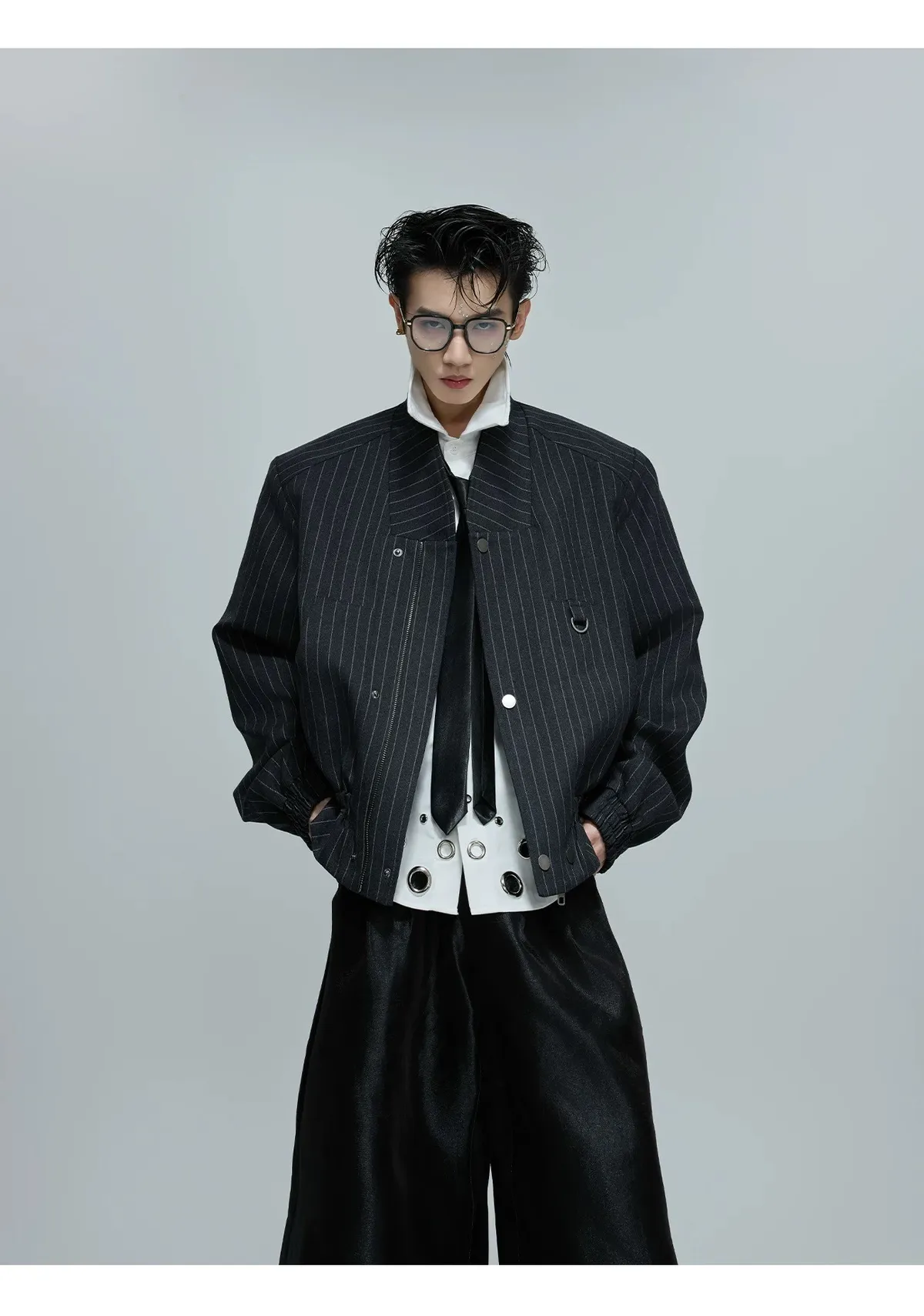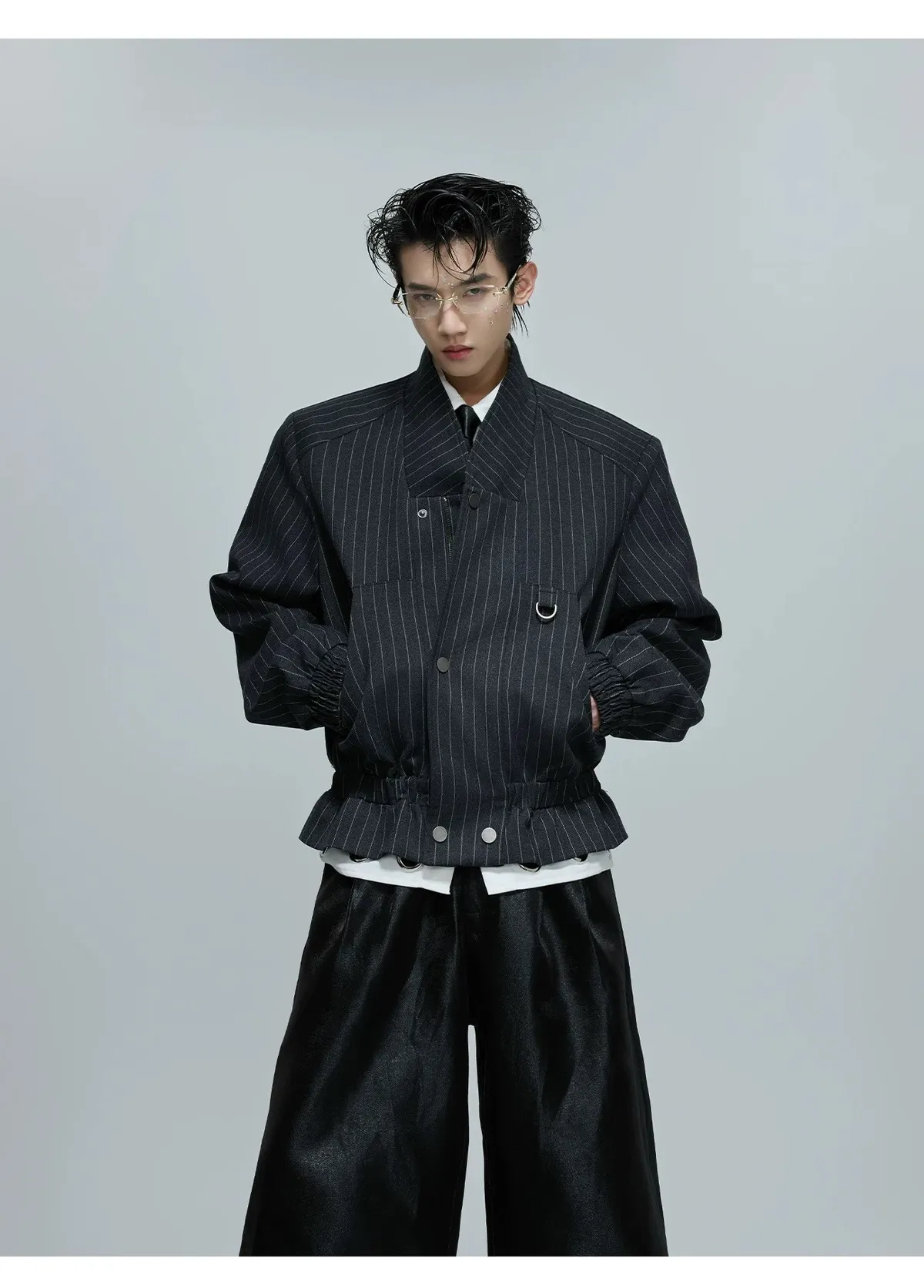 ARGUE 立領條紋 短寬廓形 外套(深藍/灰)