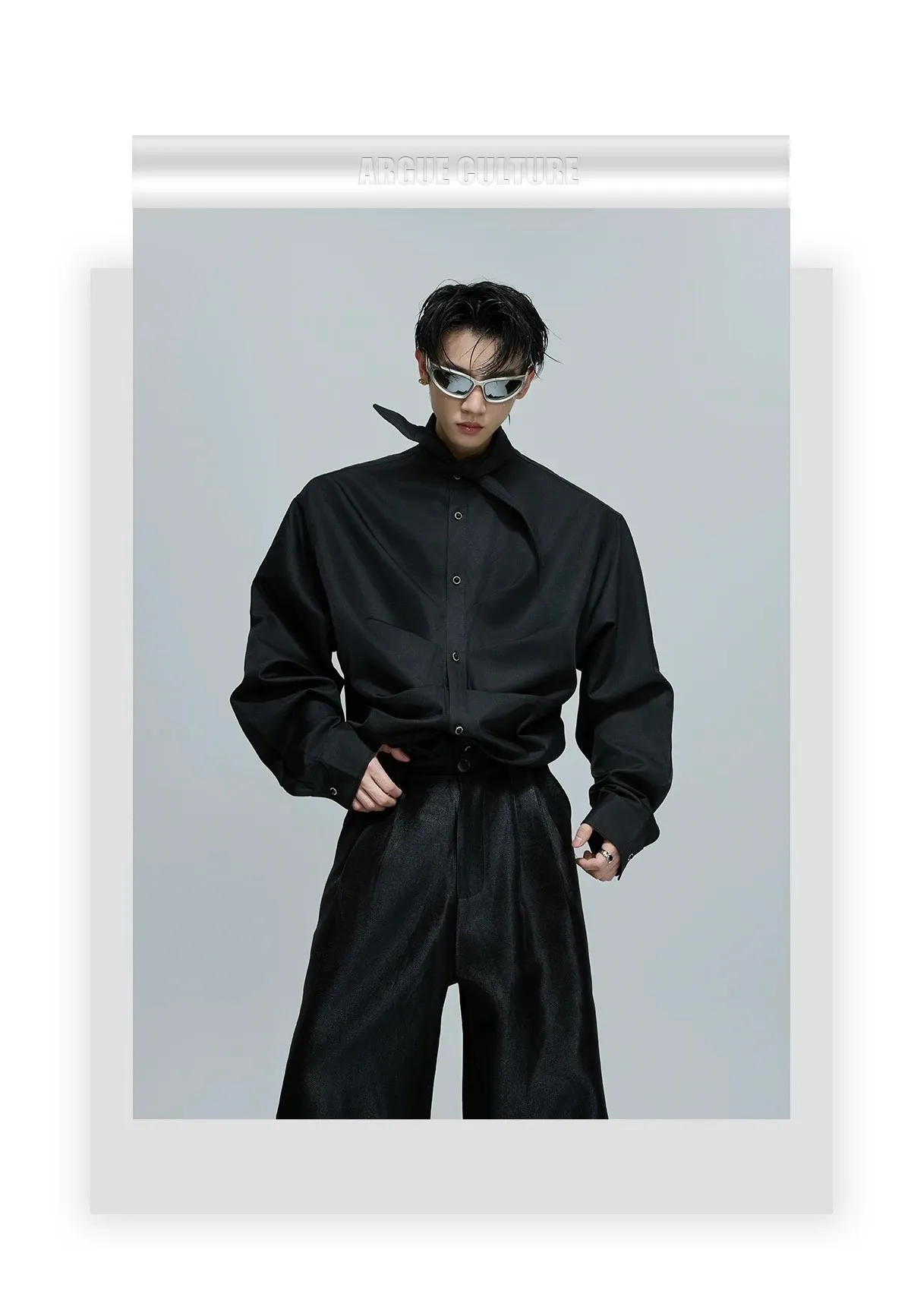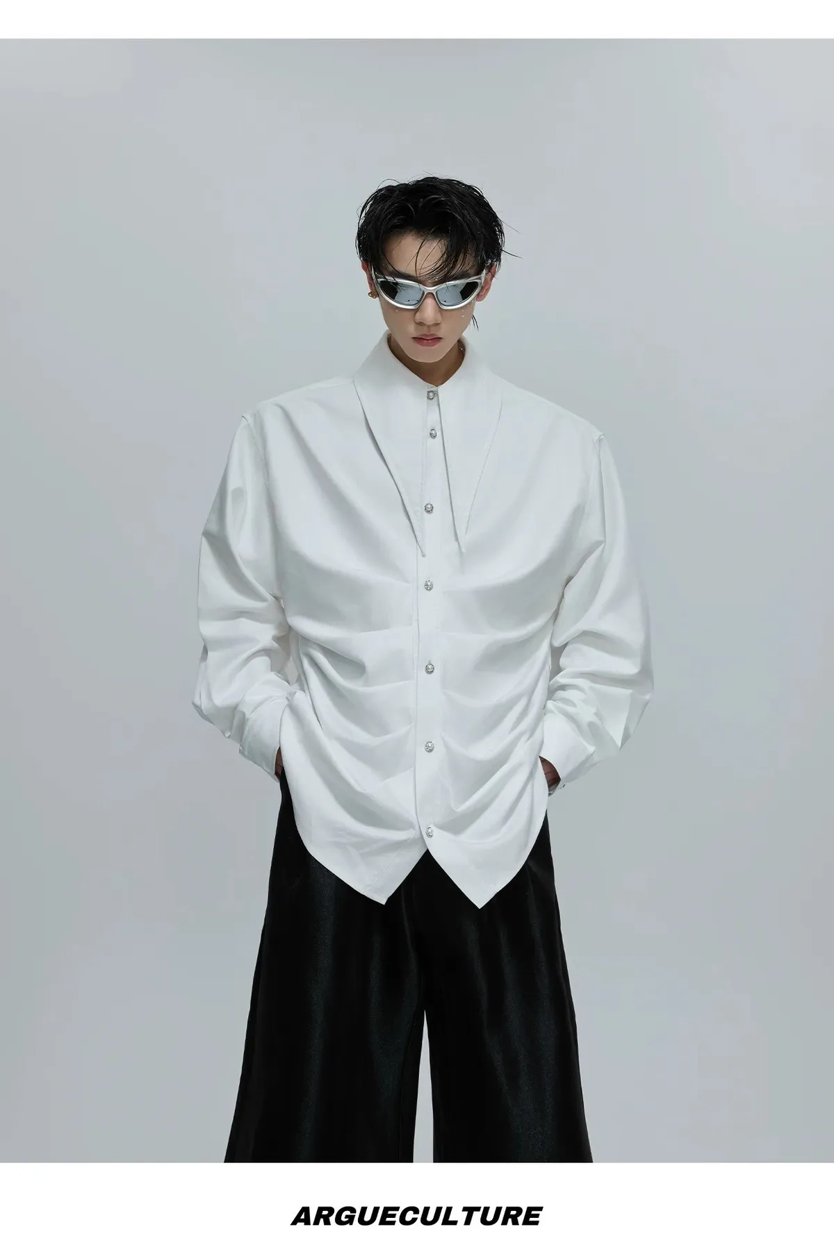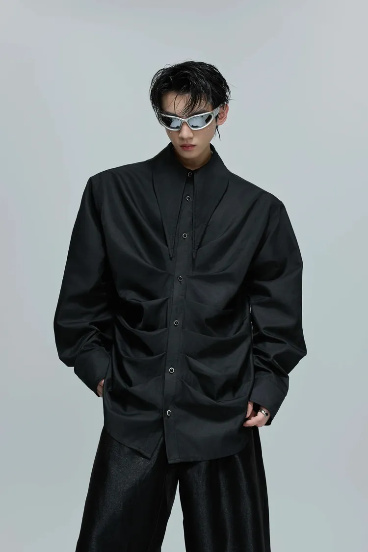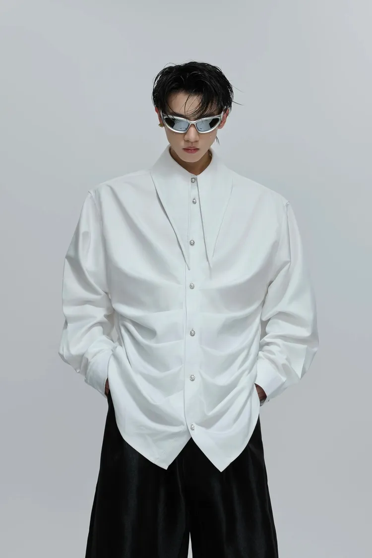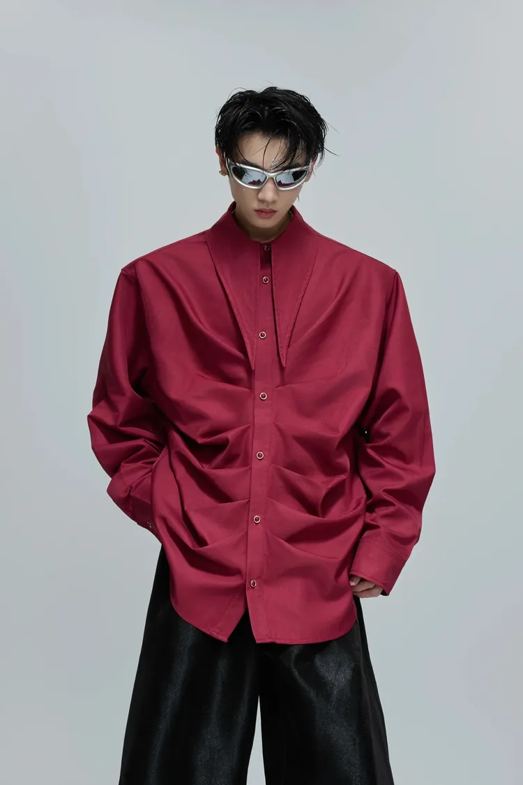 ARGUE 大尖領 法式皺褶 襯衫(黑/白/紅)