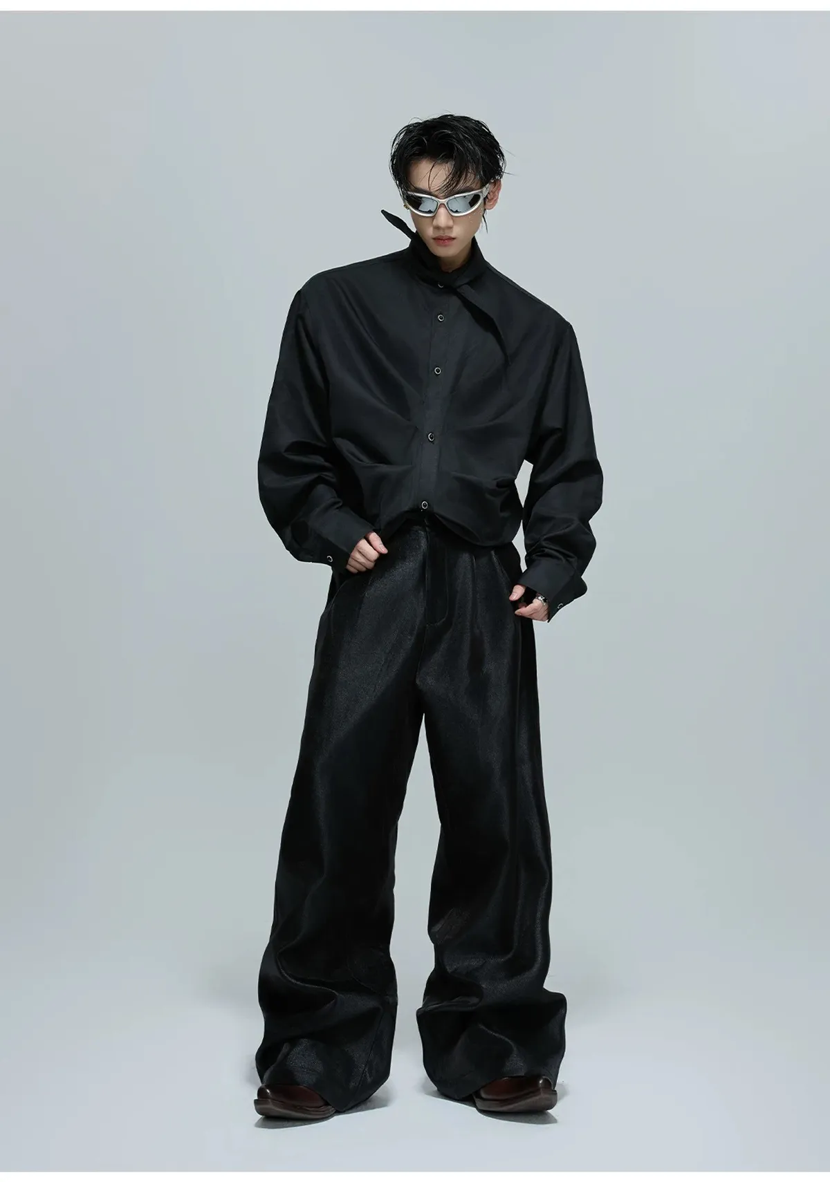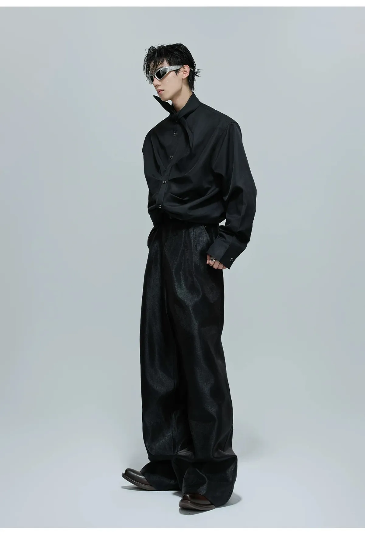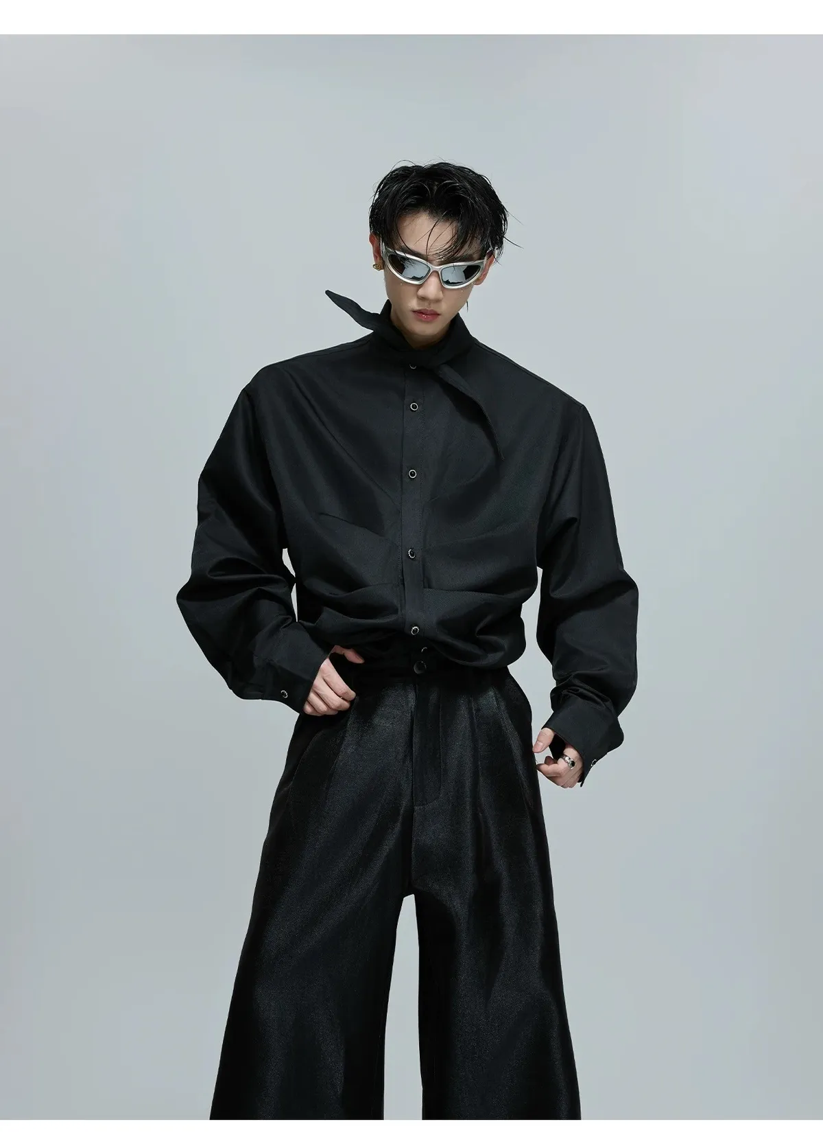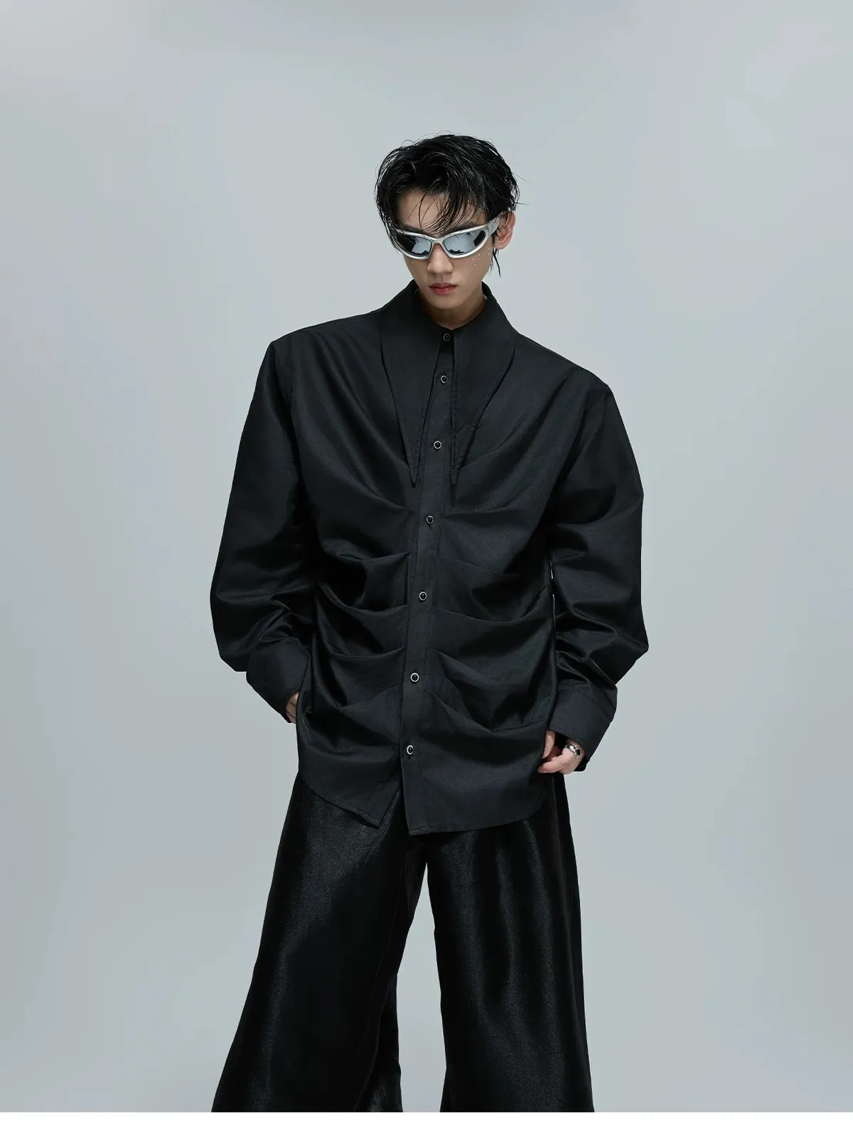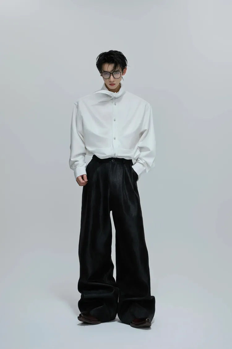 ARGUE 大尖領 法式皺褶 襯衫(黑/白/紅)