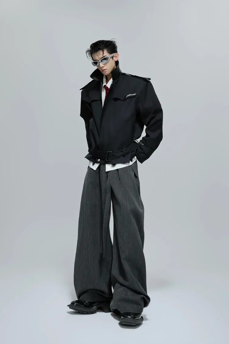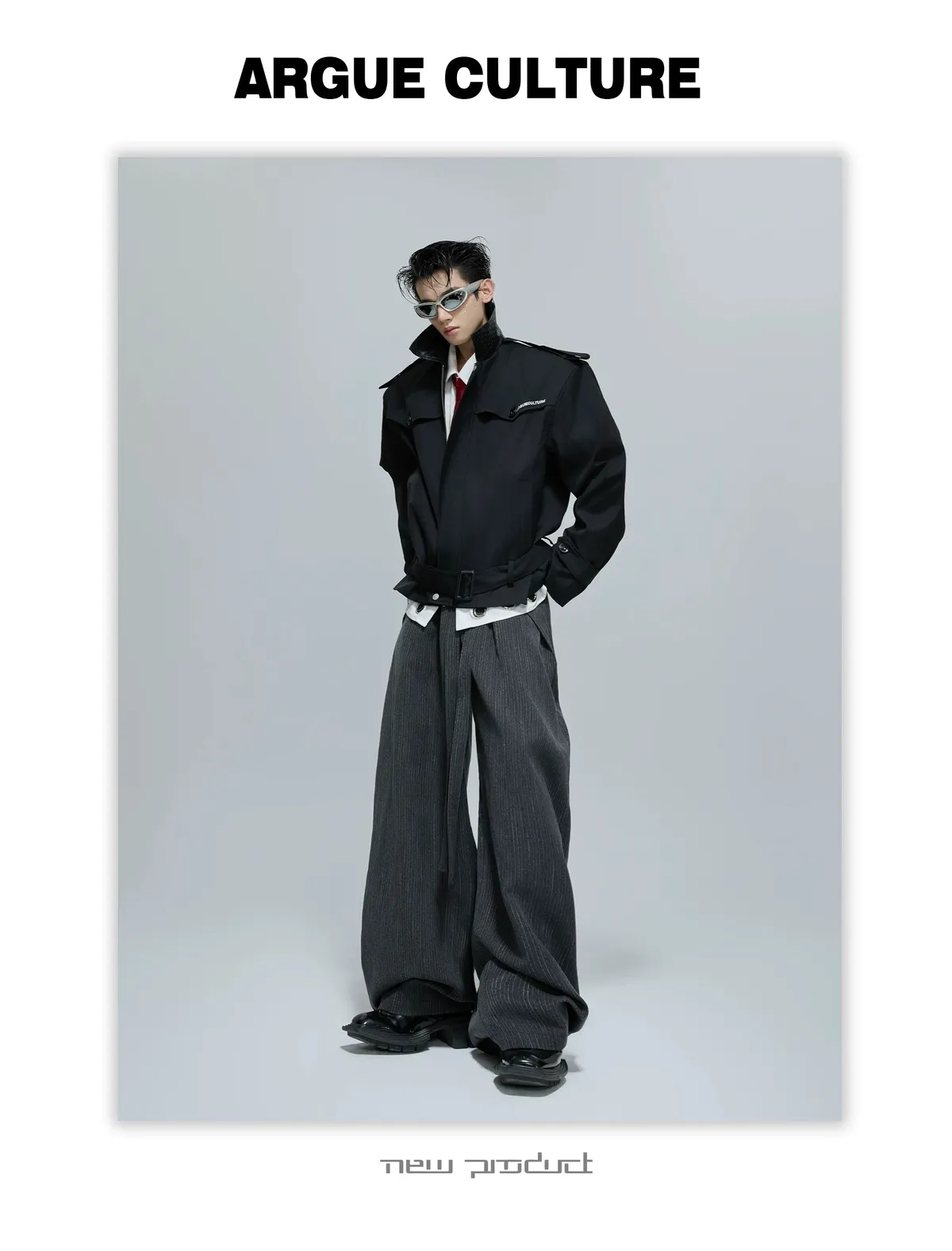 ARGUE 立領條紋 短寬廓形 外套(深藍/灰)