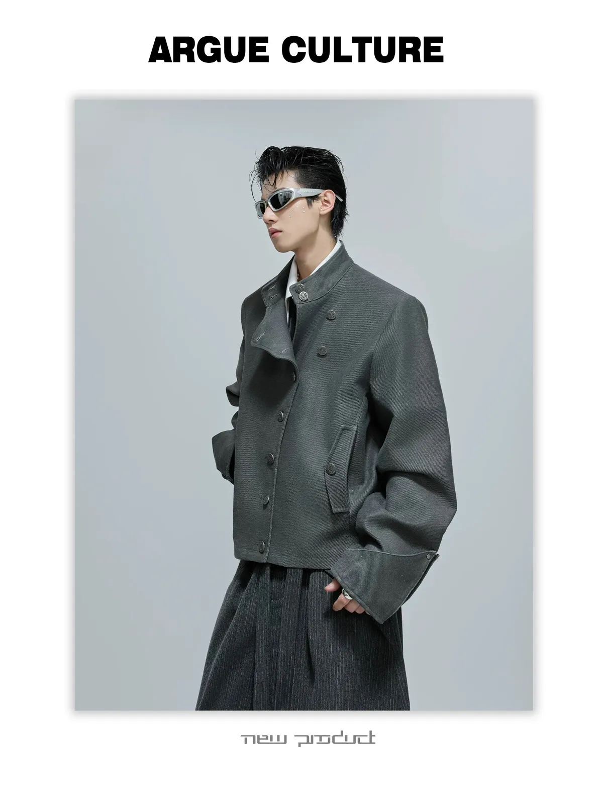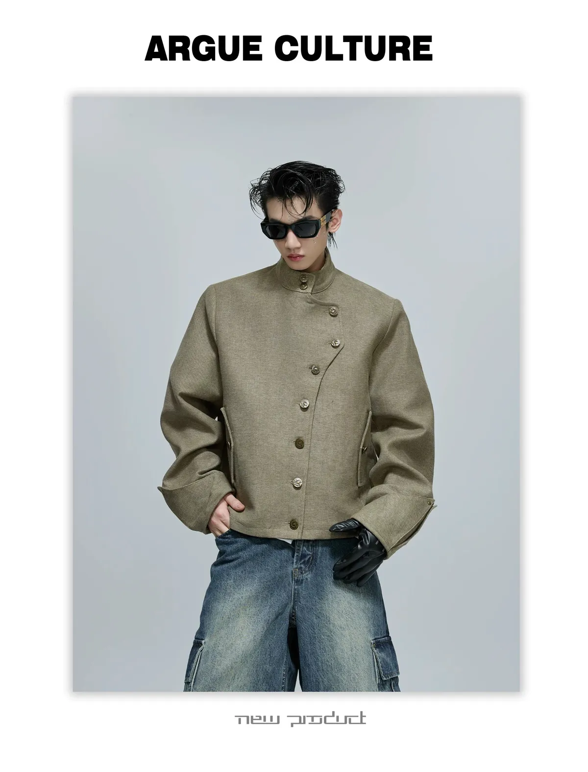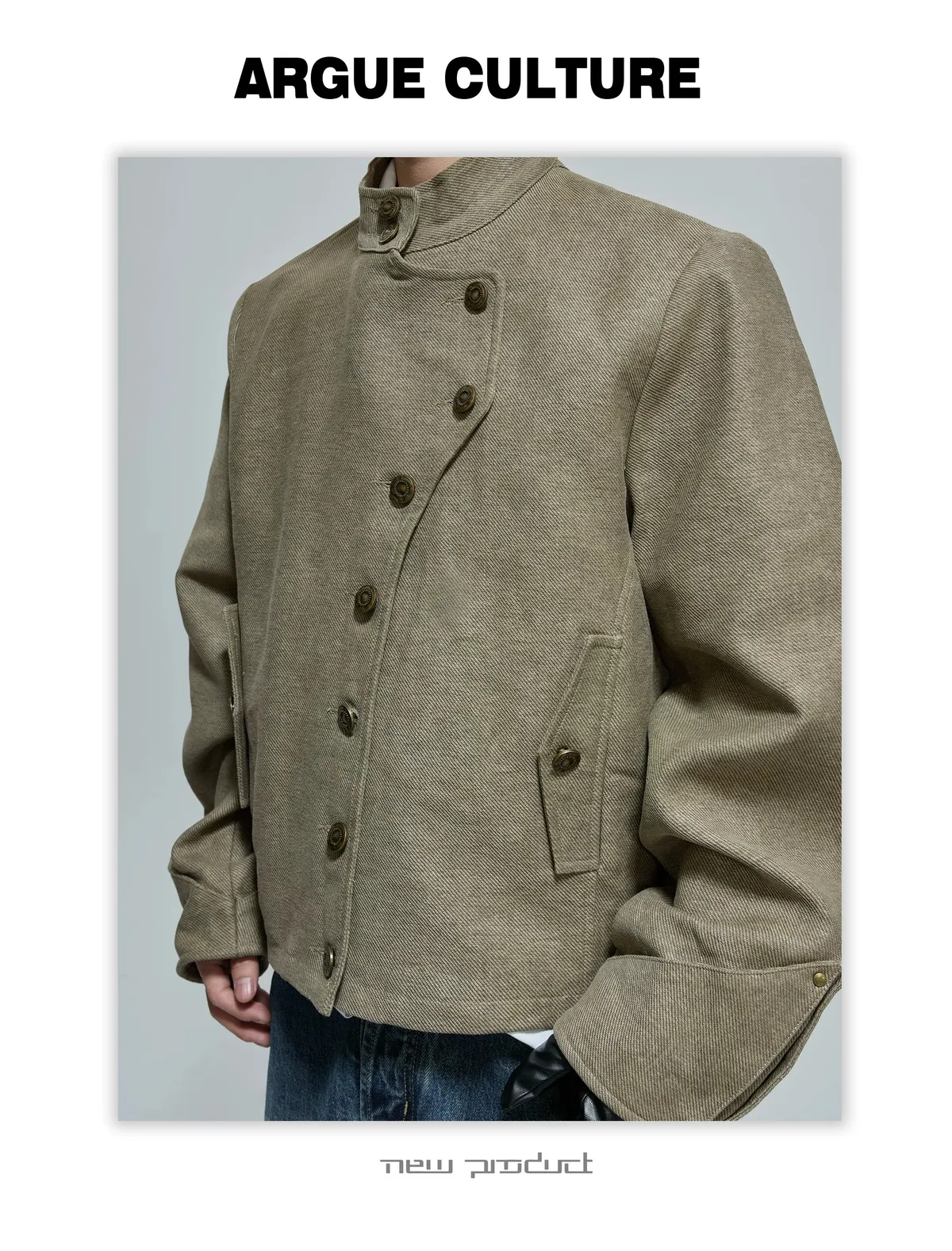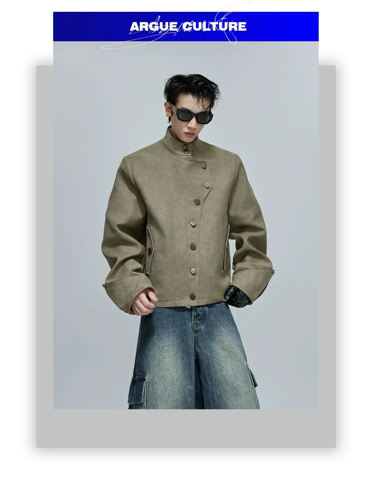 ARGUE 不規則裁片 立領 外套(卡其/灰)