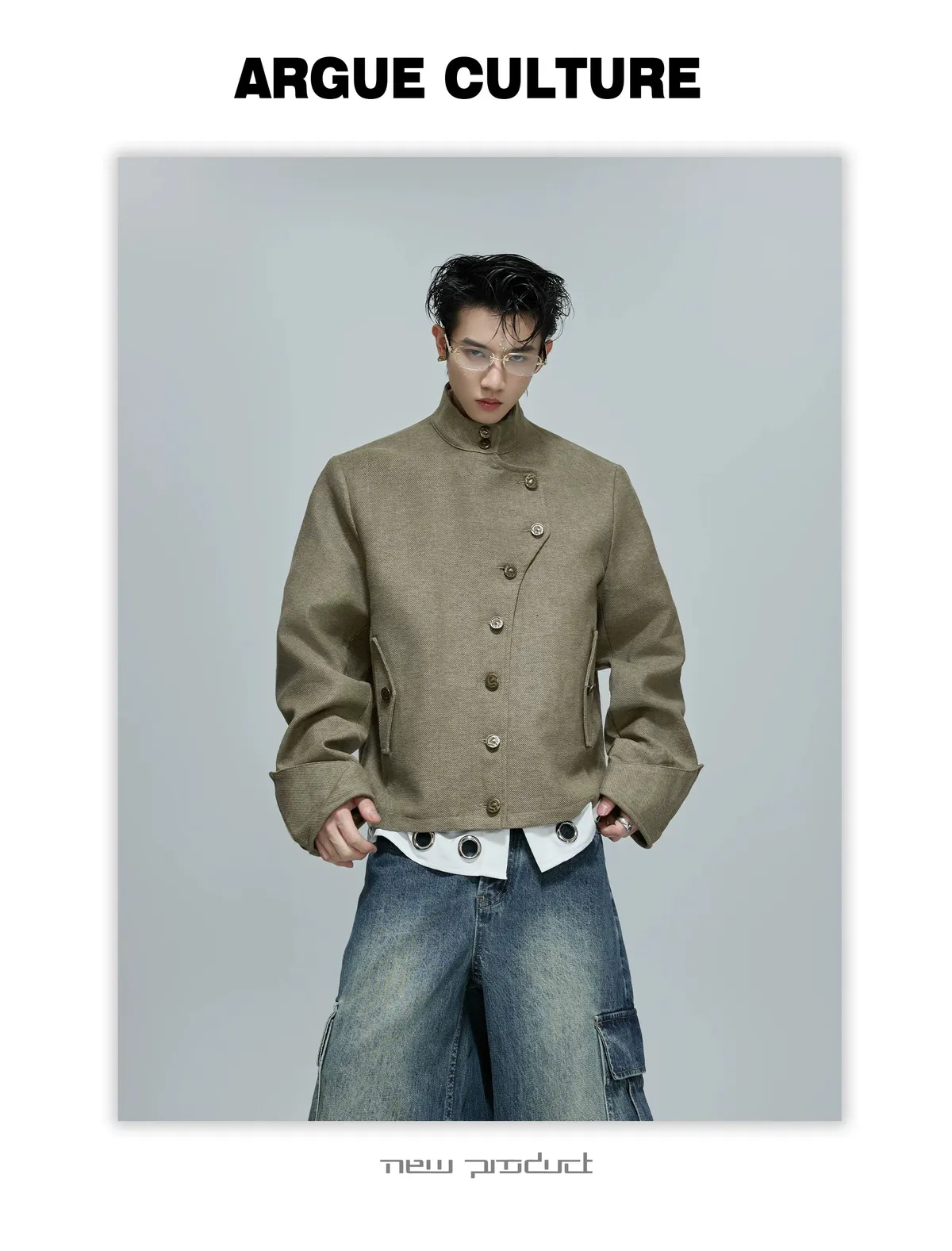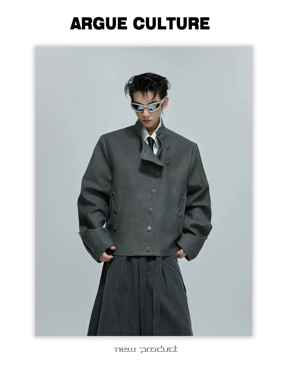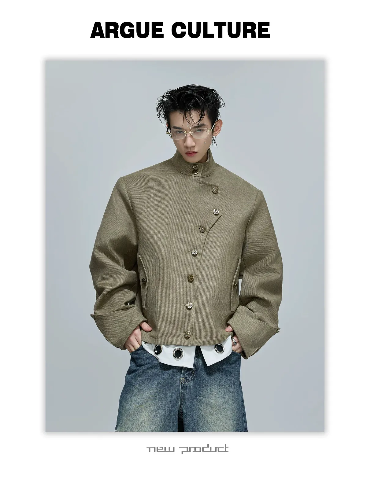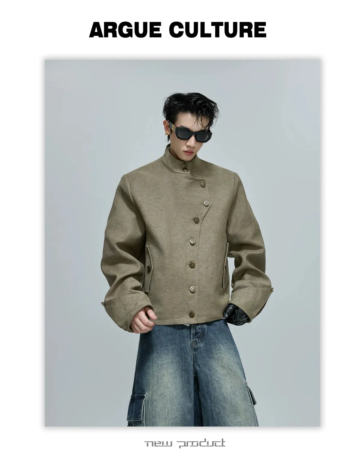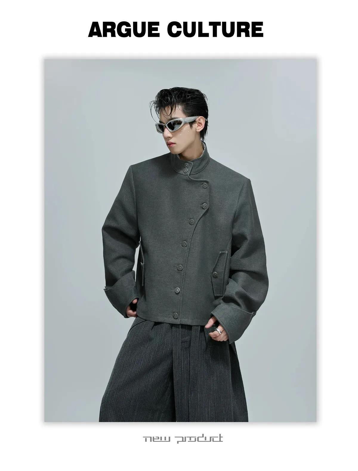 ARGUE 不規則裁片 立領 外套(卡其/灰)