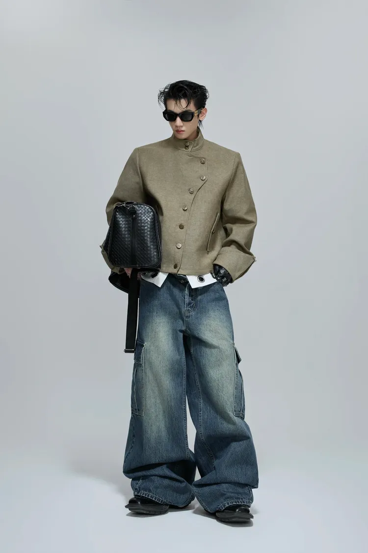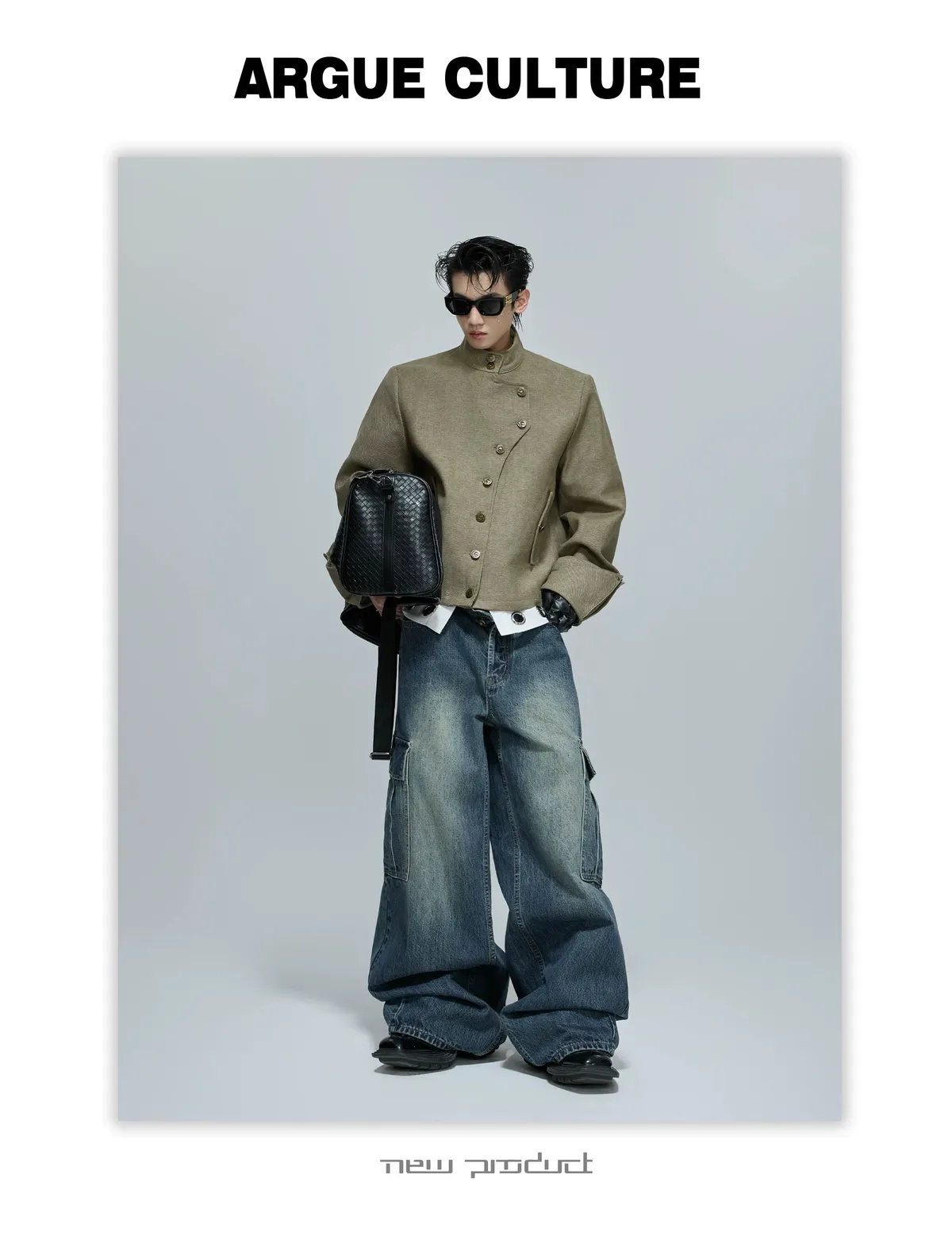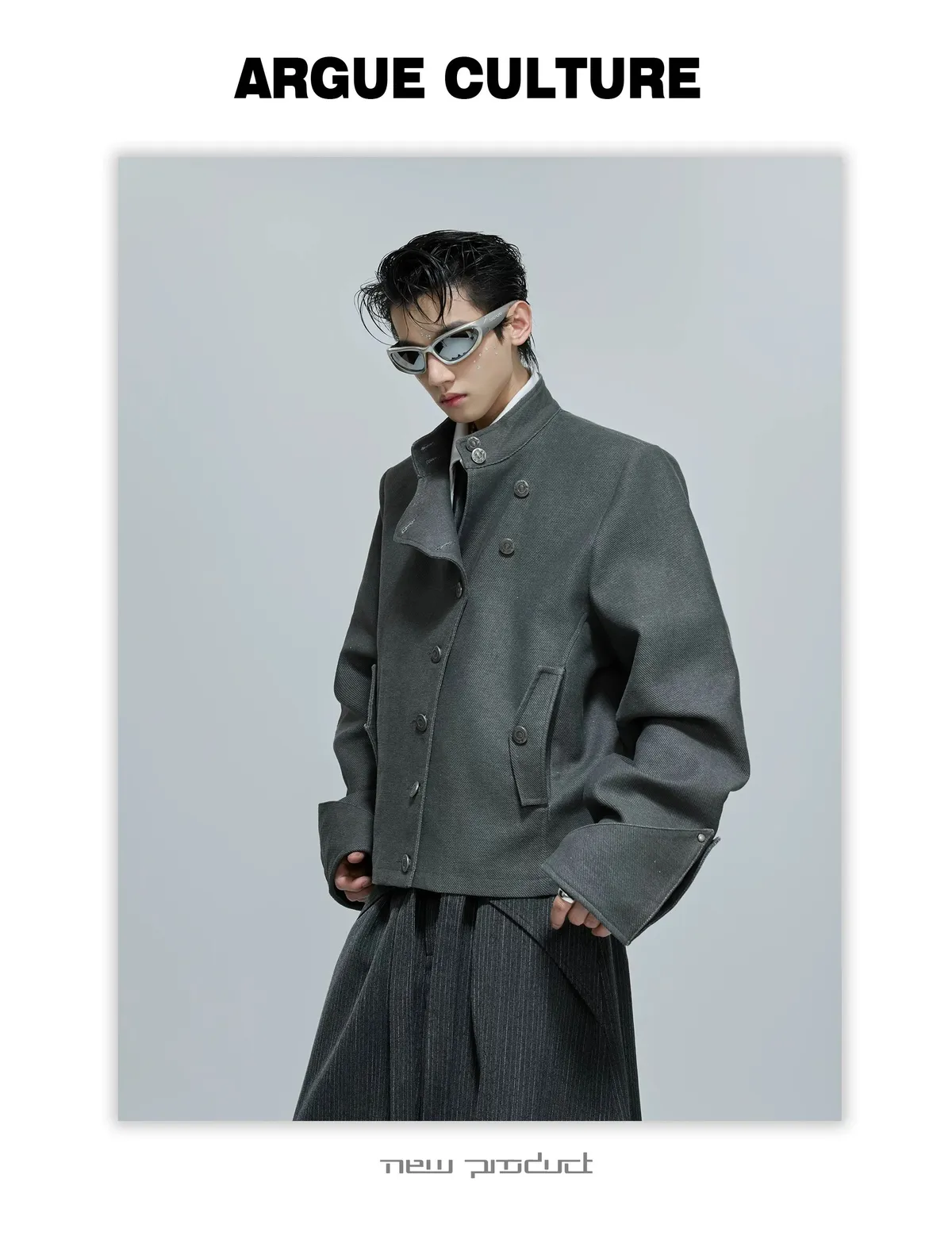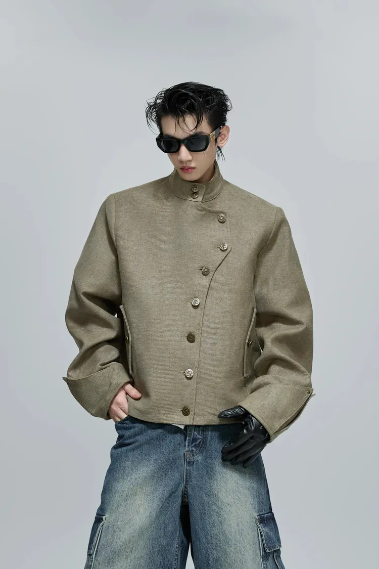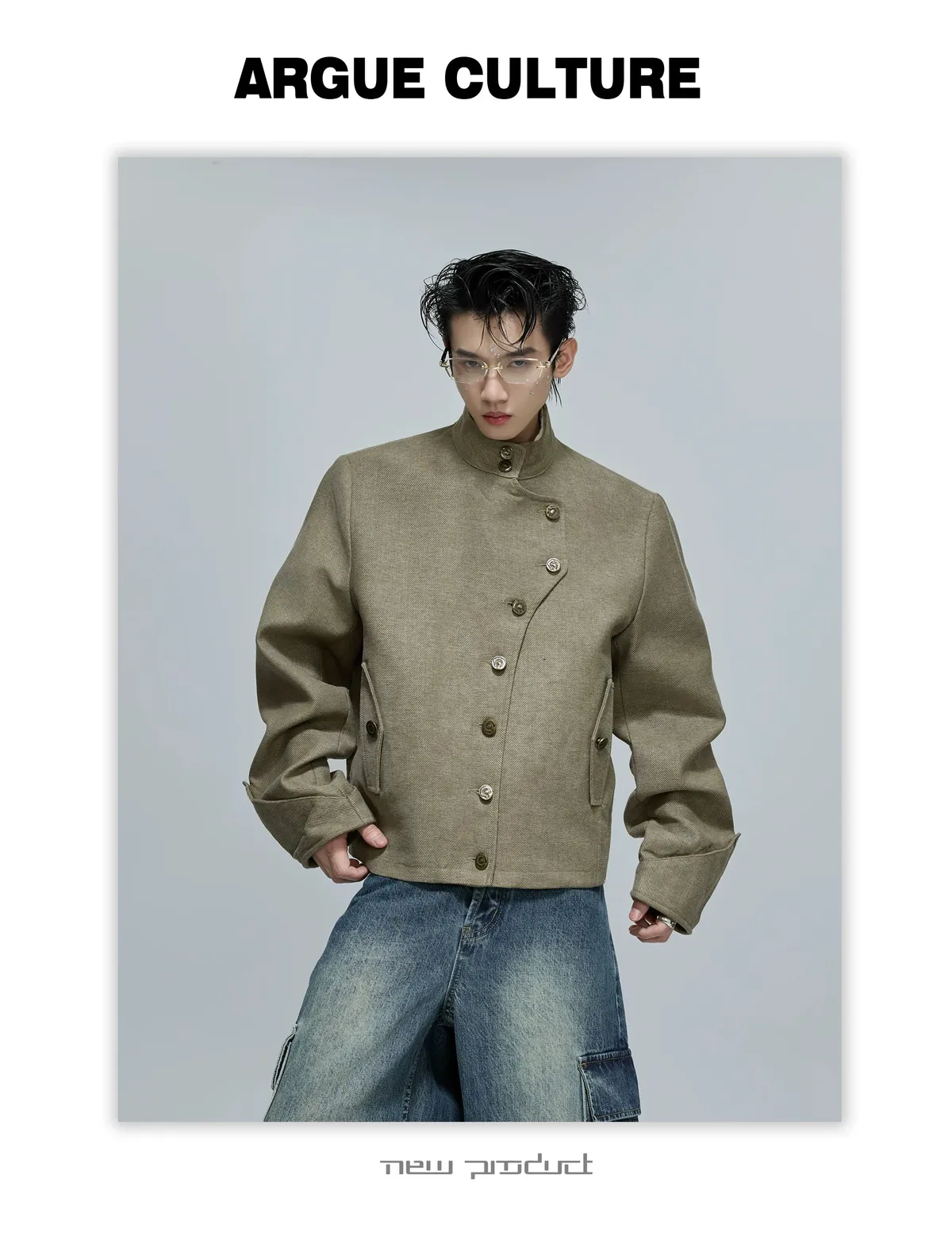 ARGUE 不規則裁片 立領 外套(卡其/灰)