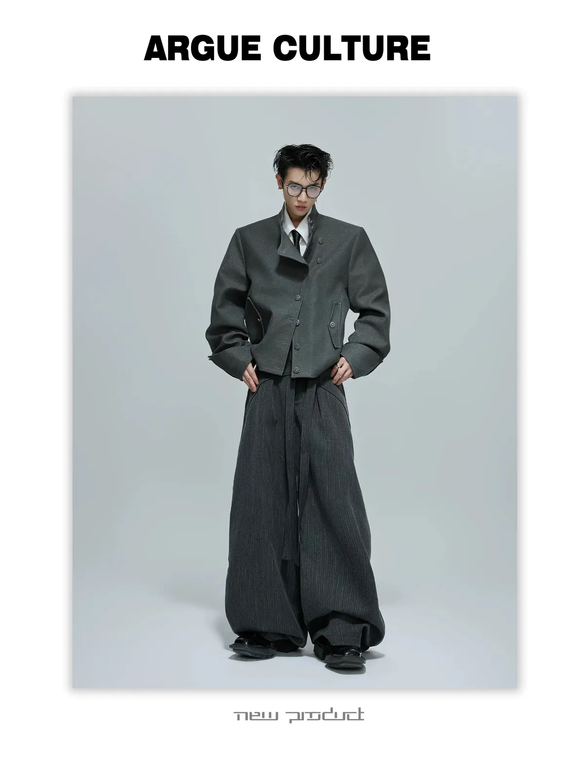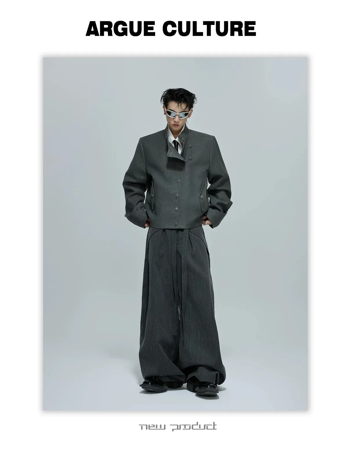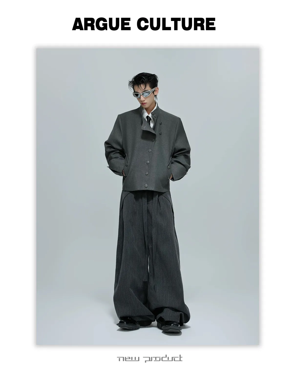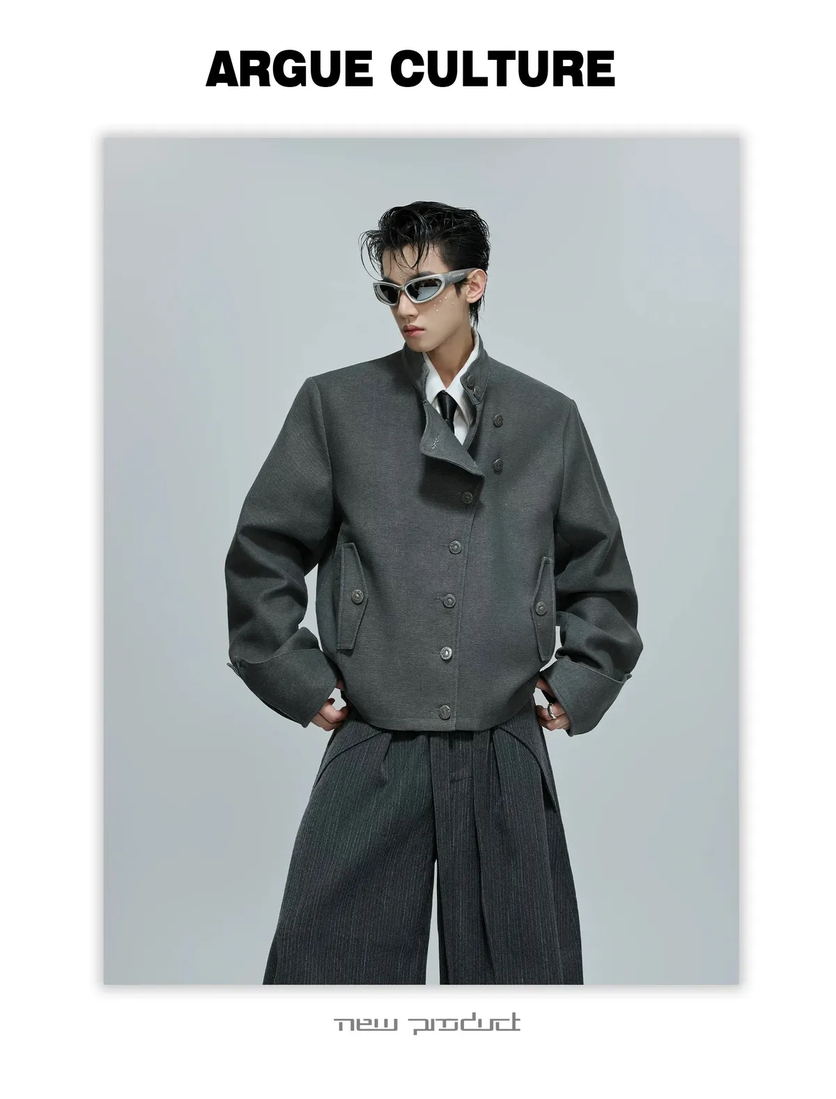 ARGUE 立領條紋 短寬廓形 外套(深藍/灰)