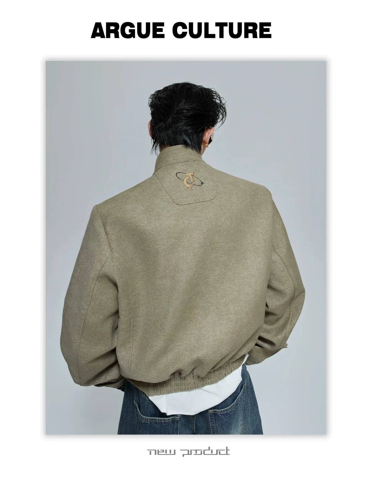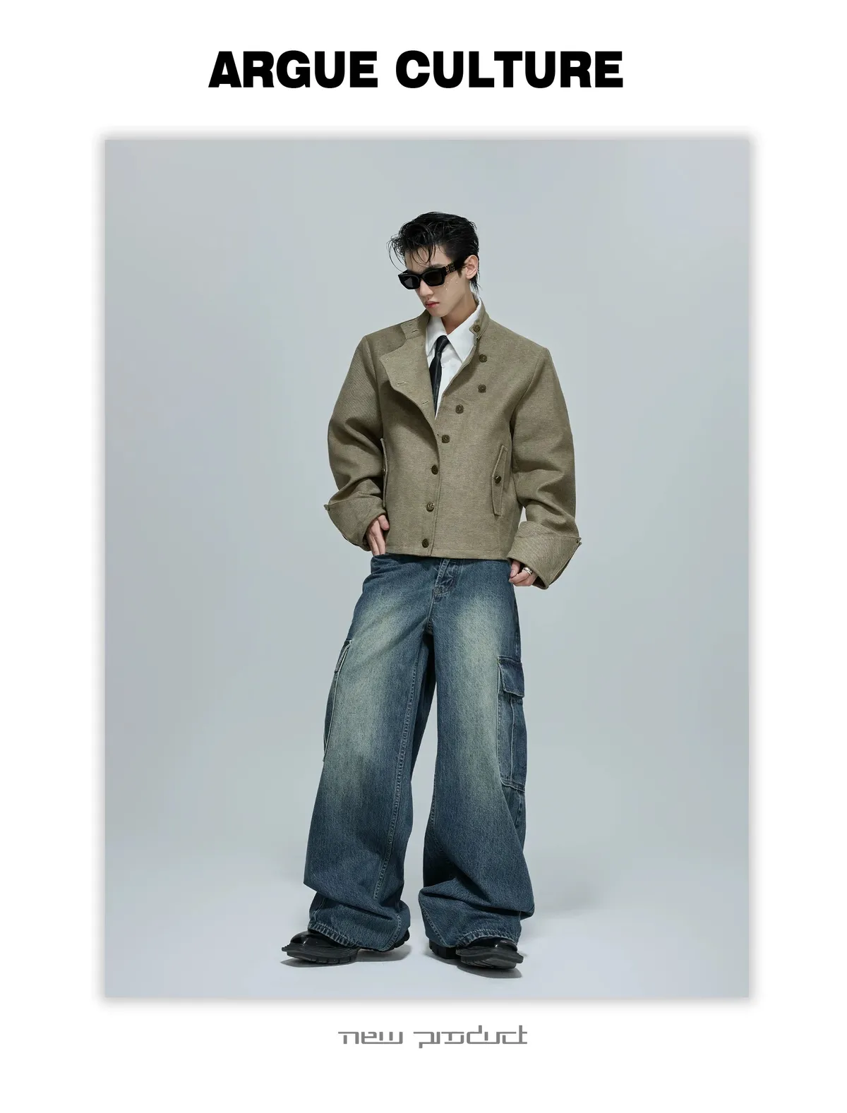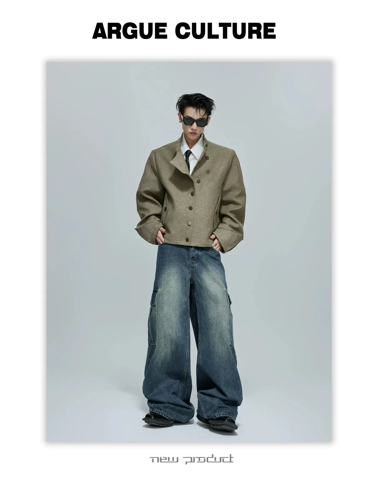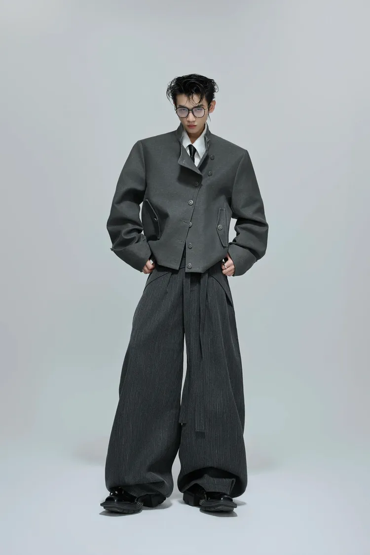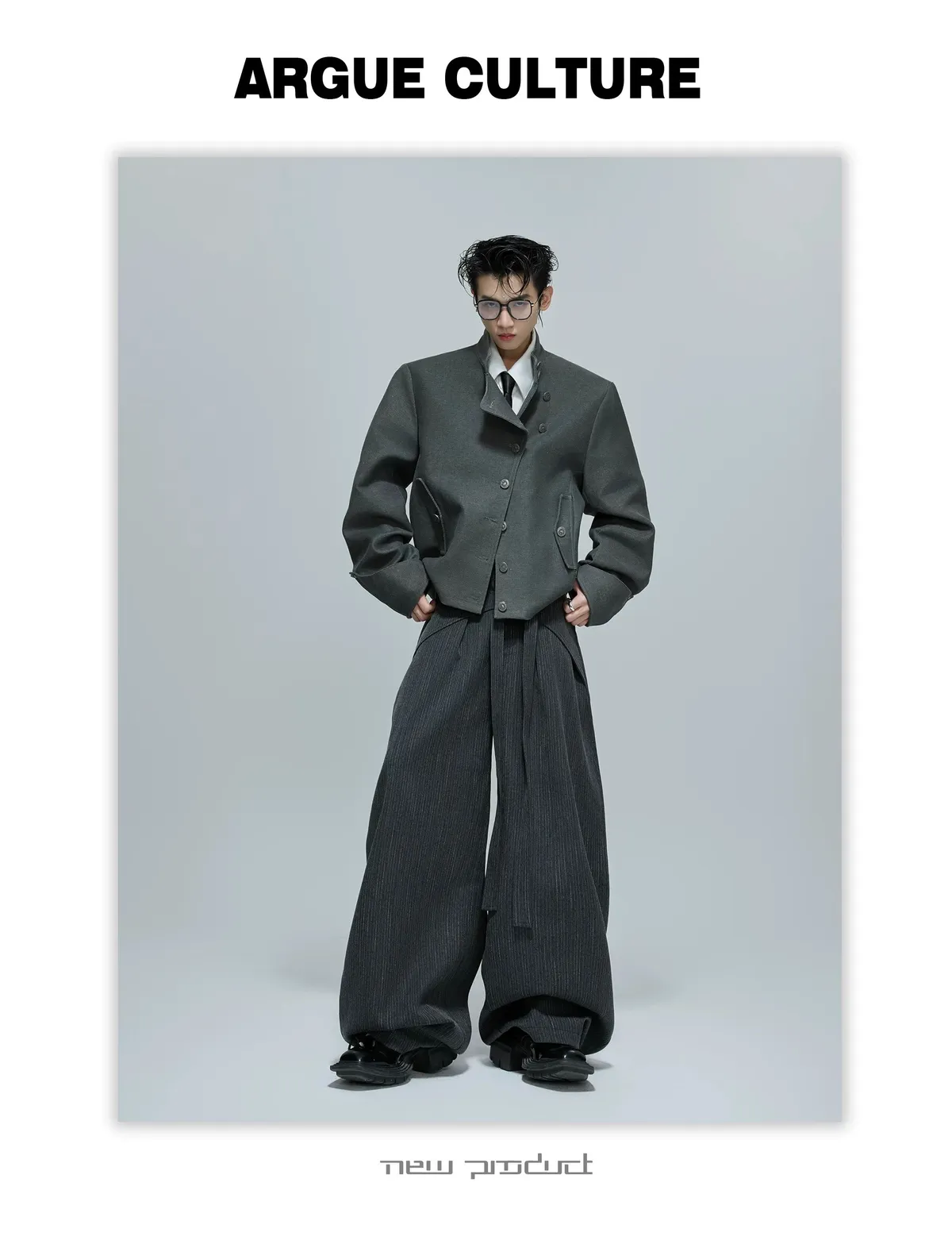 ARGUE 立領條紋 短寬廓形 外套(深藍/灰)