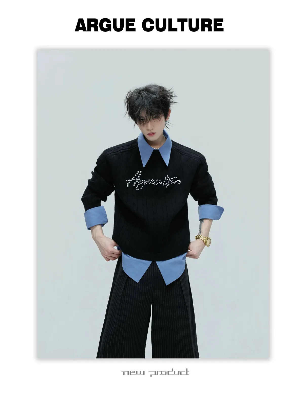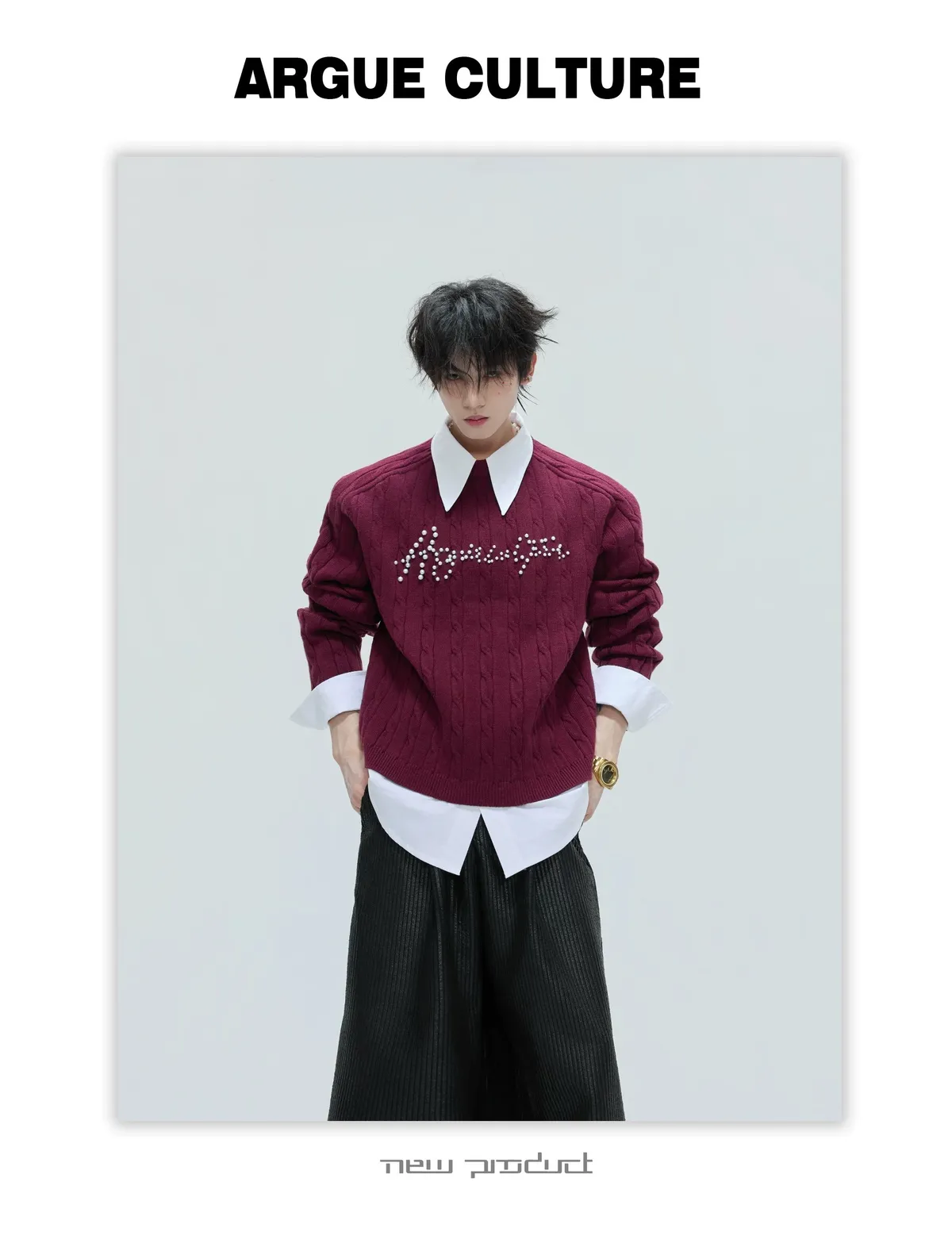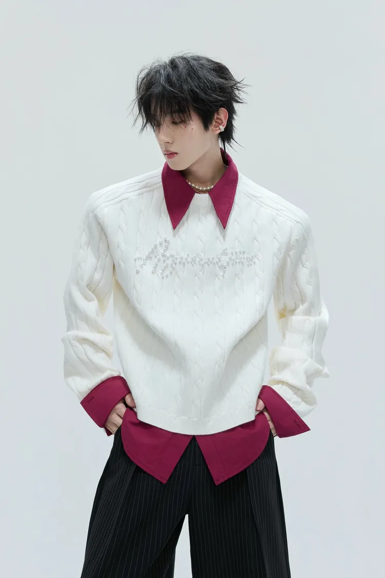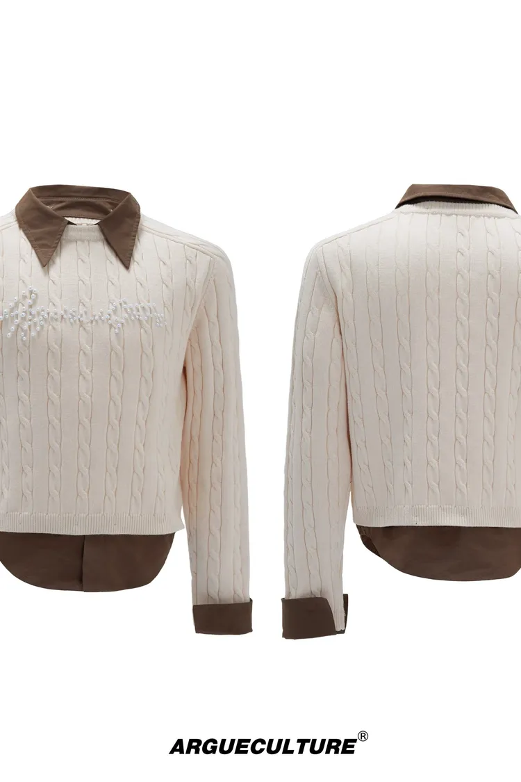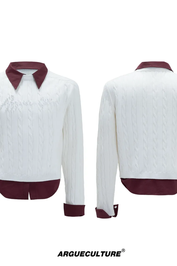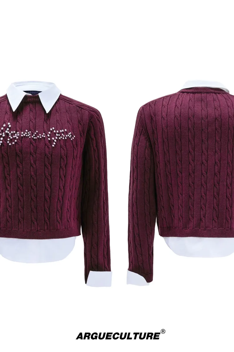ARGUE 假兩件 珍珠LOGO 毛衣(黑/白/紅/卡其)
