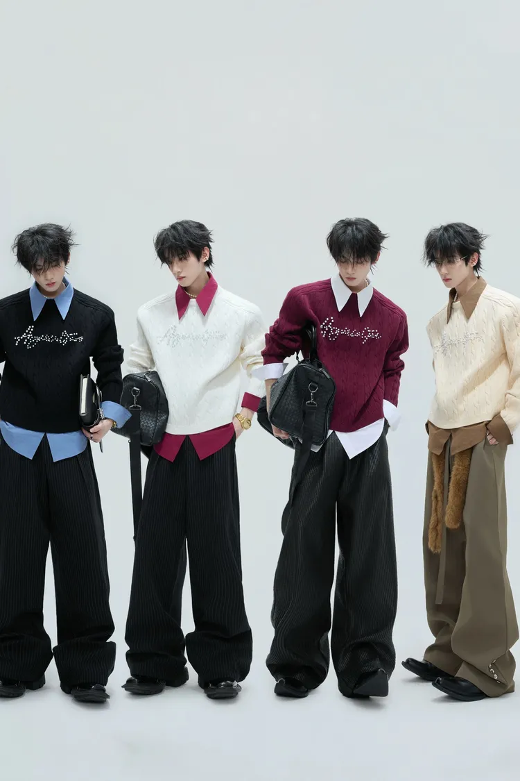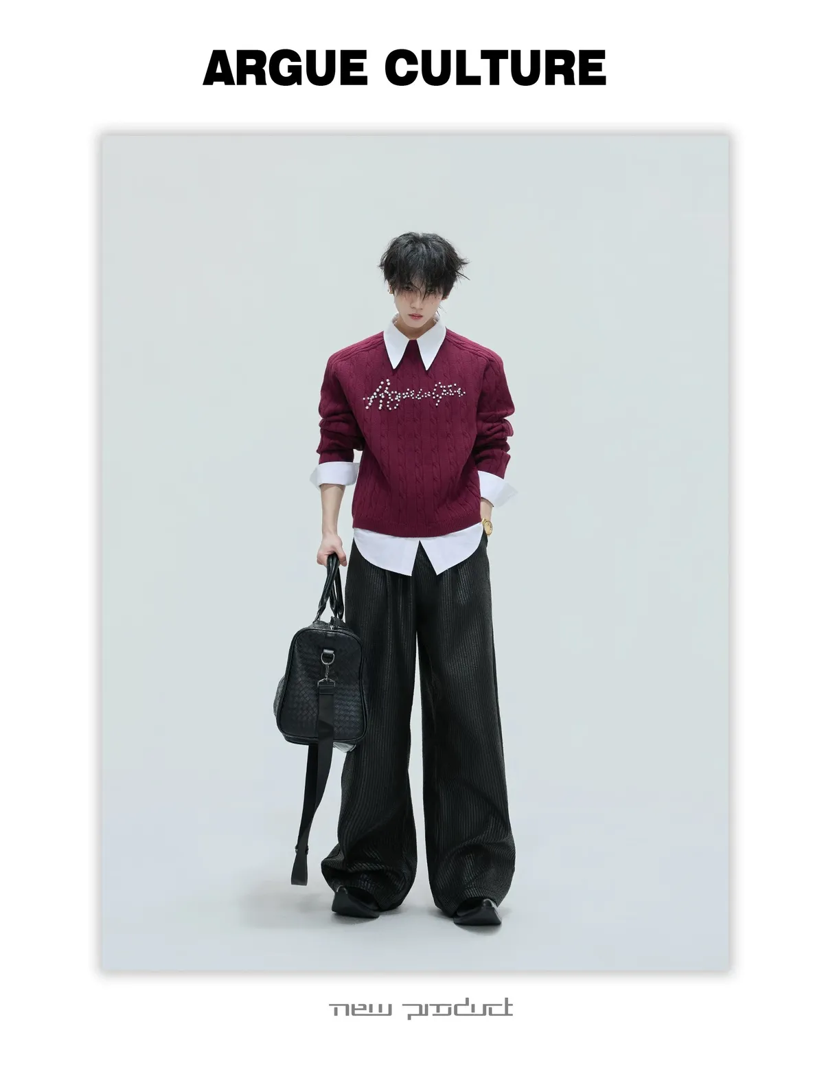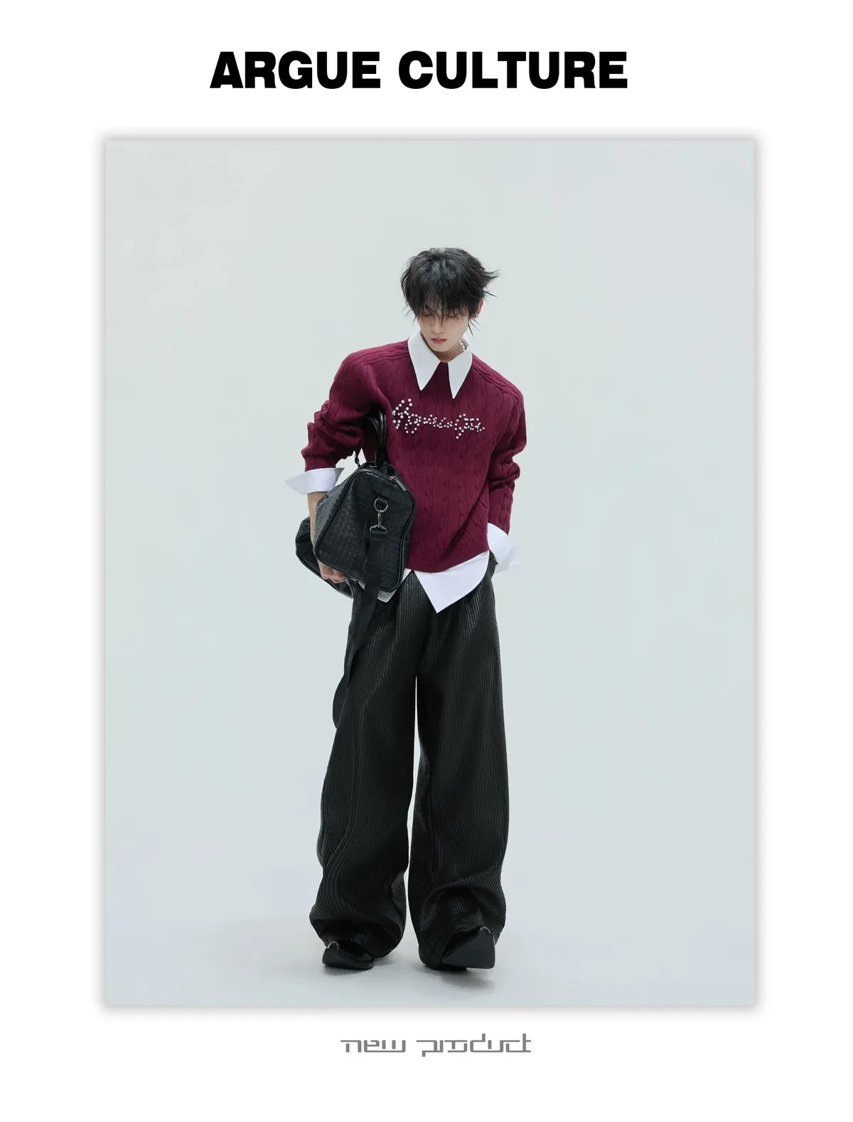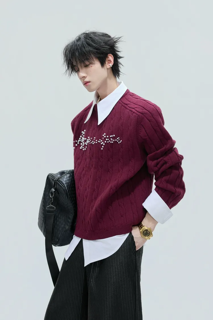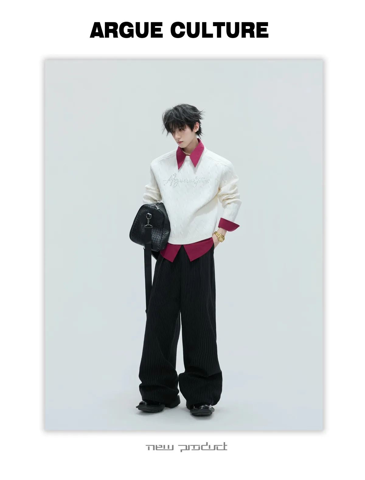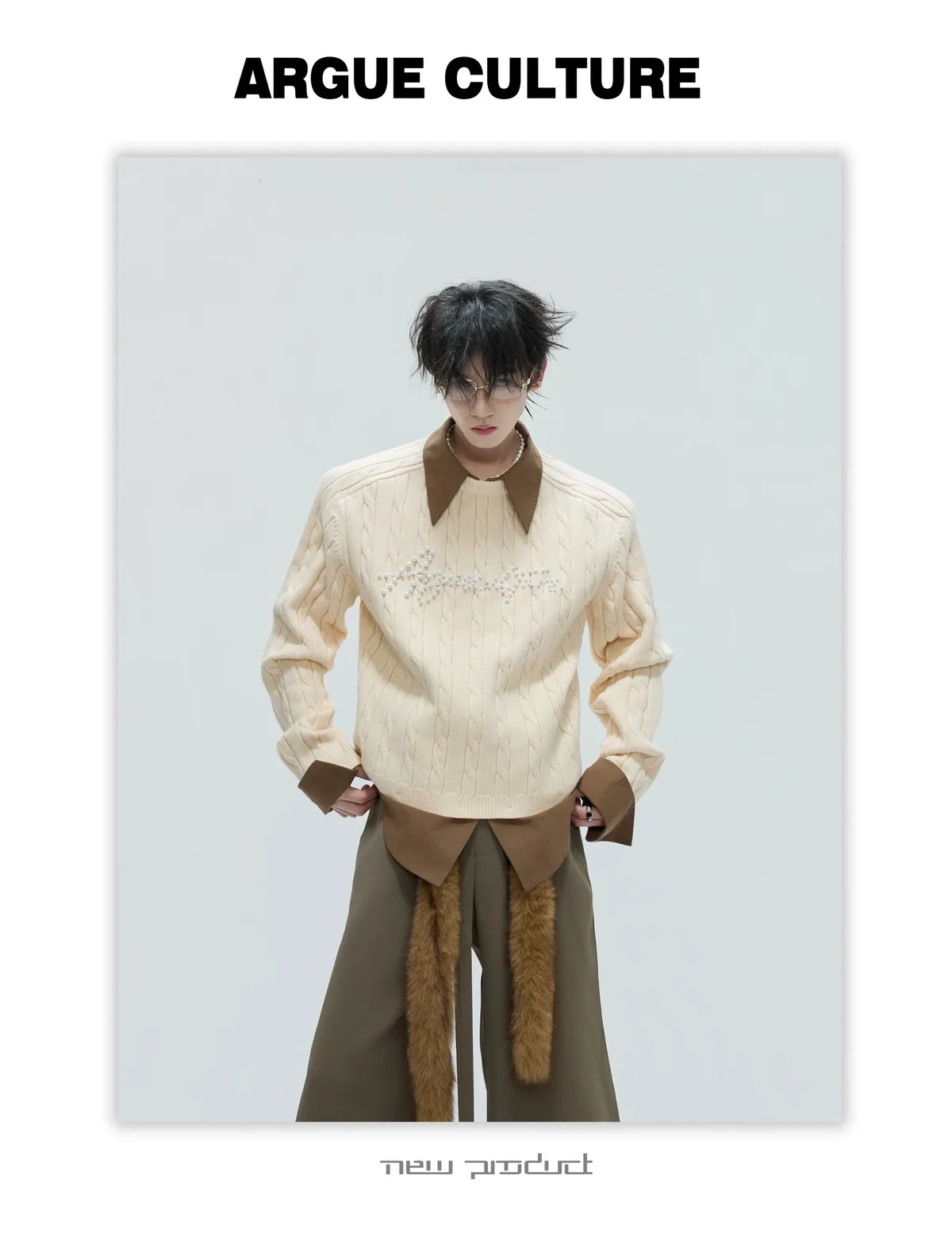 ARGUE 假兩件 珍珠LOGO 毛衣(黑/白/紅/卡其)