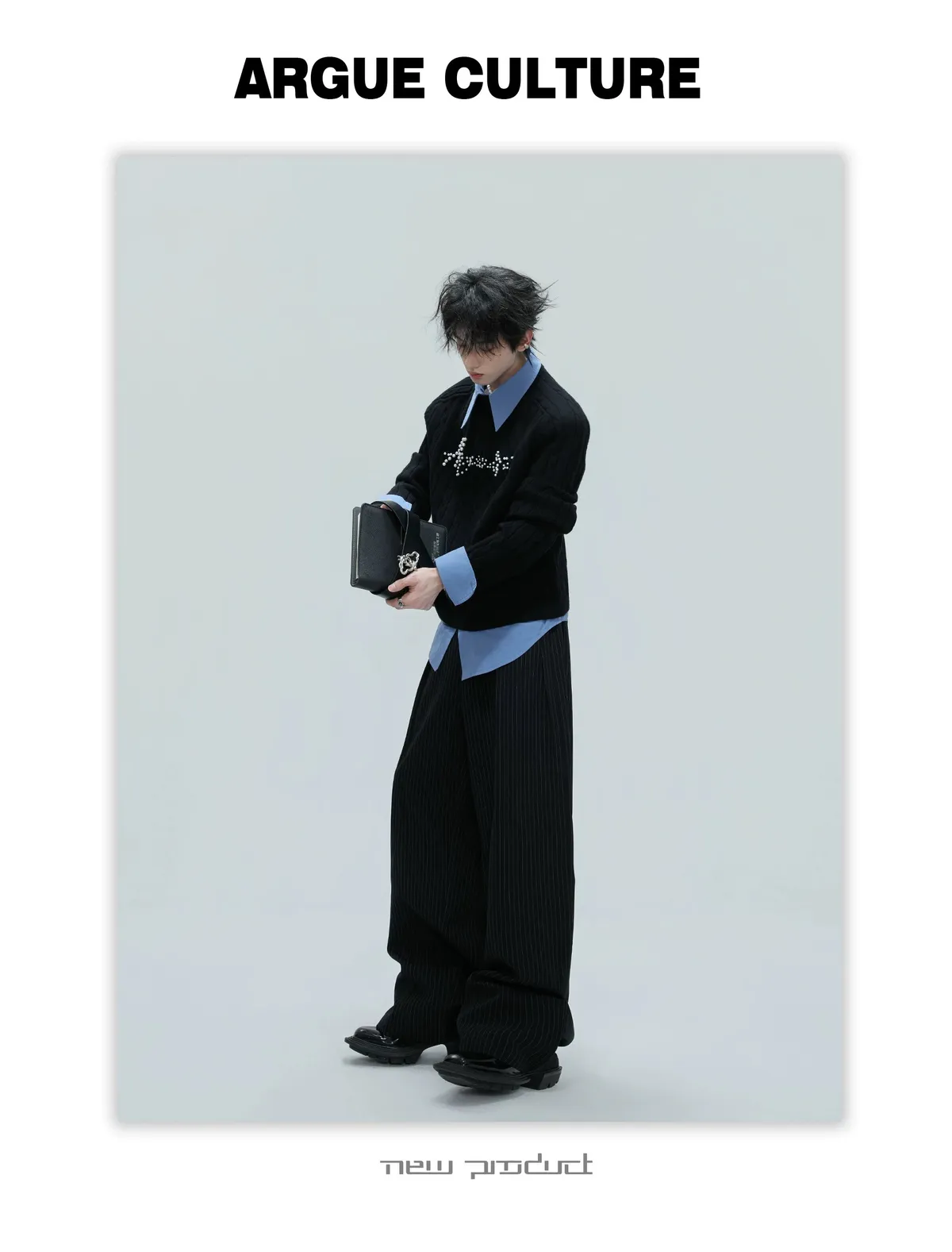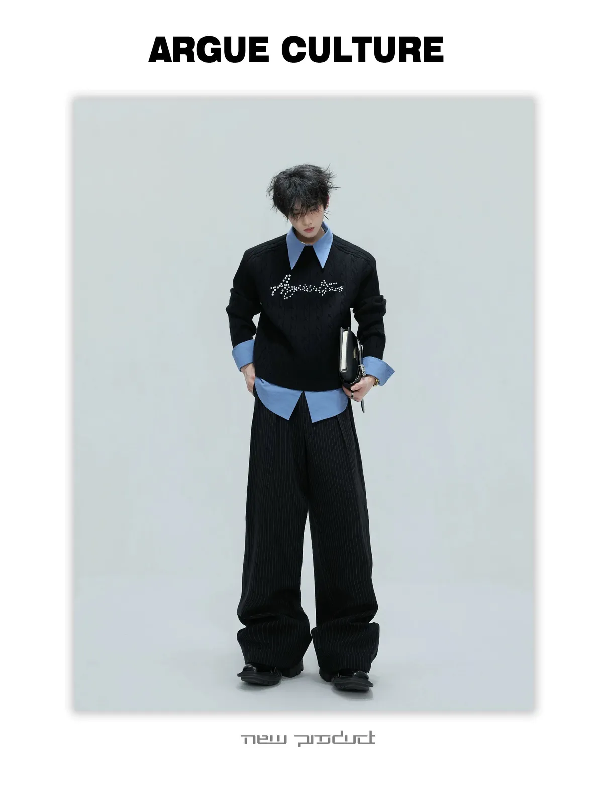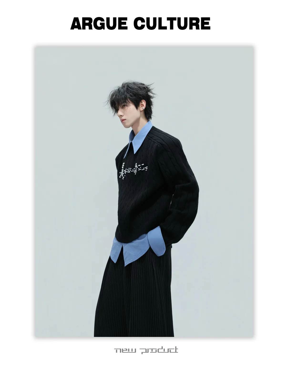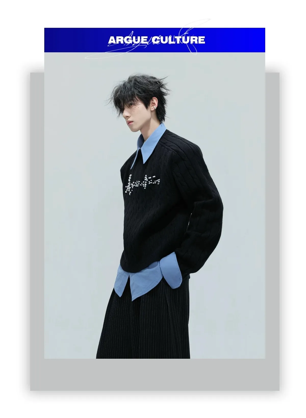 ARGUE 刀割感 立領 長袖(黑色)
