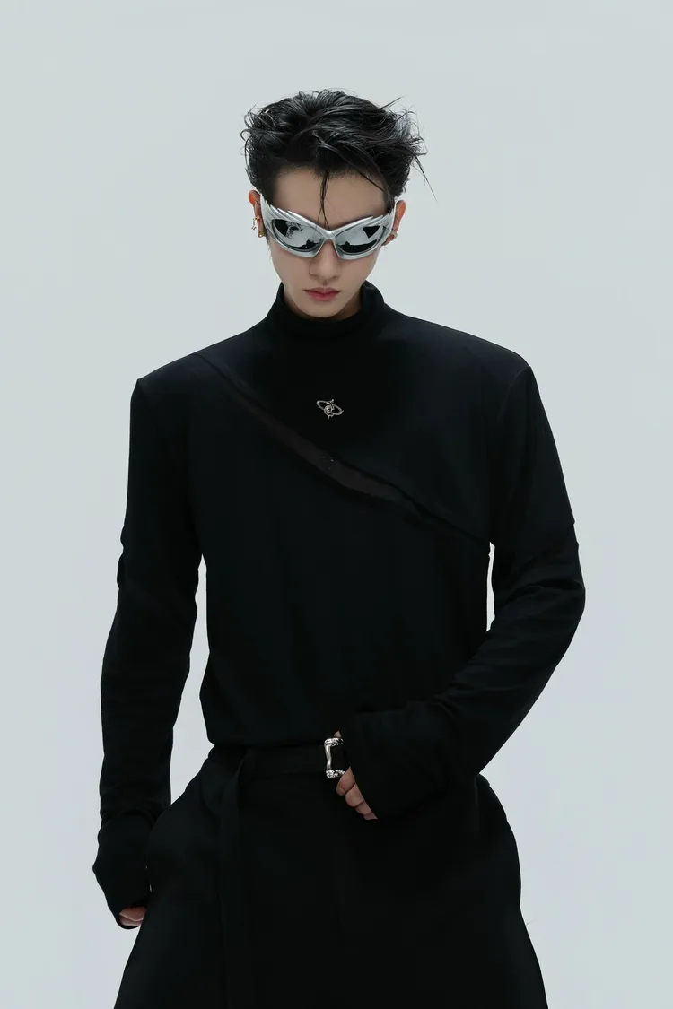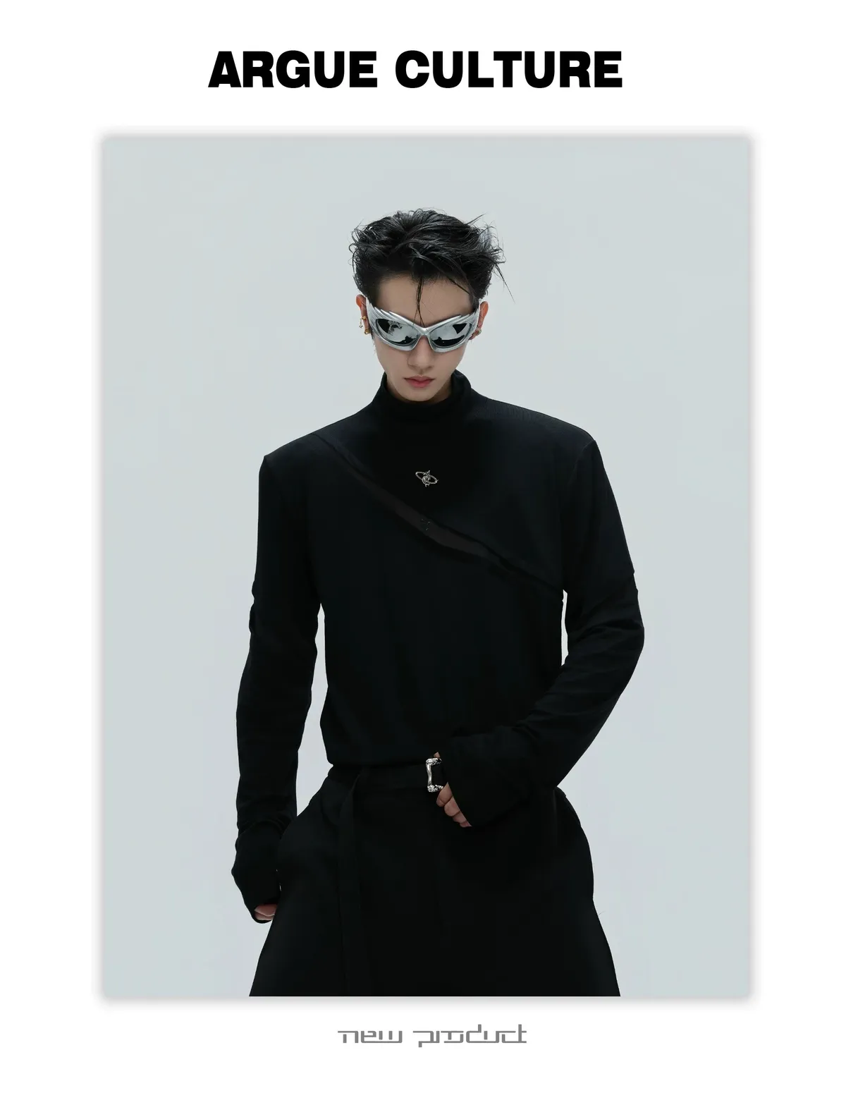ARGUE 解構分割 金屬LOGO 修身 長袖(黑/白)