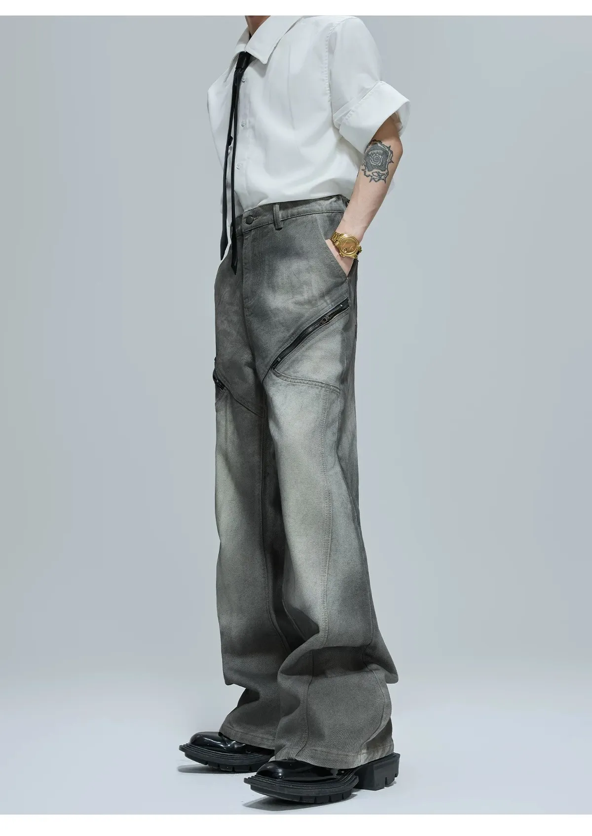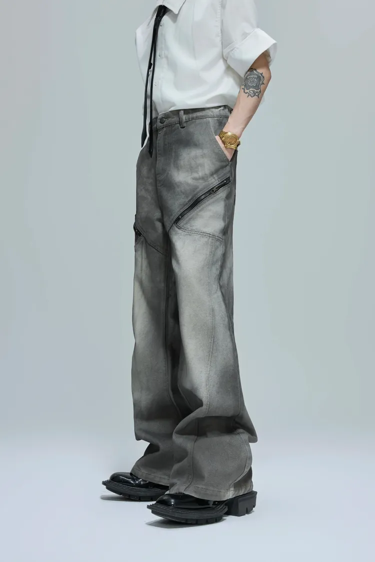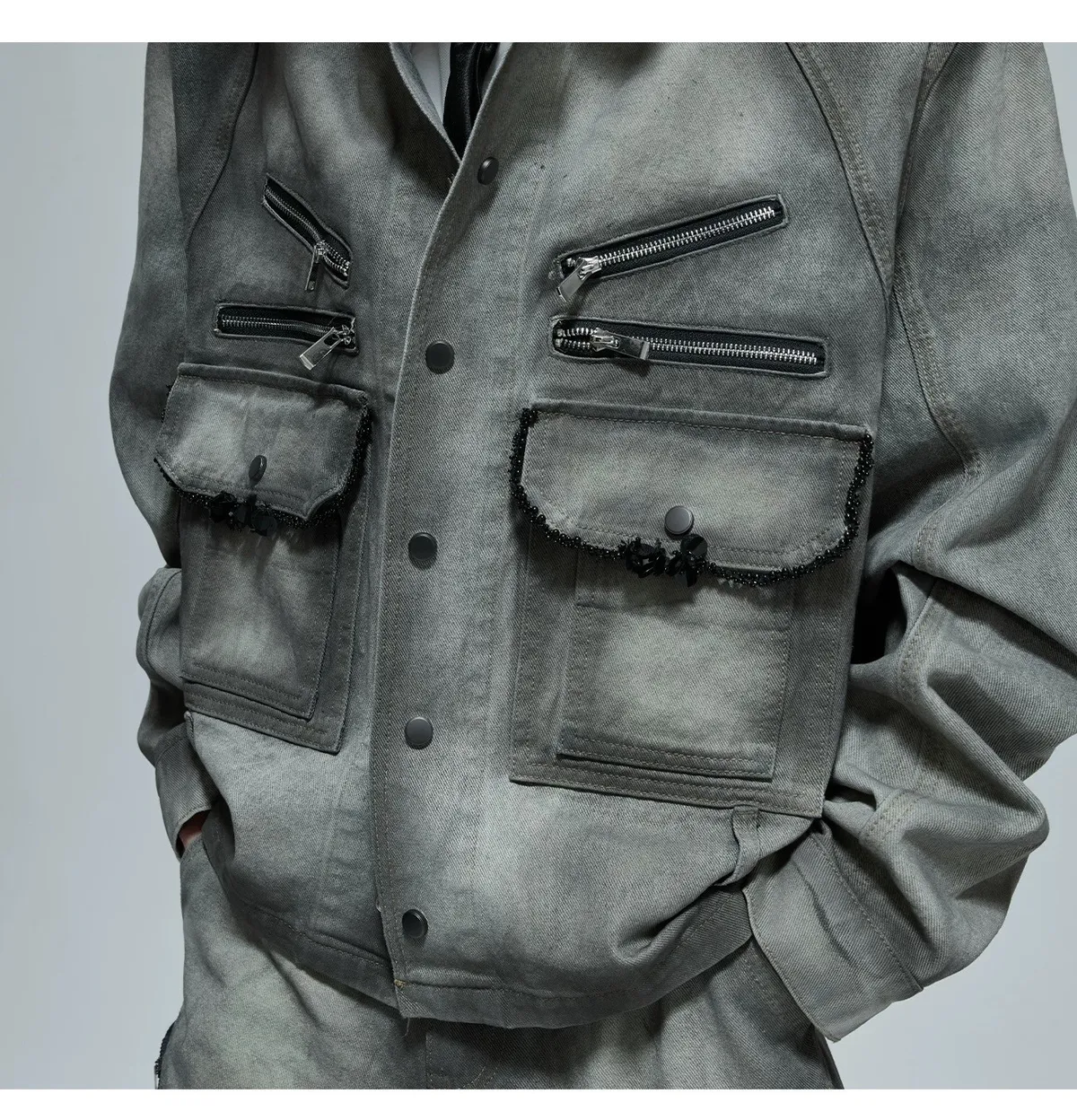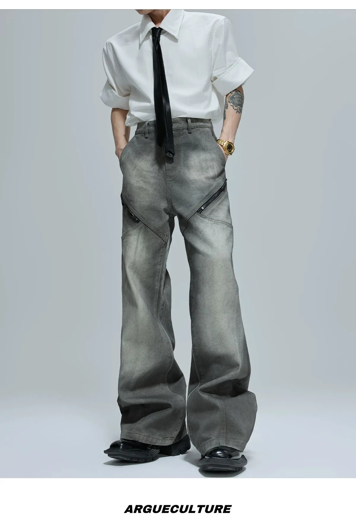 ARGUE 重工復古 廓形 牛仔外套 微喇叭 牛仔褲 套裝(水泥灰)