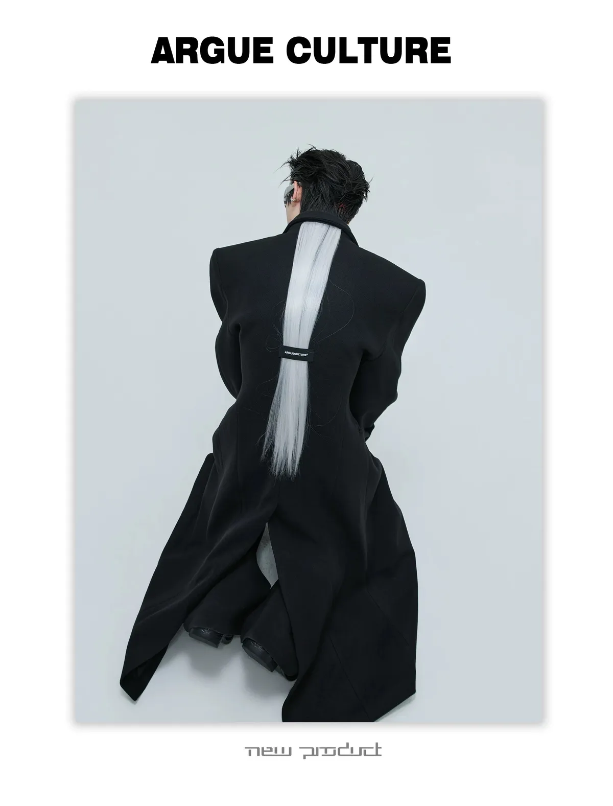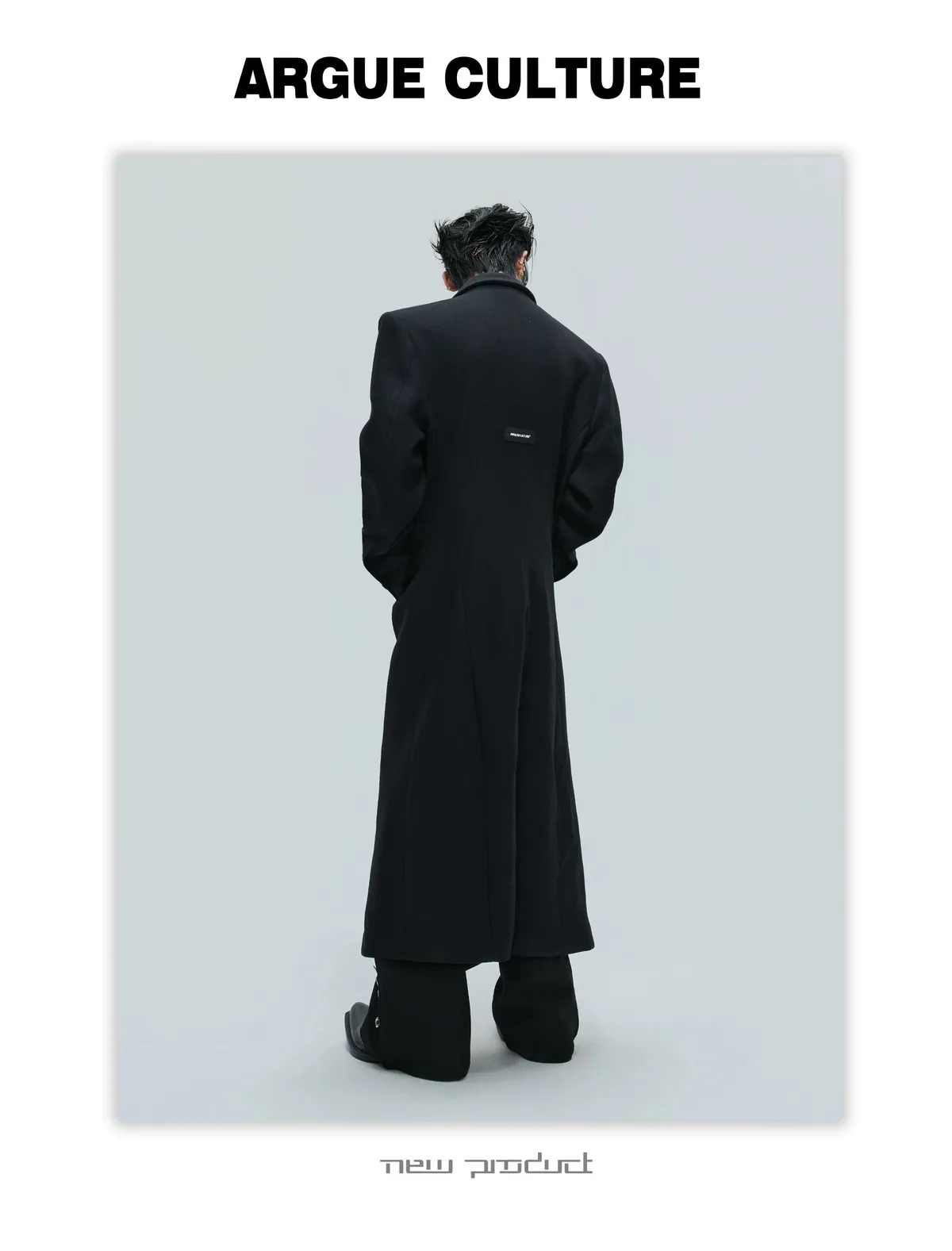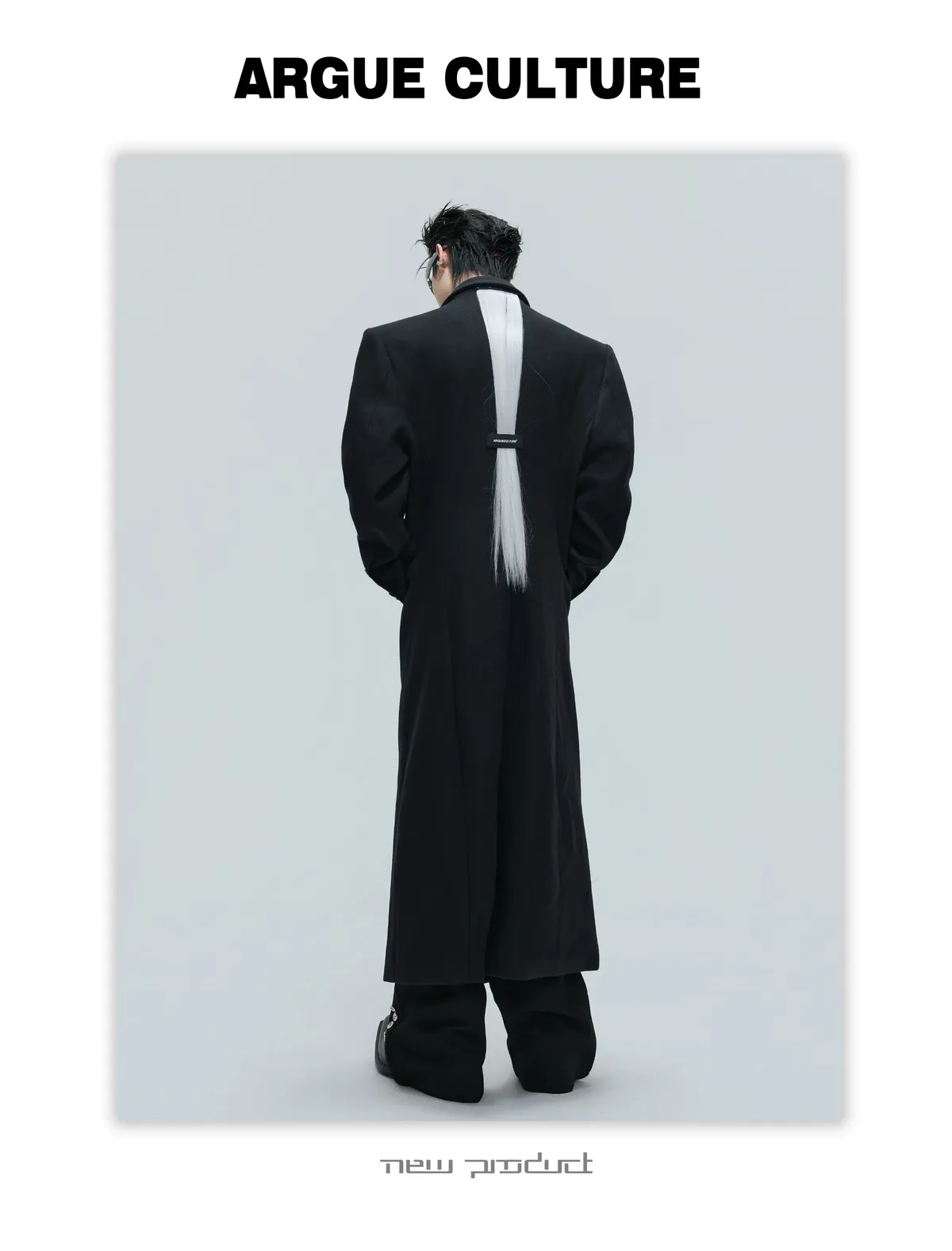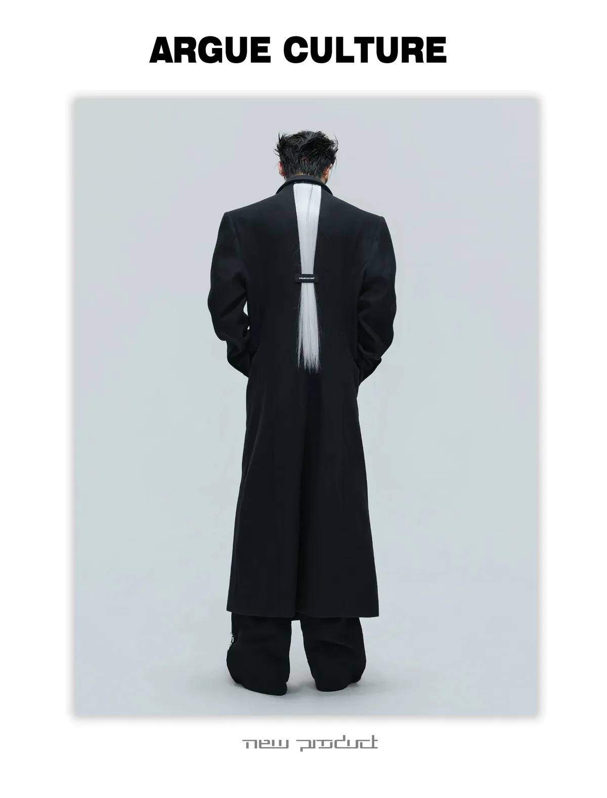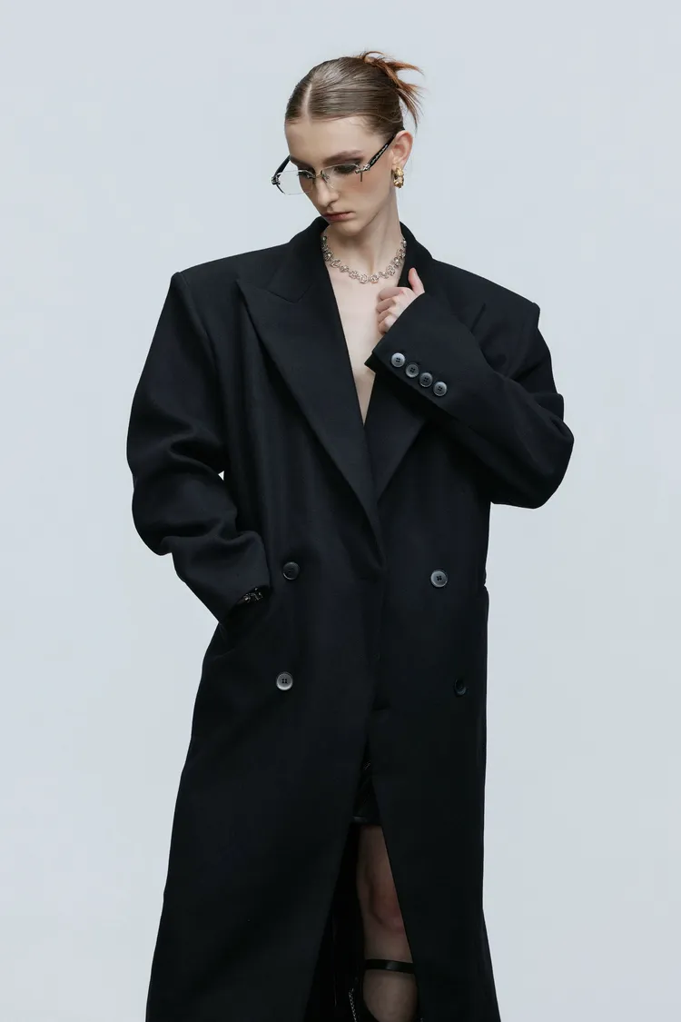 ARGUE 羊毛廓形 髮片設計 收腰 大衣(黑色)