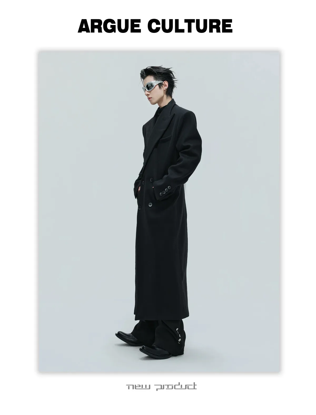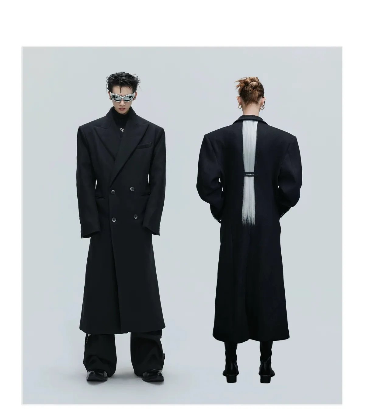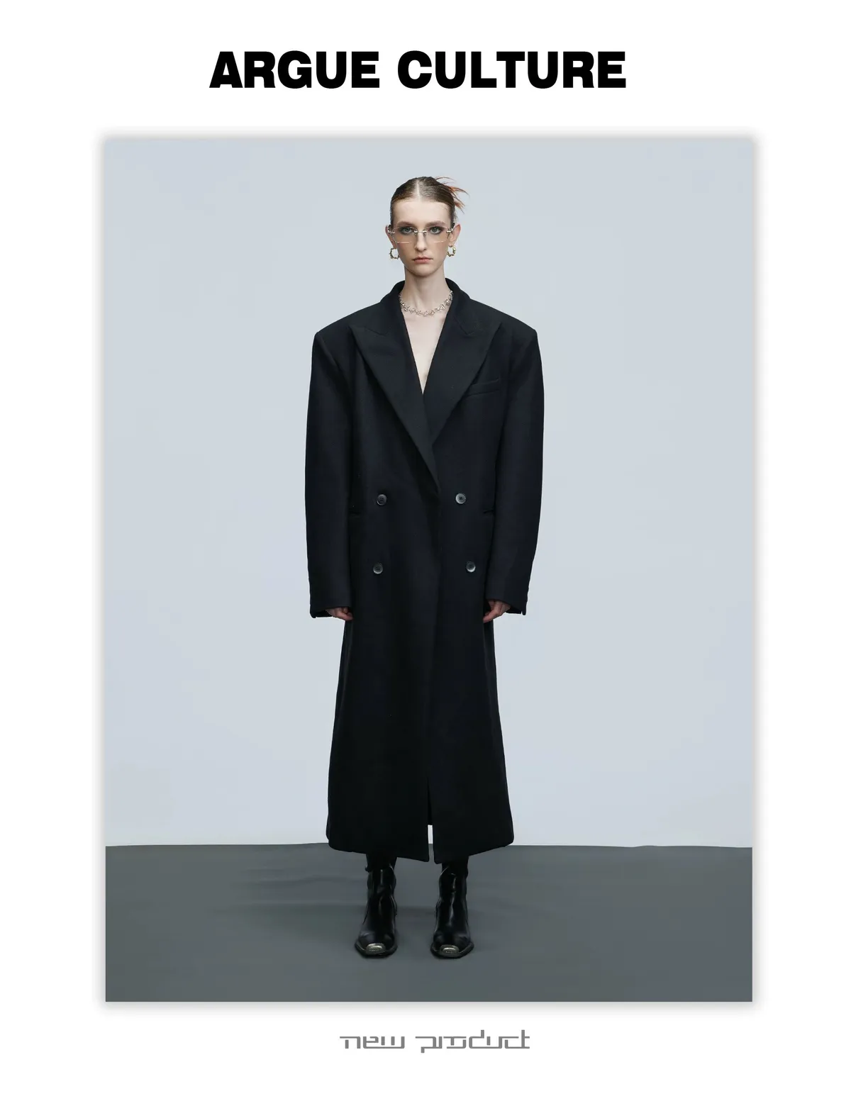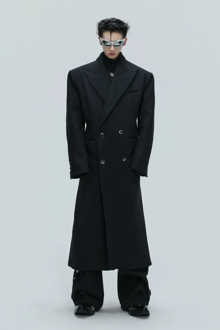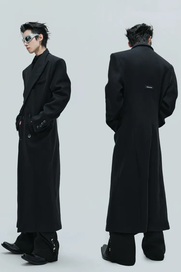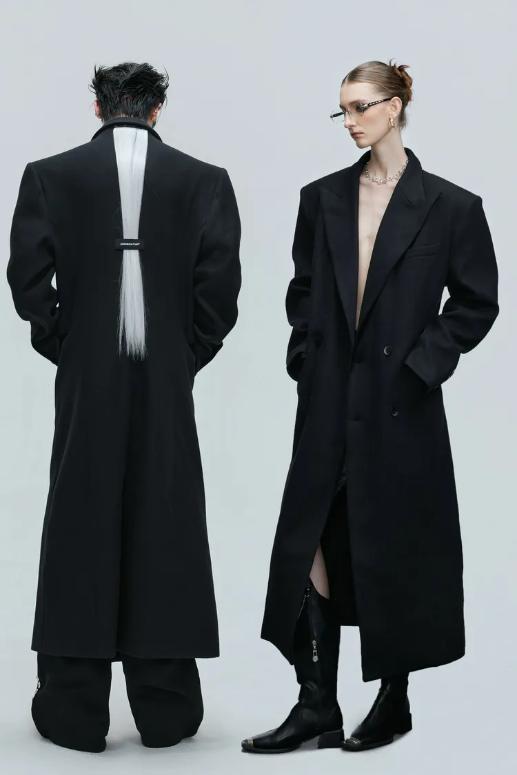 ARGUE 羊毛廓形 髮片設計 收腰 大衣(黑色)