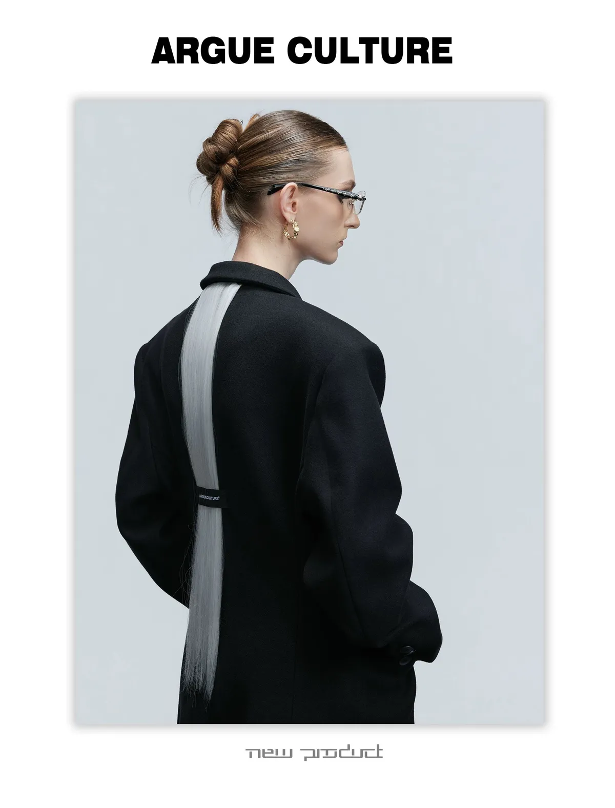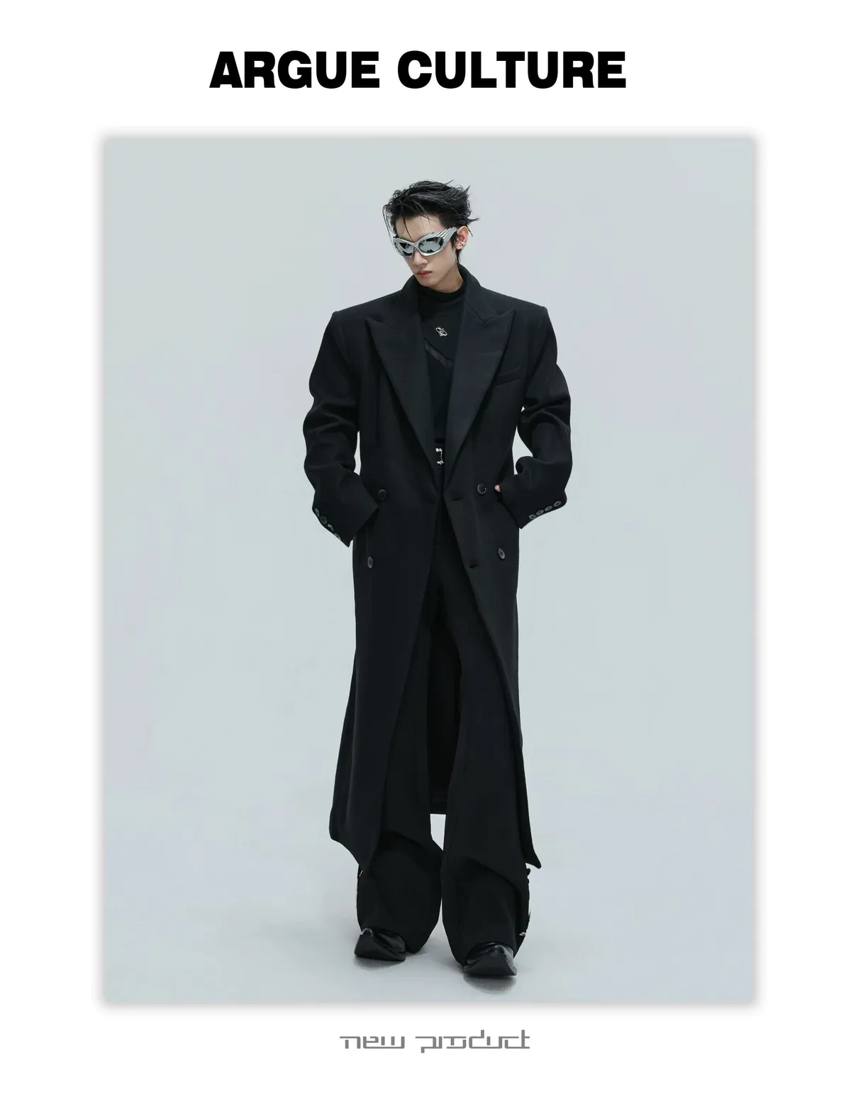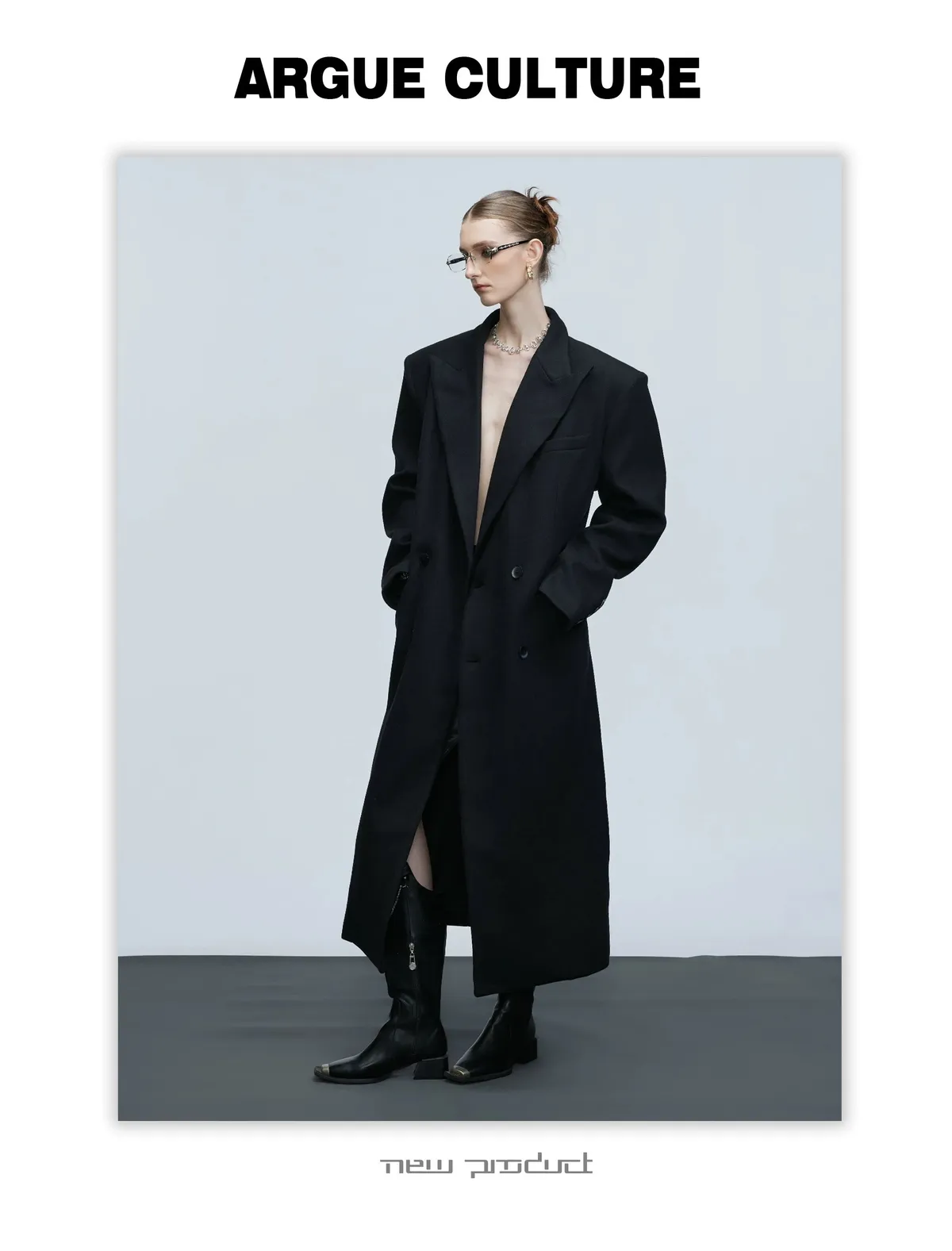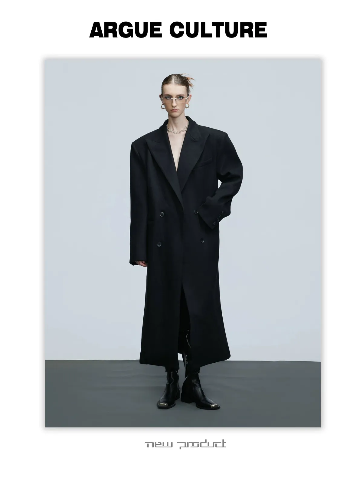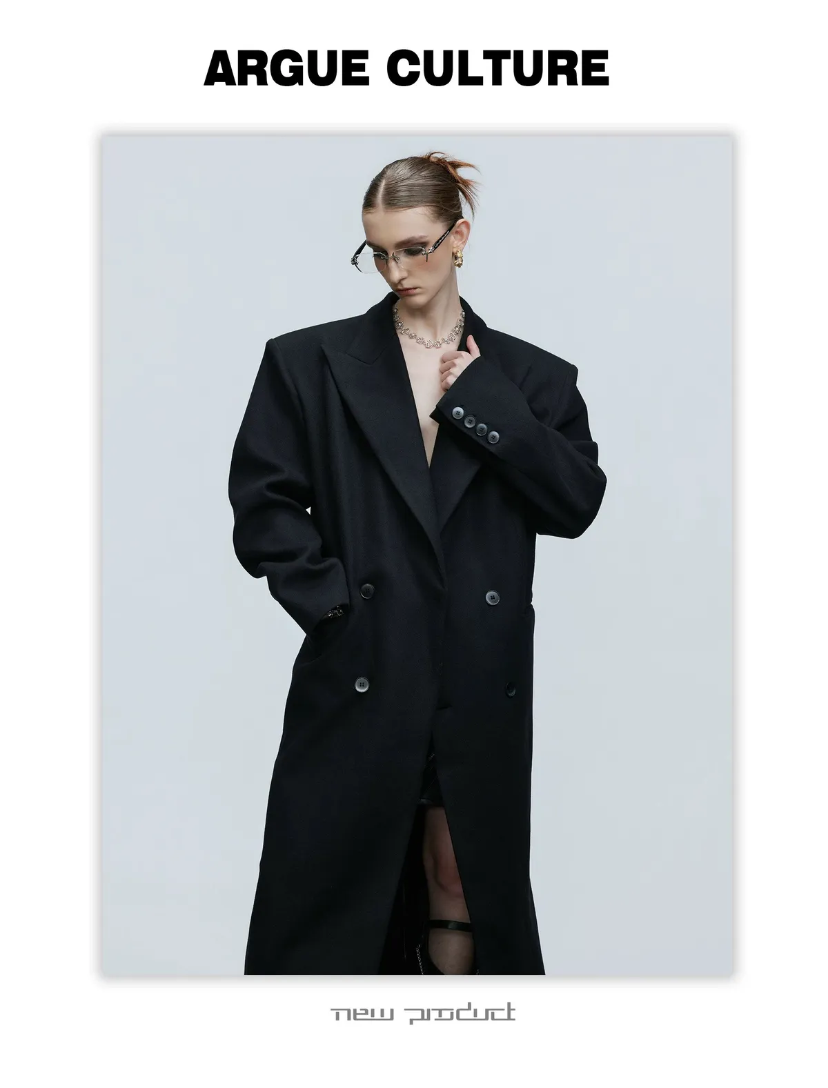 ARGUE 羊毛廓形 髮片設計 收腰 大衣(黑色)
