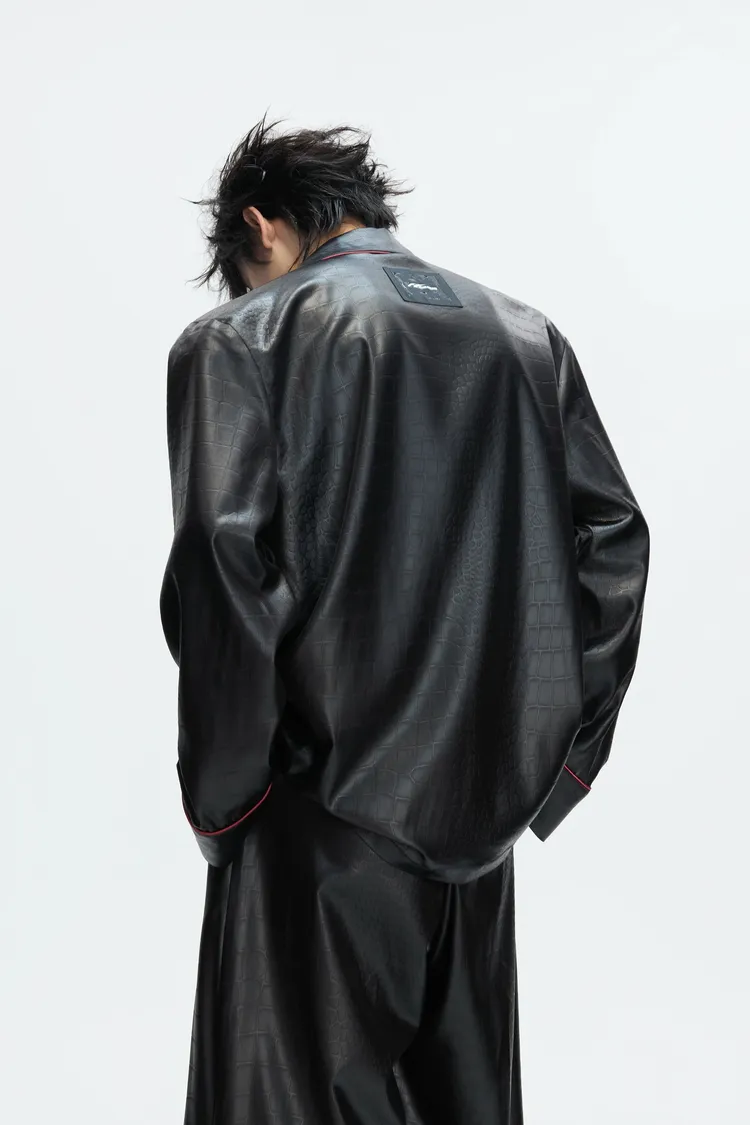 [LAX STUDIO] ARGUE 馬標徽章 宮廷扣 皮革 外套(黑色)