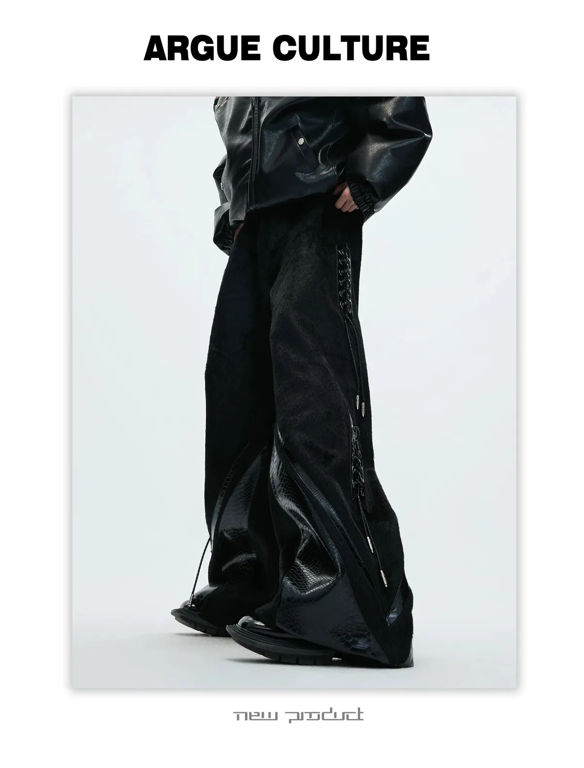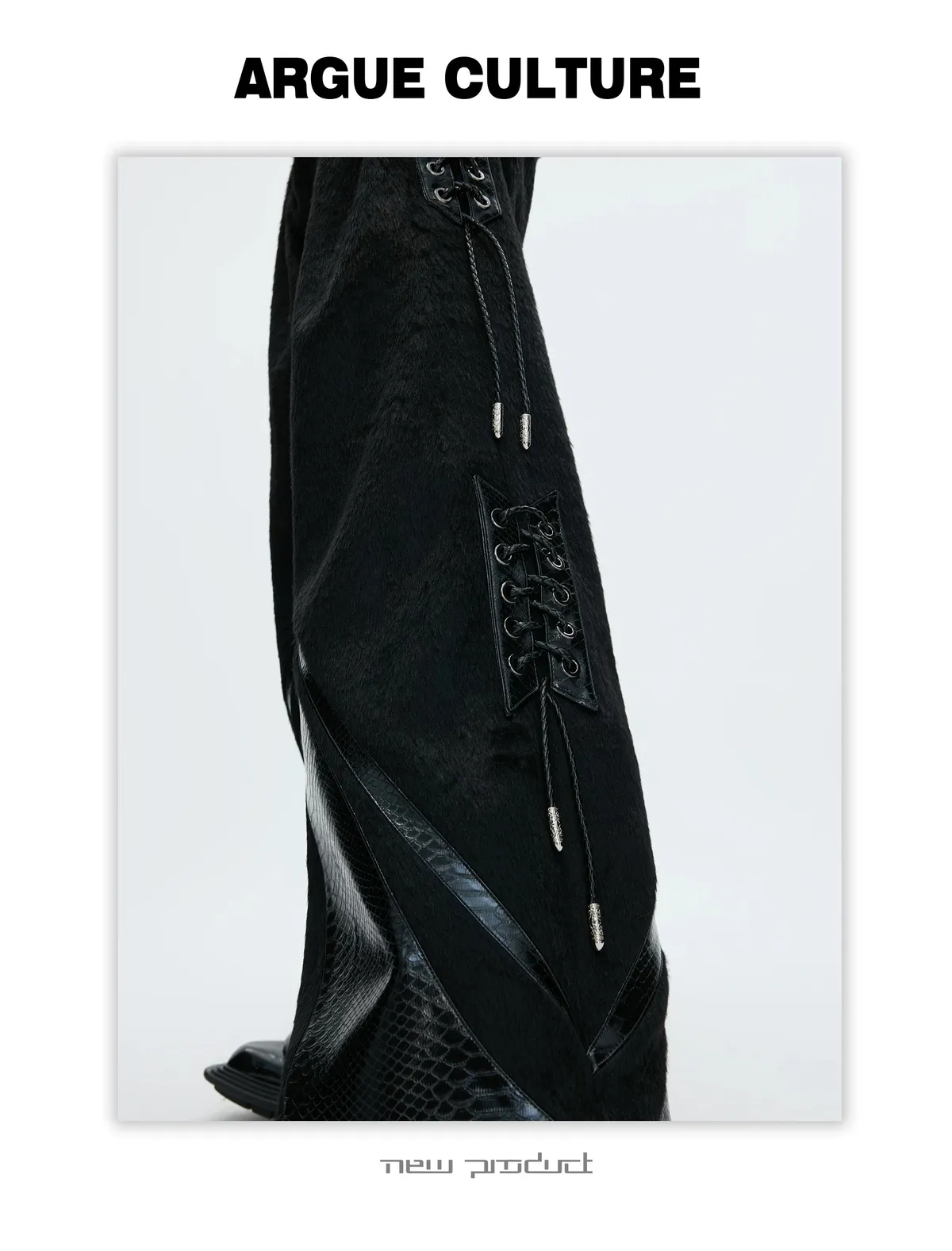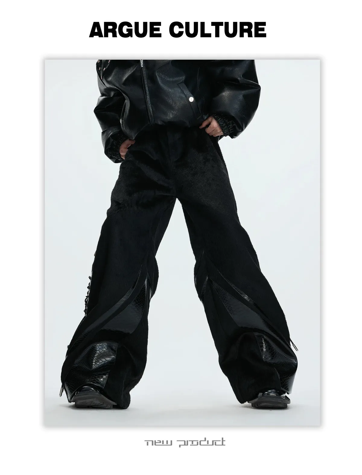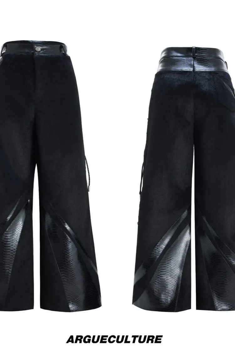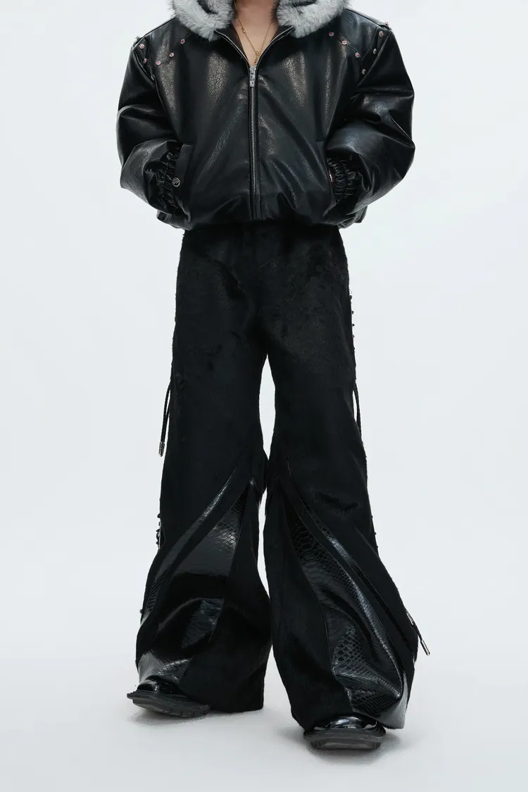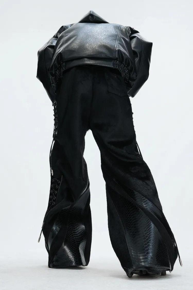[LAX STUDIO] ARGUE 馬毛拼接 鱷魚紋 皮褲(黑色)
