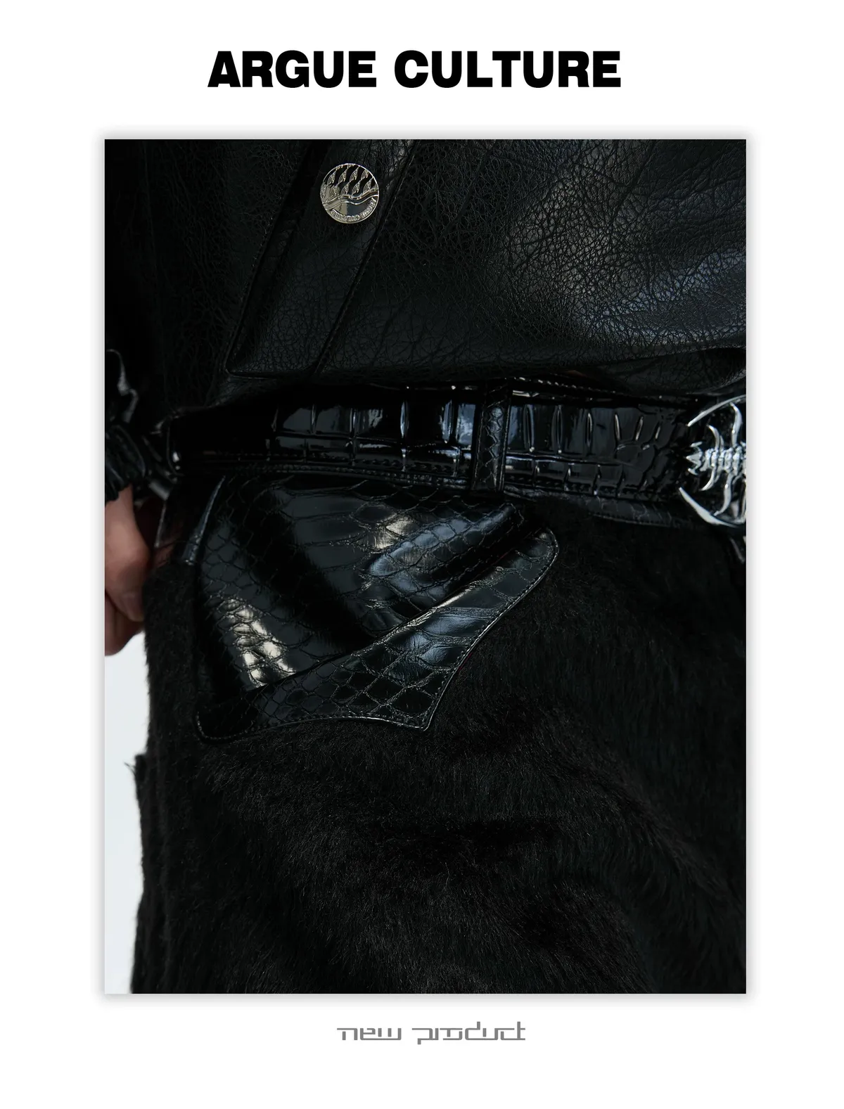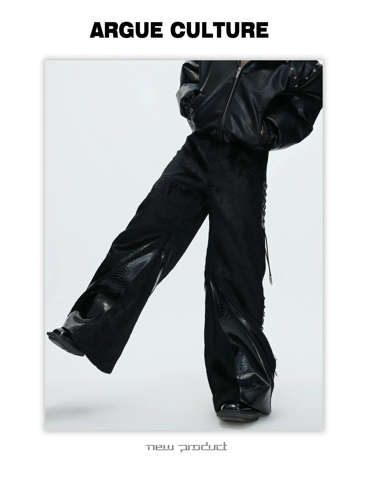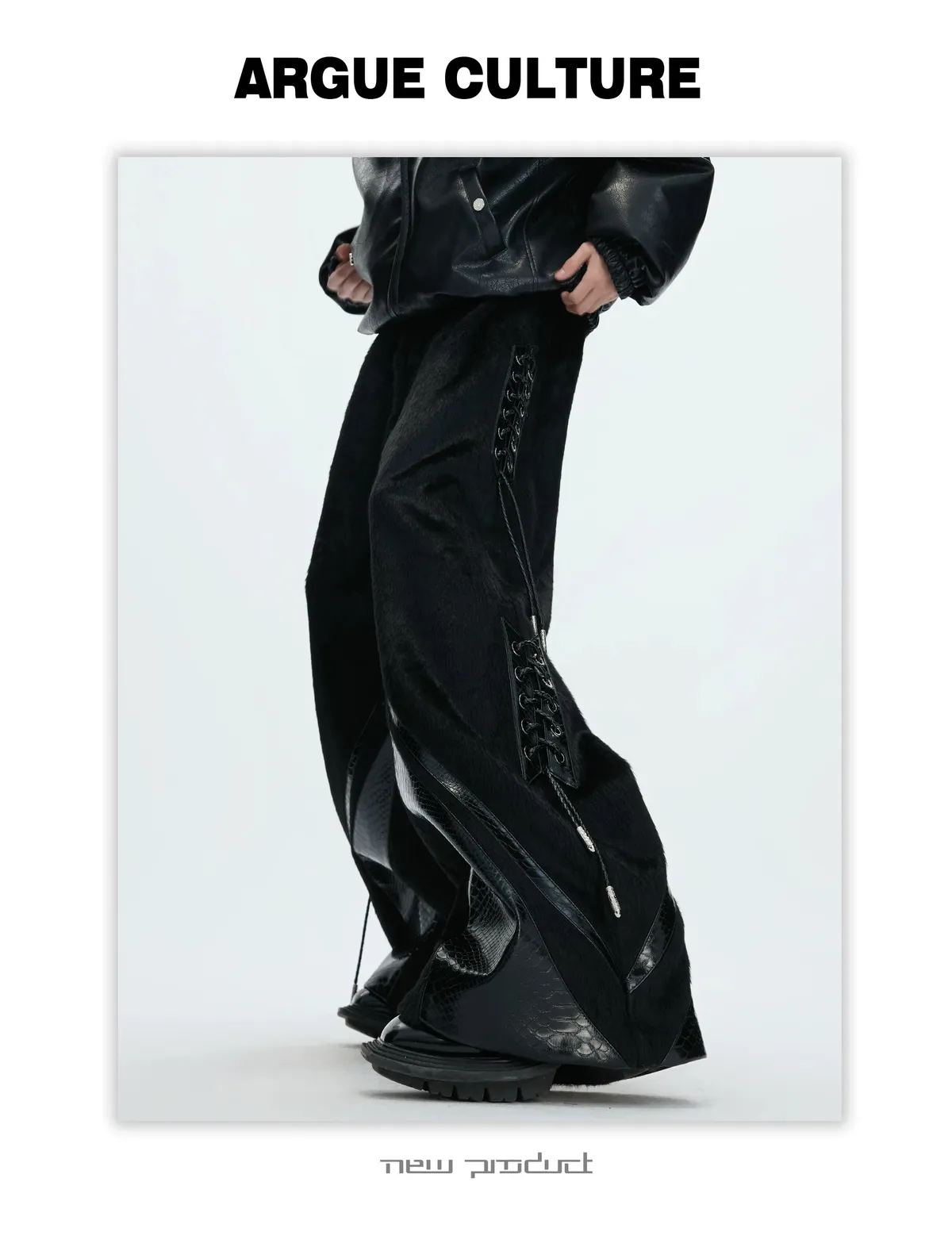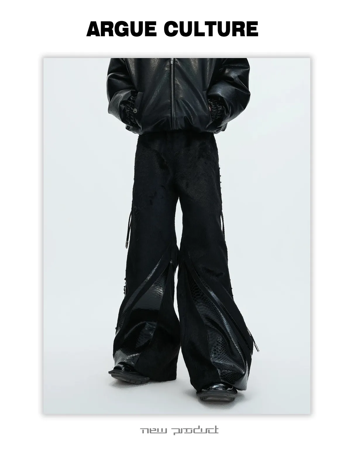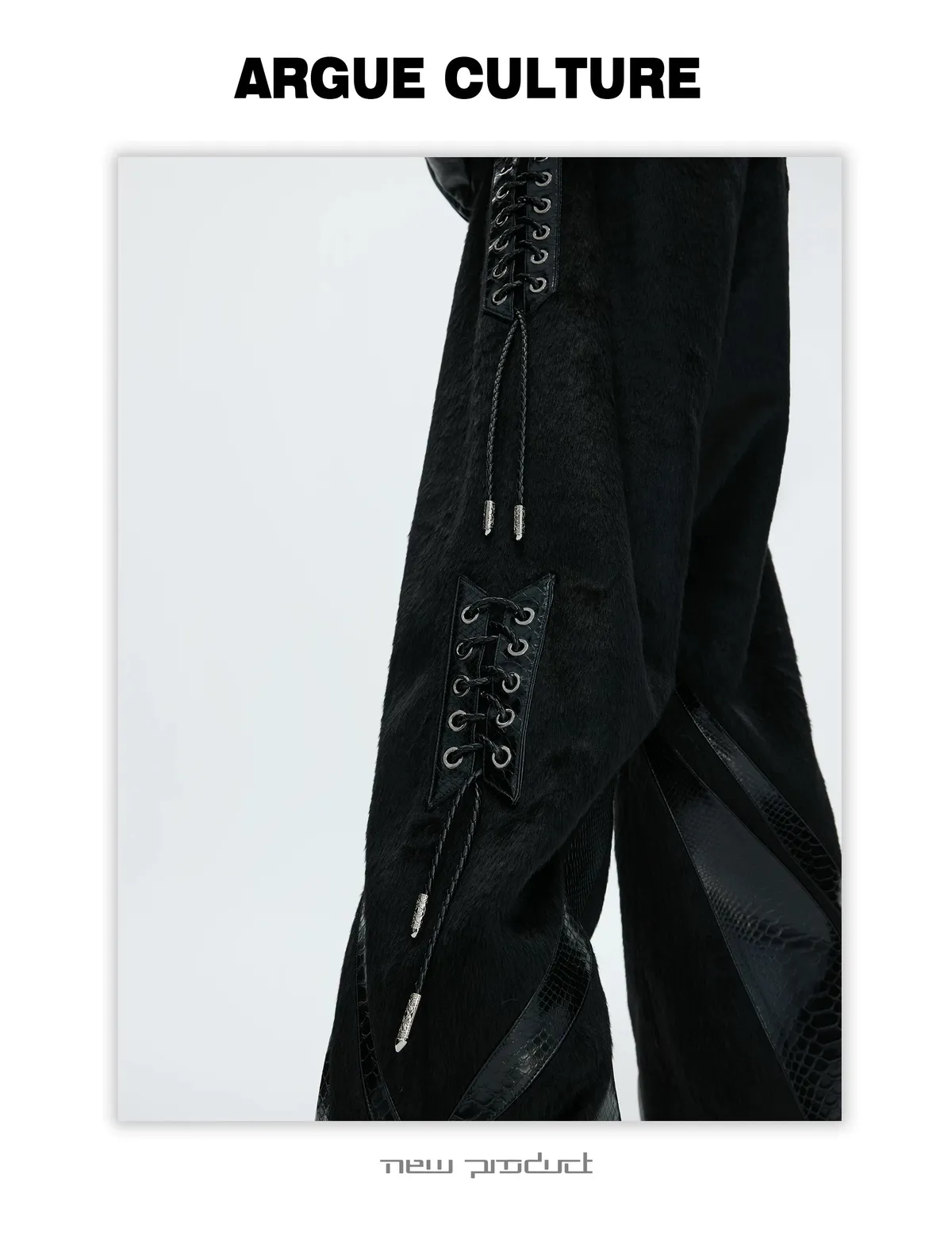 [LAX STUDIO] ARGUE 馬毛拼接 鱷魚紋 皮褲(黑色)