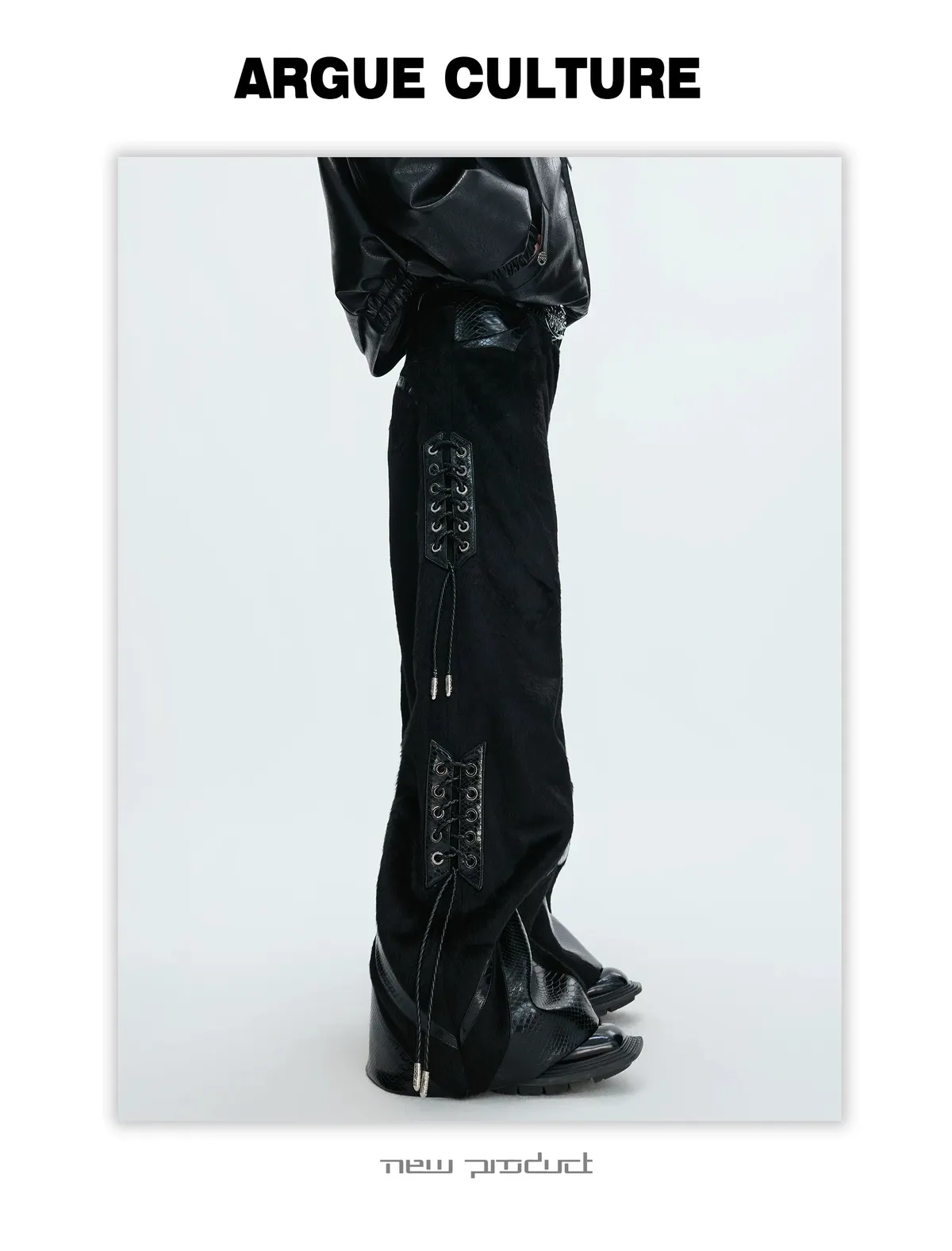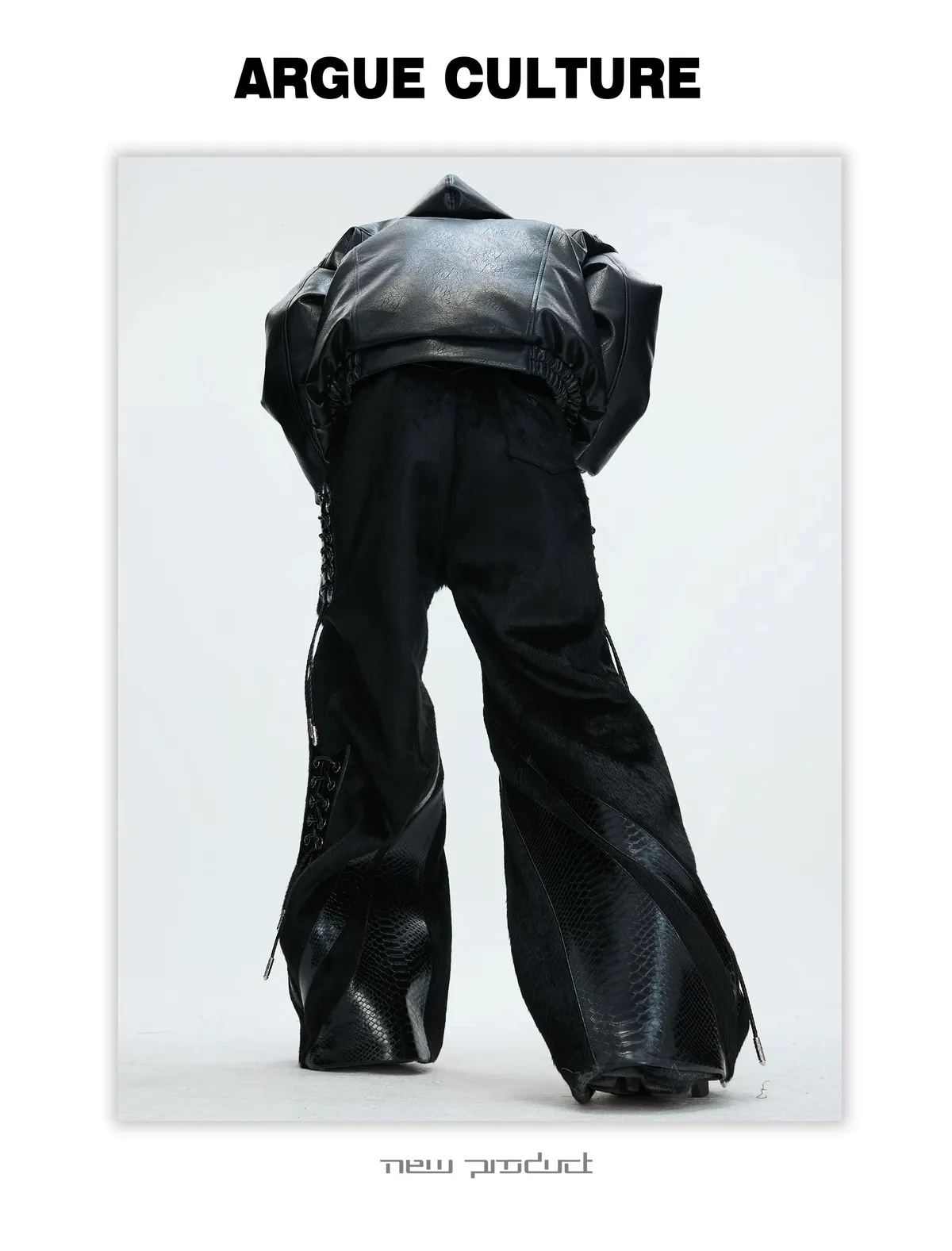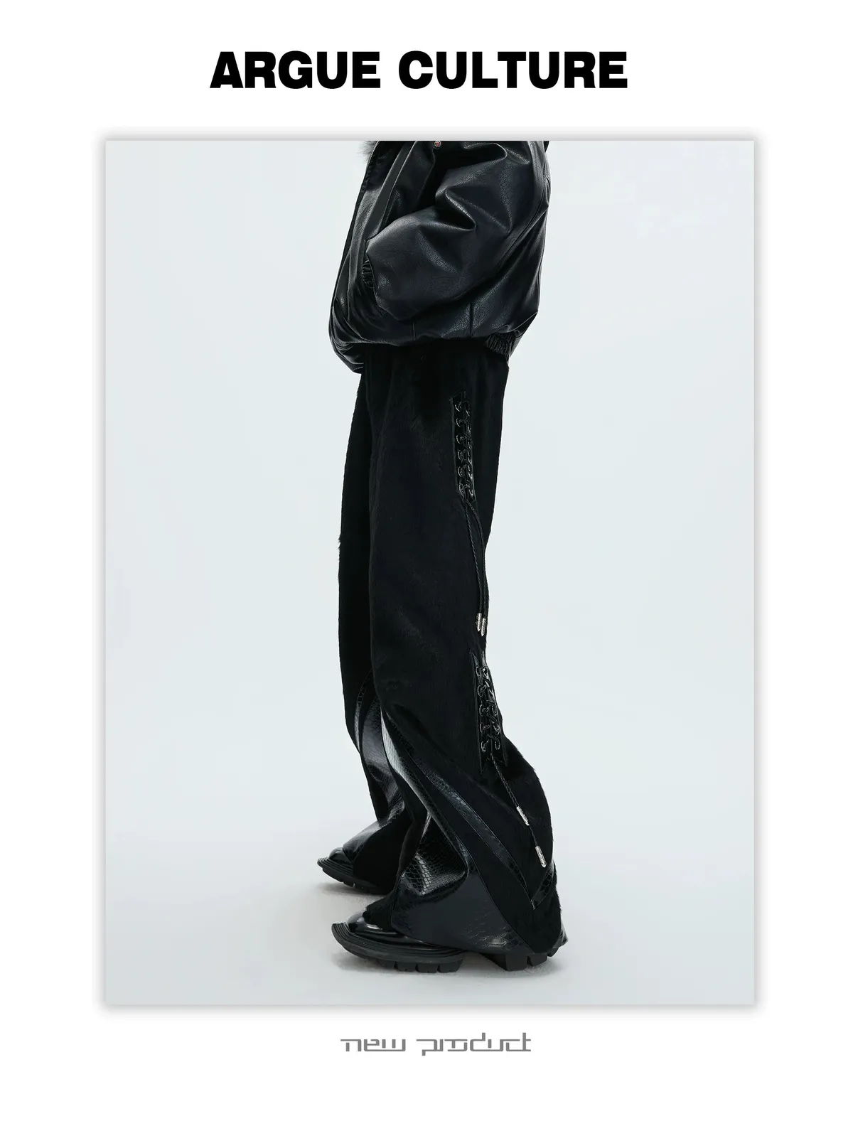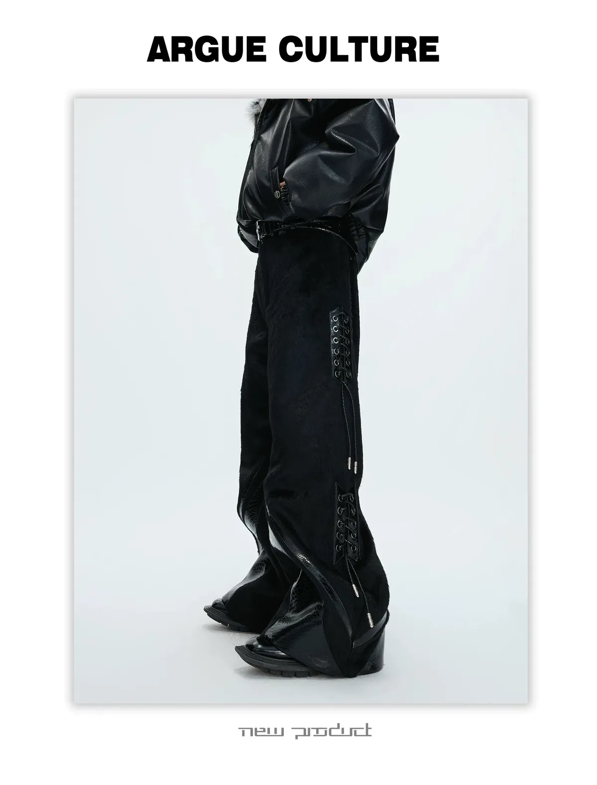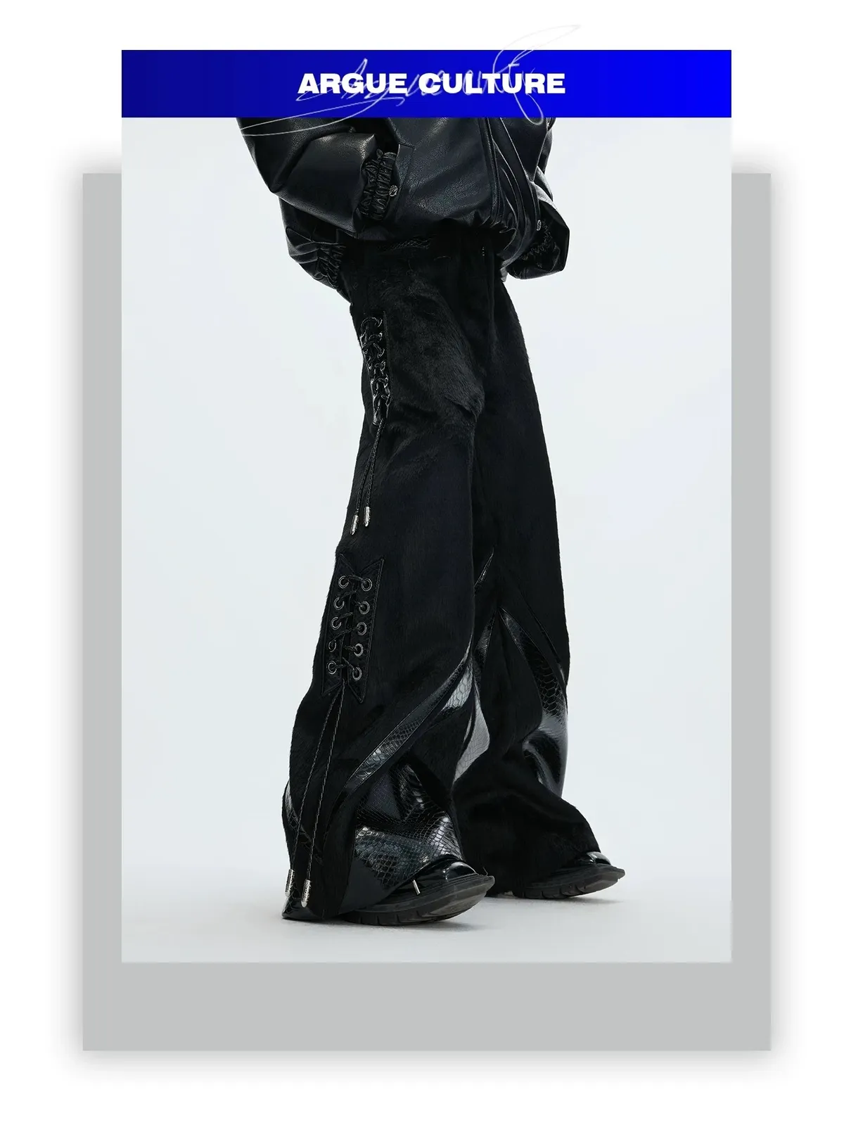 [LAX STUDIO] ARGUE 馬毛拼接 鱷魚紋 皮褲(黑色)