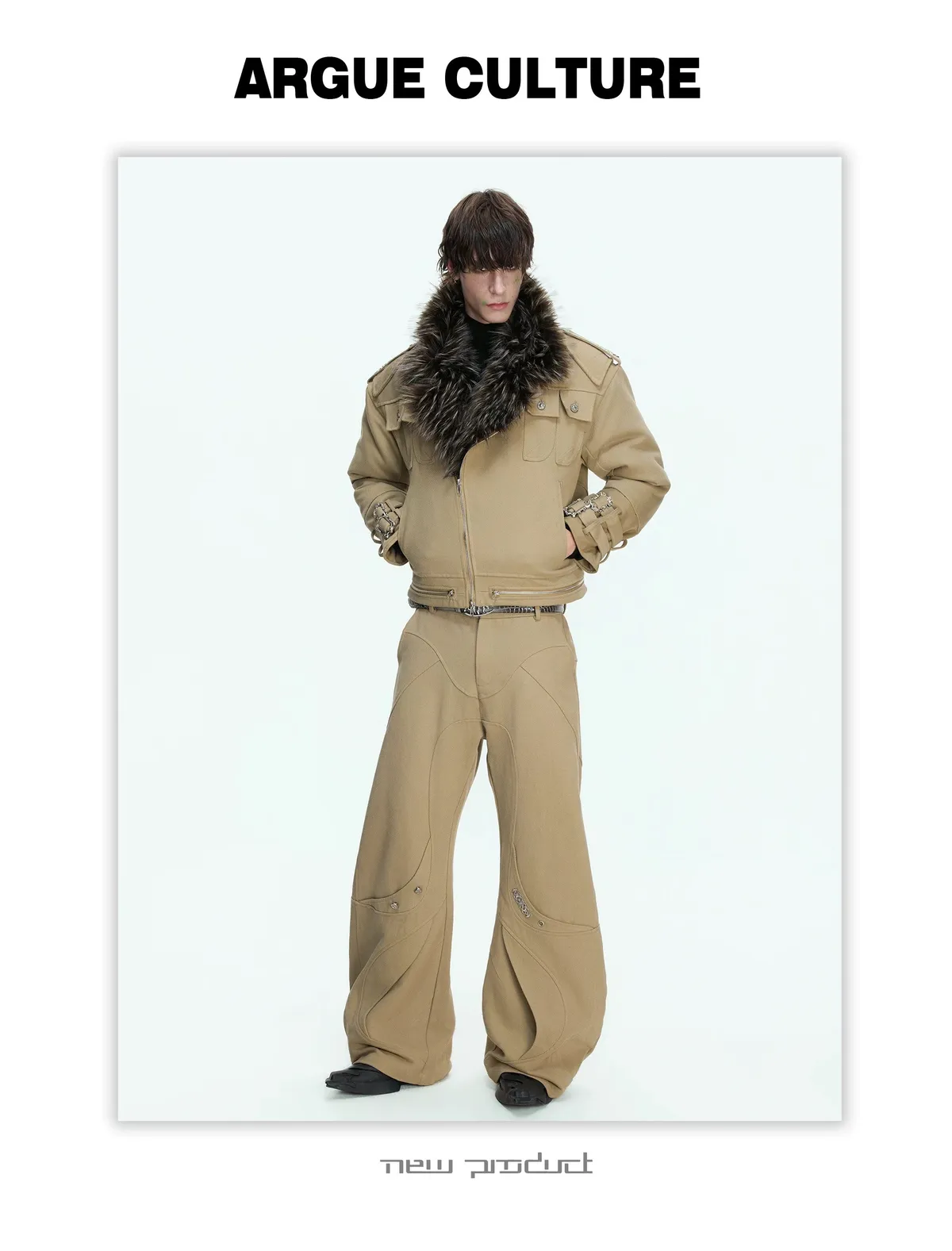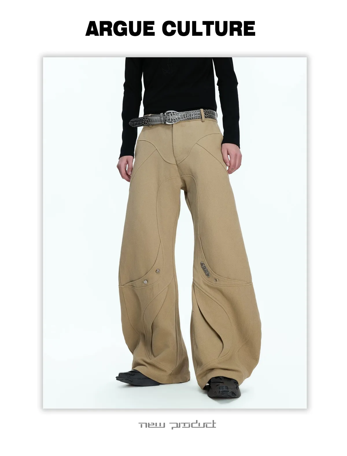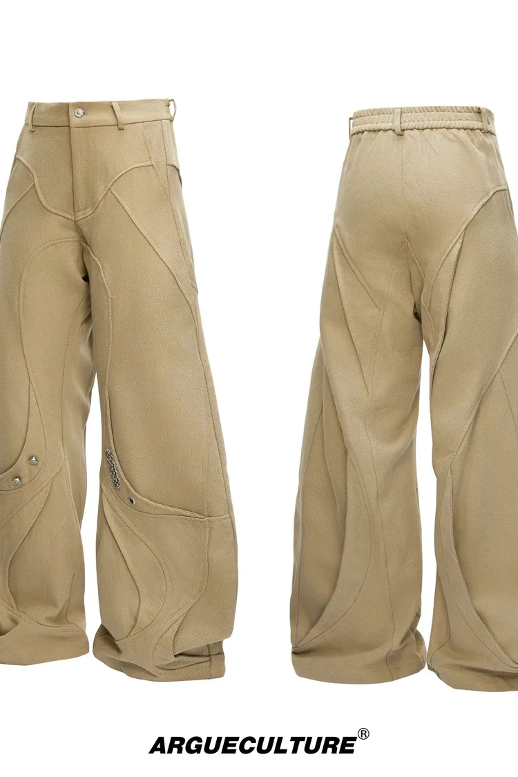 [LAX STUDIO] ARGUE 秀款 水洗分割 帆布彎刀 長褲(卡其/黑)