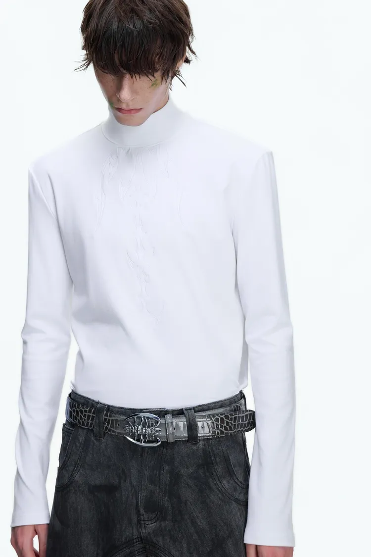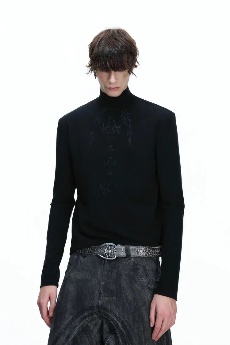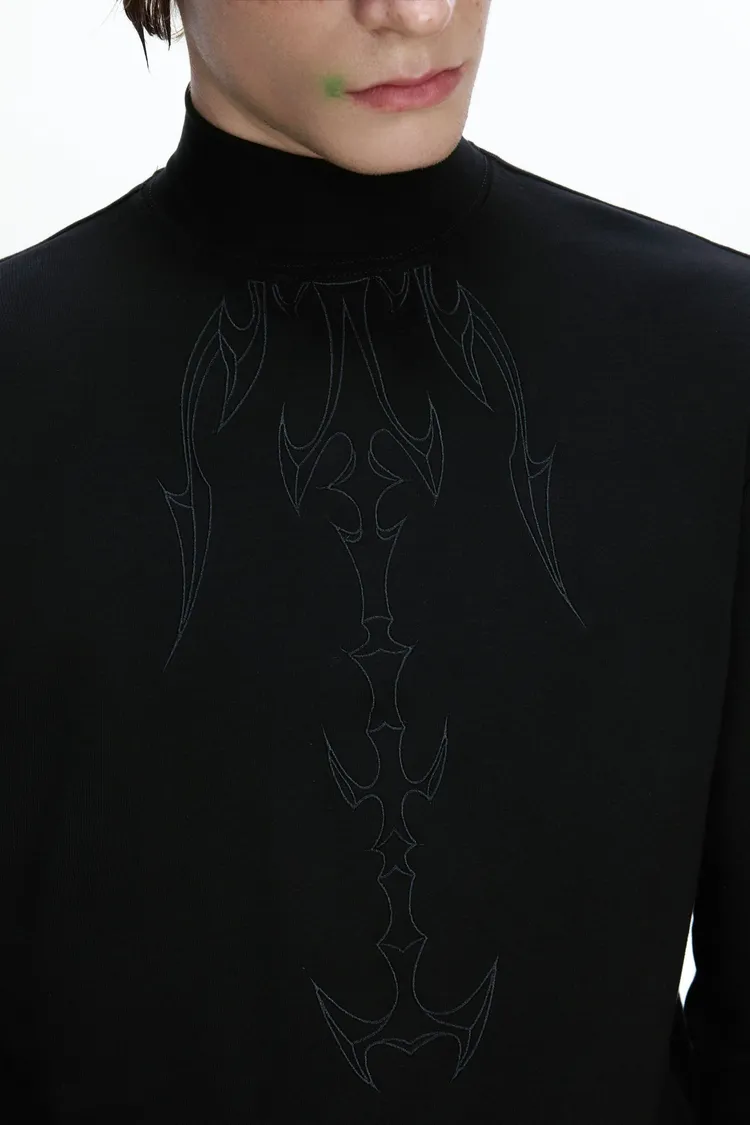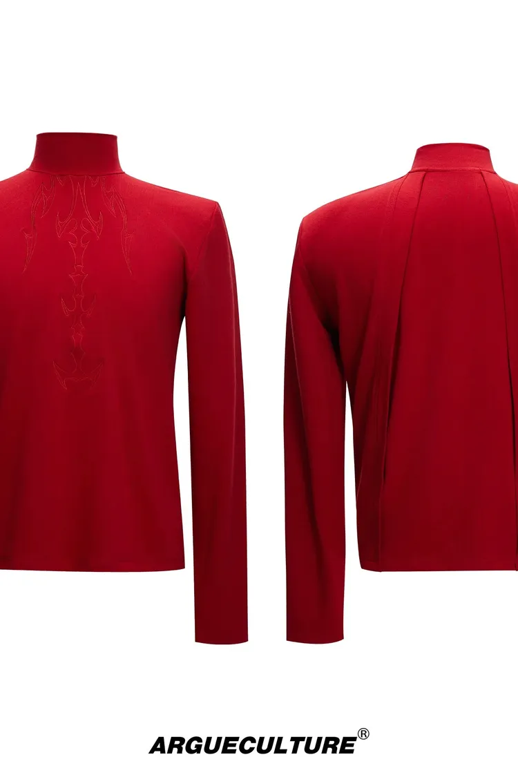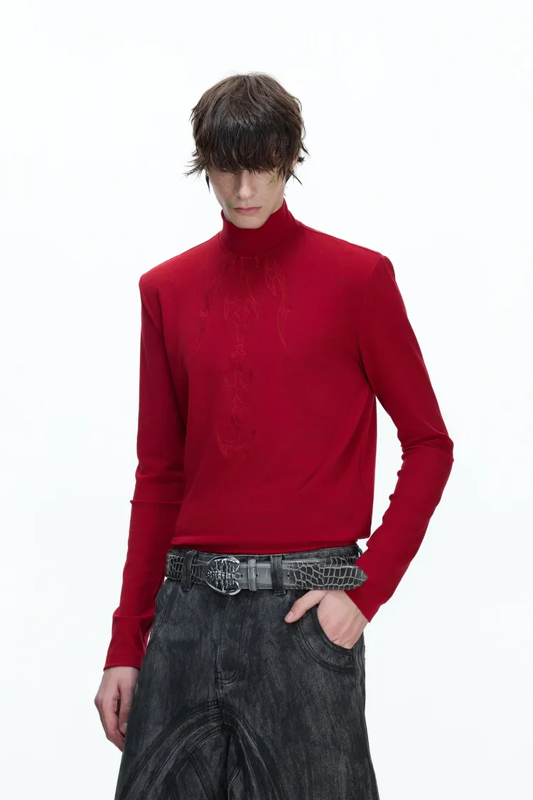 [LAX STUDIO] ARGUE 脊骨刺繡 高領 上衣(黑/白/紅)