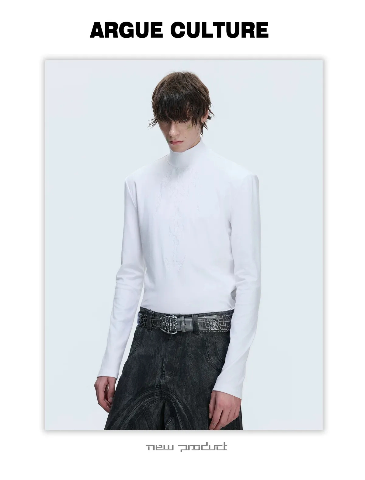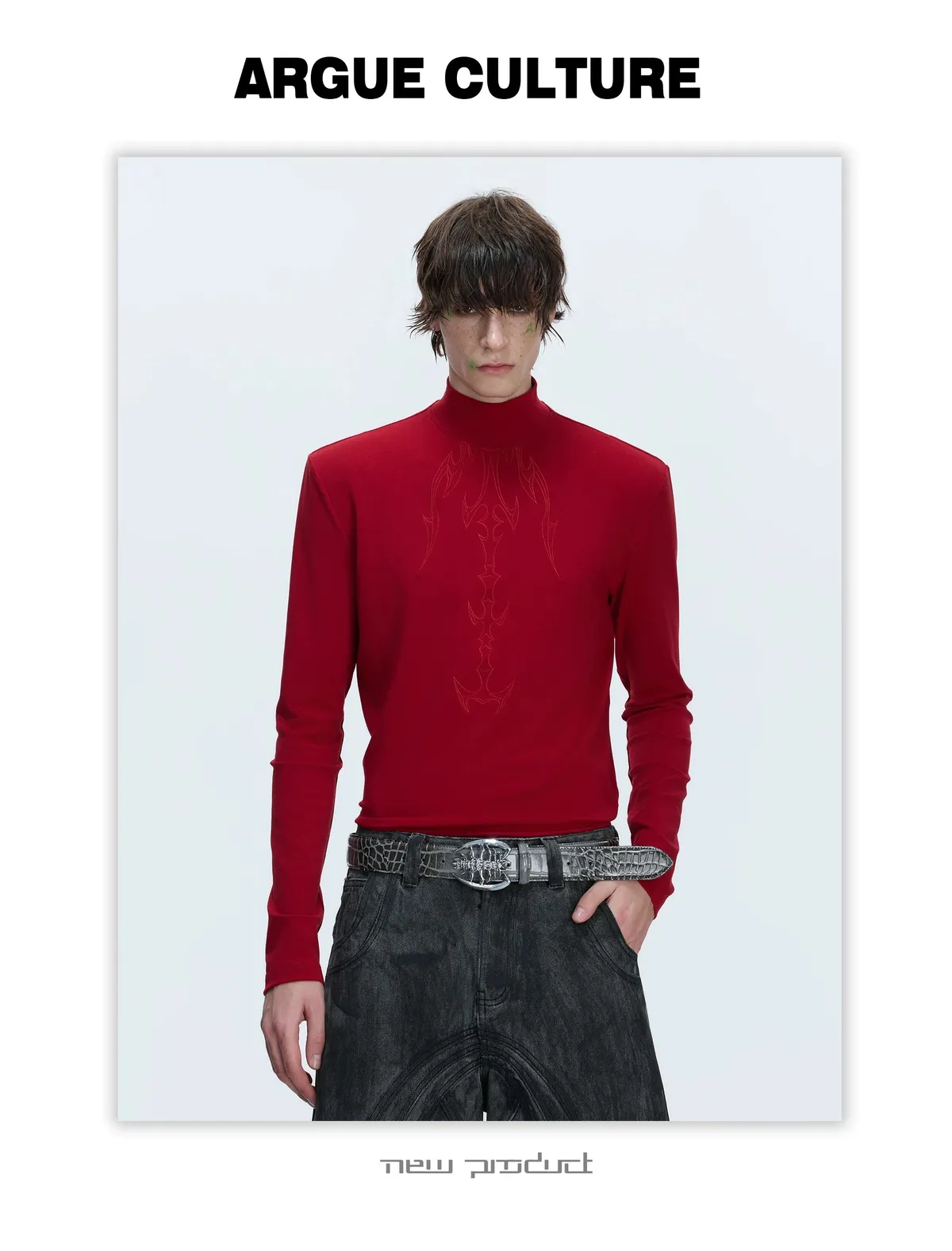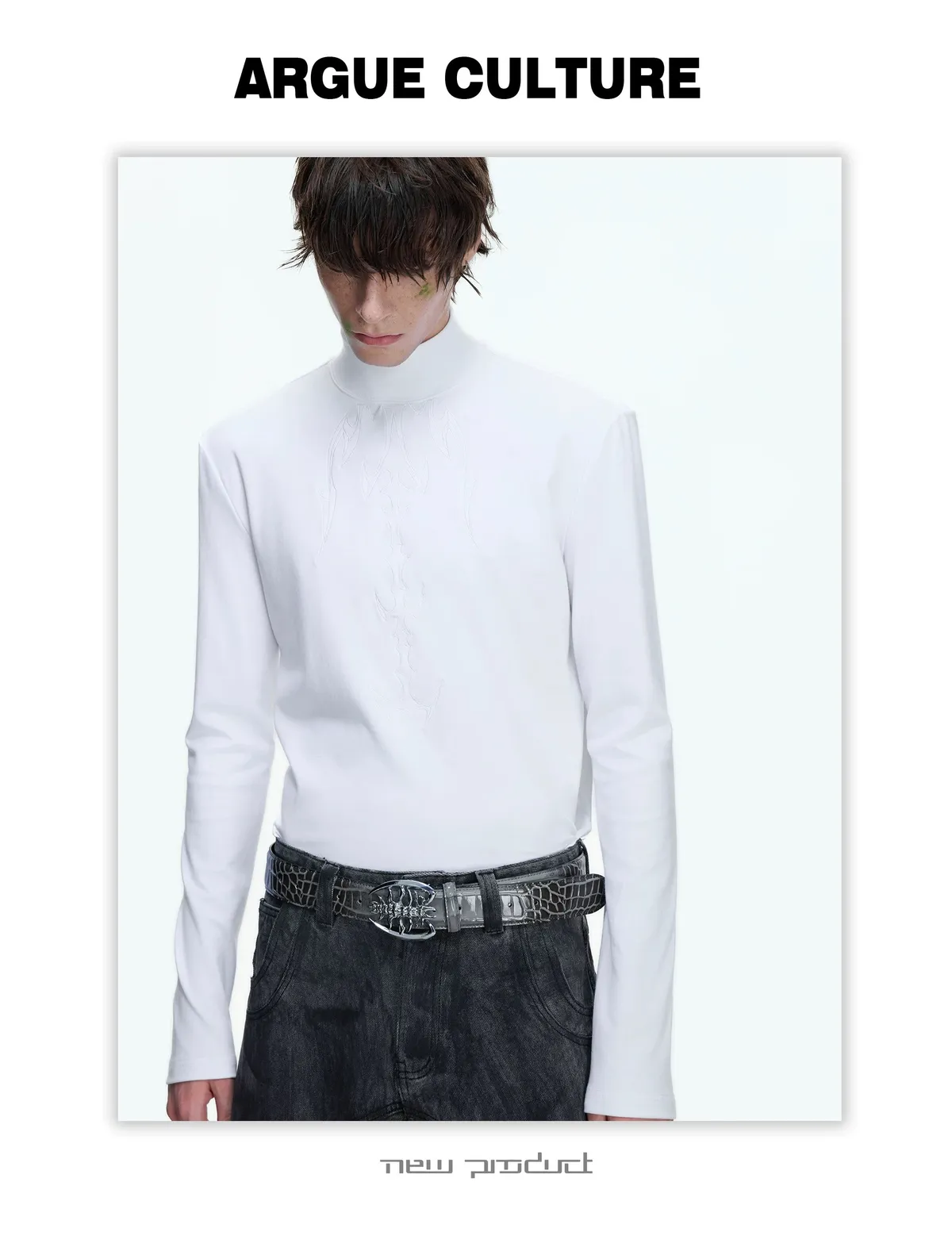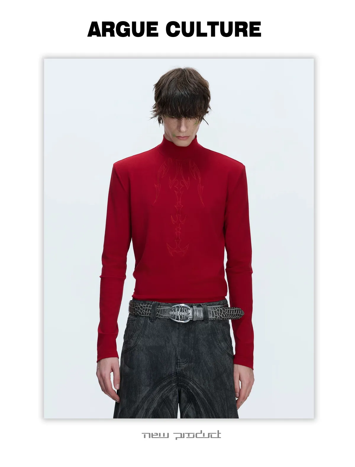 ARGUE 貼身本命 解構高領 撞色刺繡 內搭 長袖