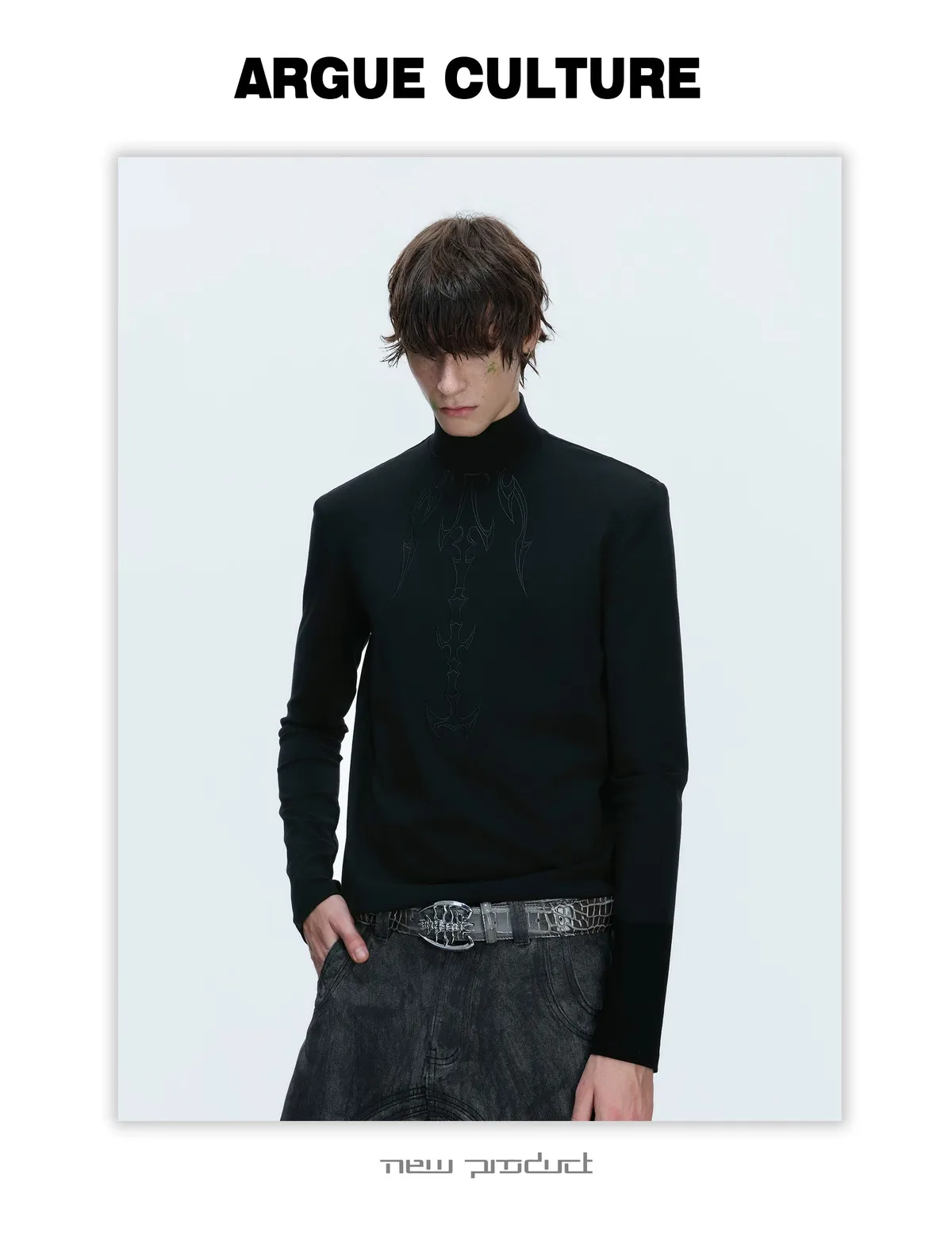 ARGUE 刀割感 立領 長袖(黑色)
