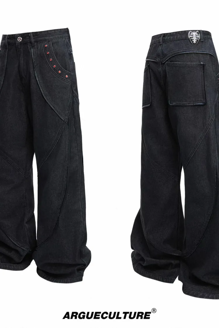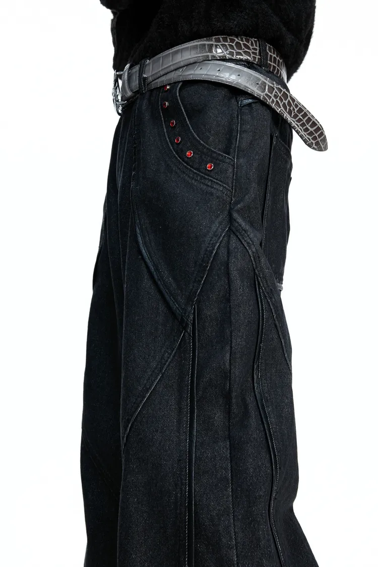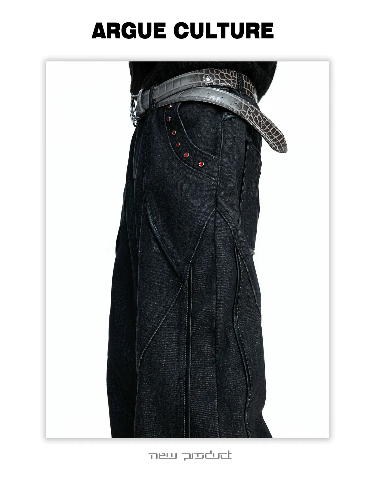 [LAX STUDIO] ARGUE 復古紅鑽 結構重工 牛仔褲(黑色)