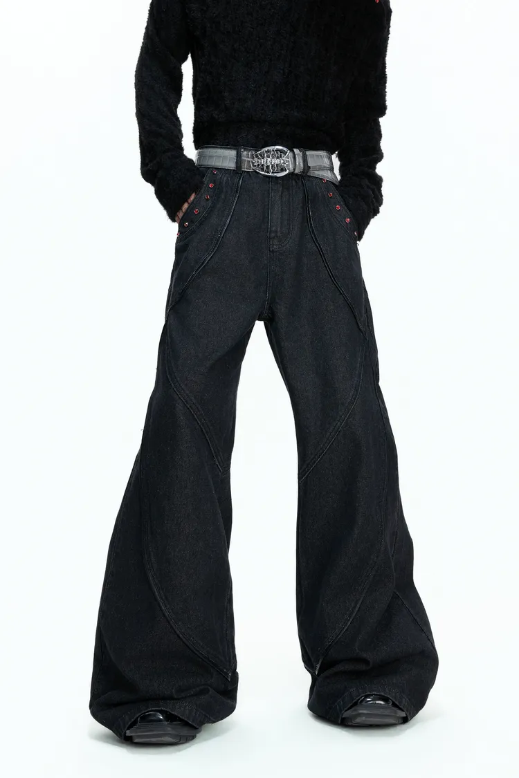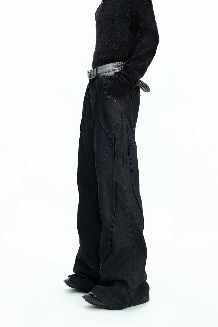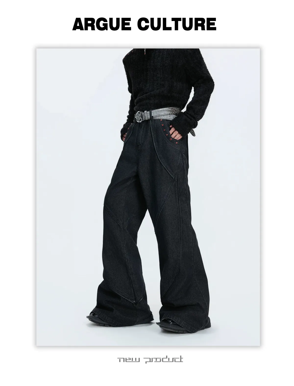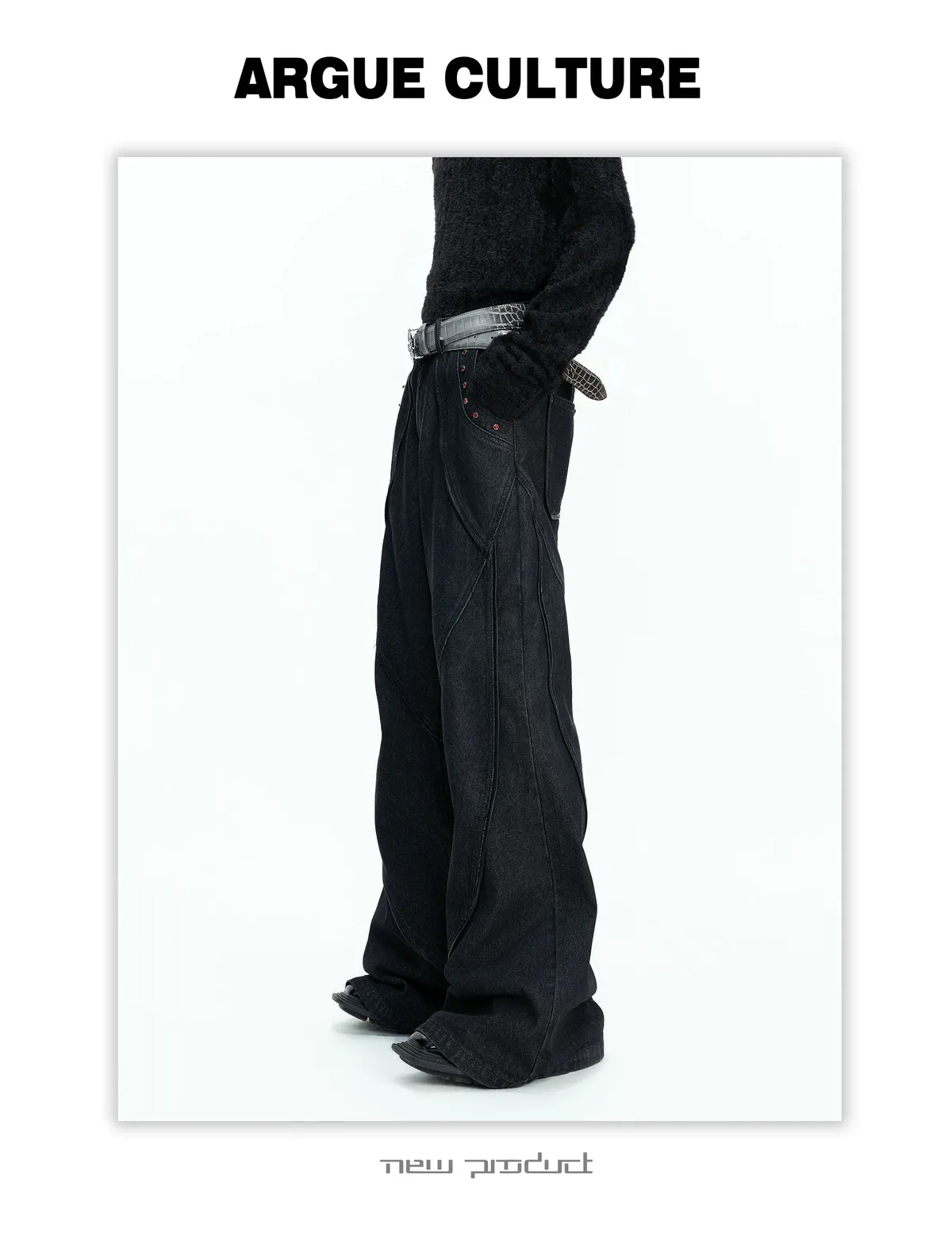 [LAX STUDIO] ARGUE 復古紅鑽 結構重工 牛仔褲(黑色)