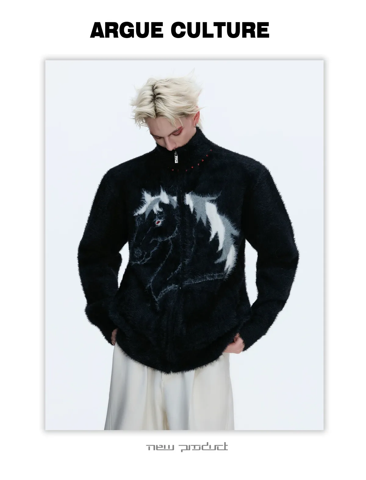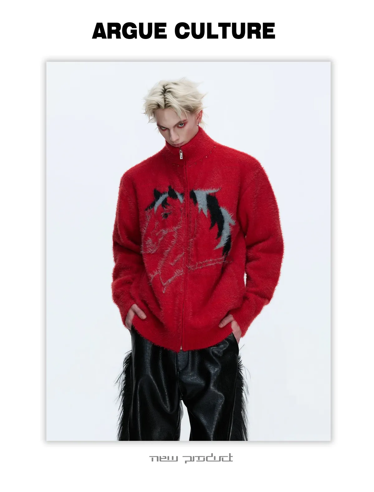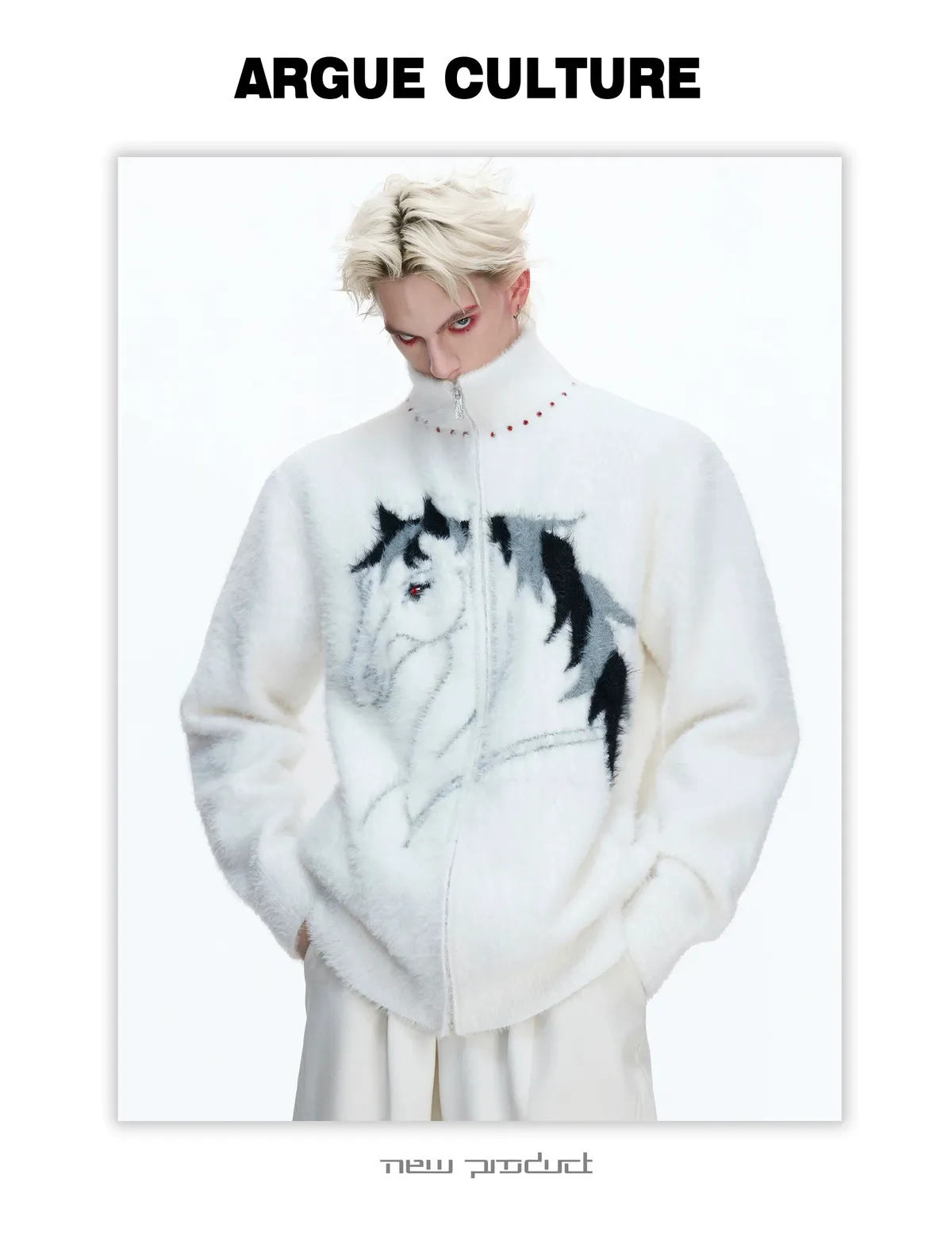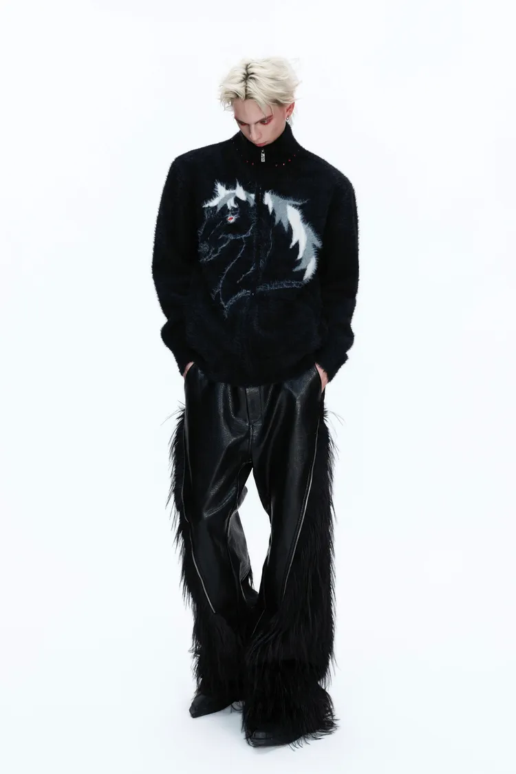 [LAX STUDIO] ARGUE 仿貂毛 馬年限定 針織外套(黑/白/紅)