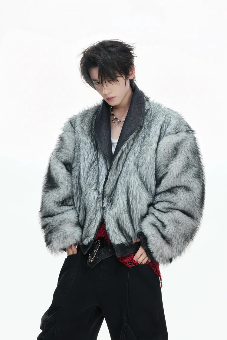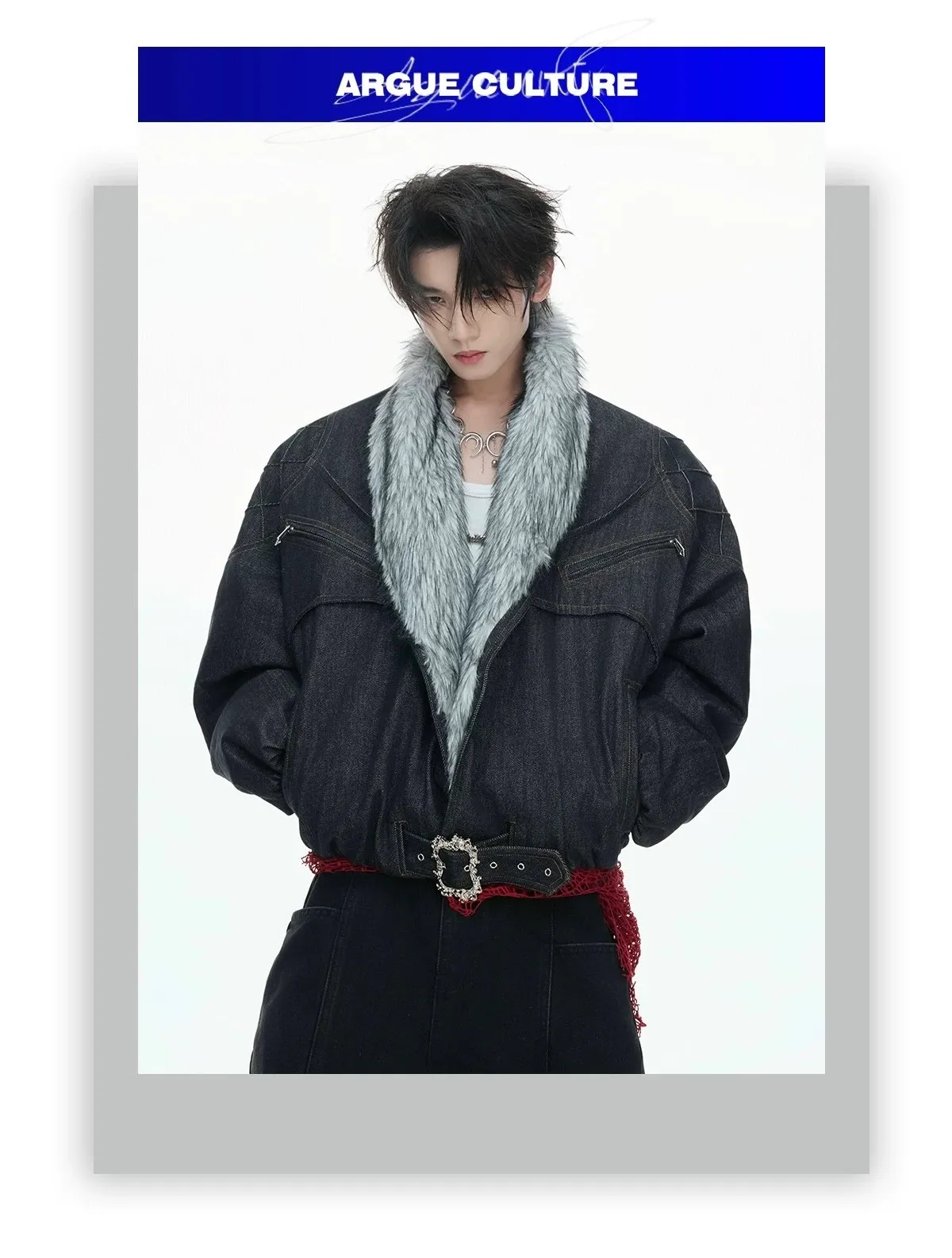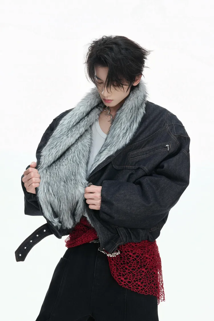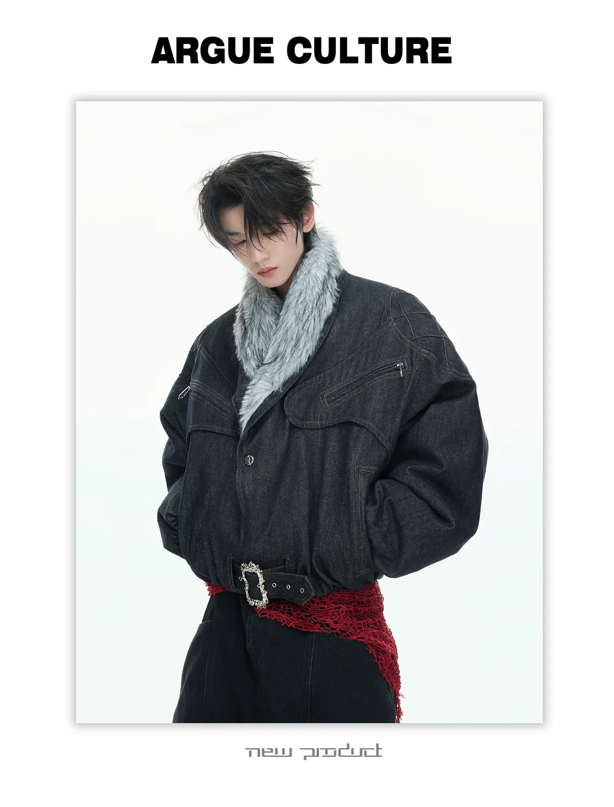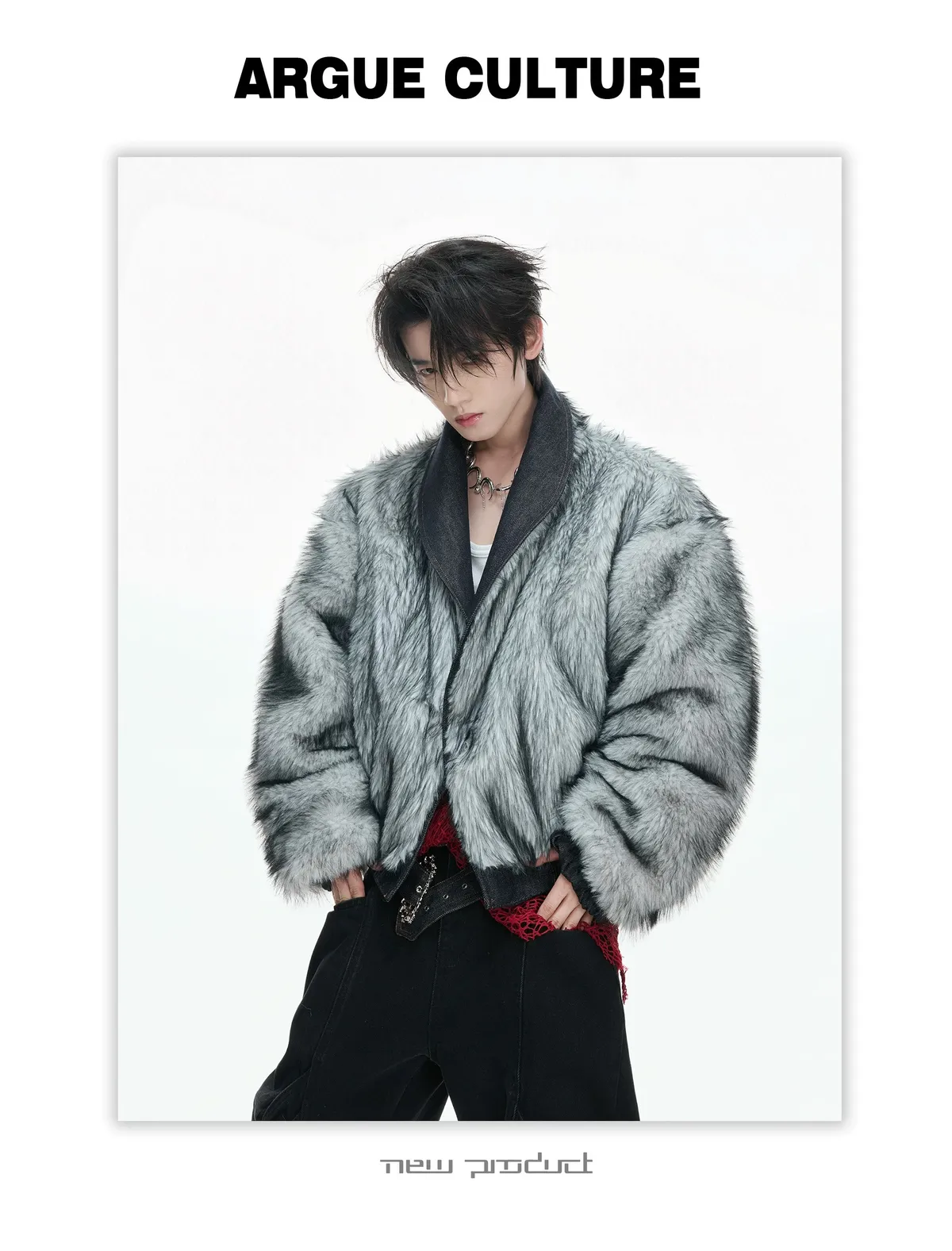 ARGUE 90白鴨絨 蛇紋肌理 狼毛 外套 (黑/白)