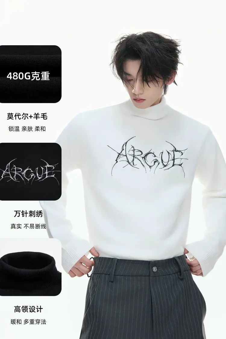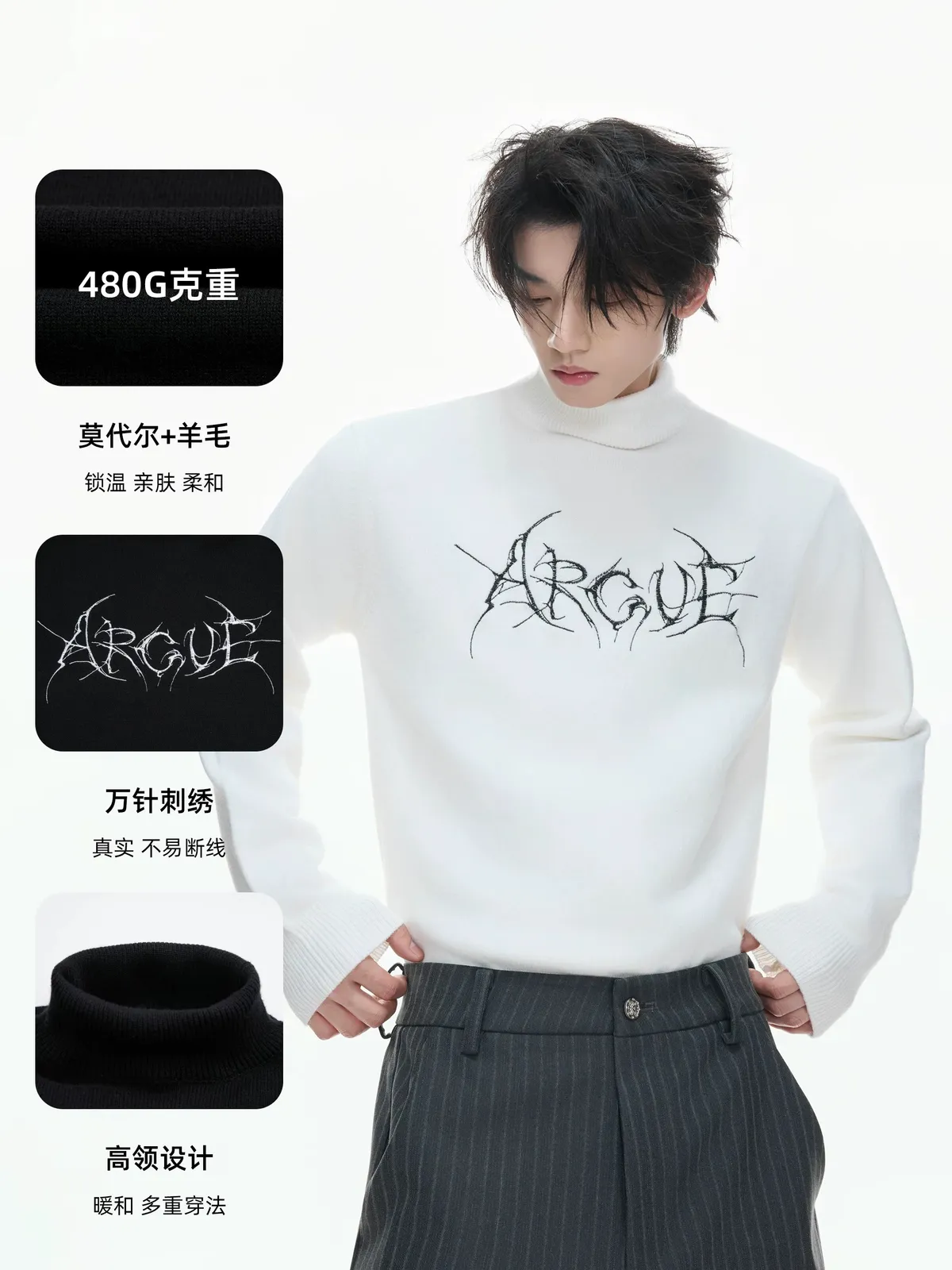 ARGUE 莫代爾棉 小高領 羊毛 長袖(黑/白/灰/杏)