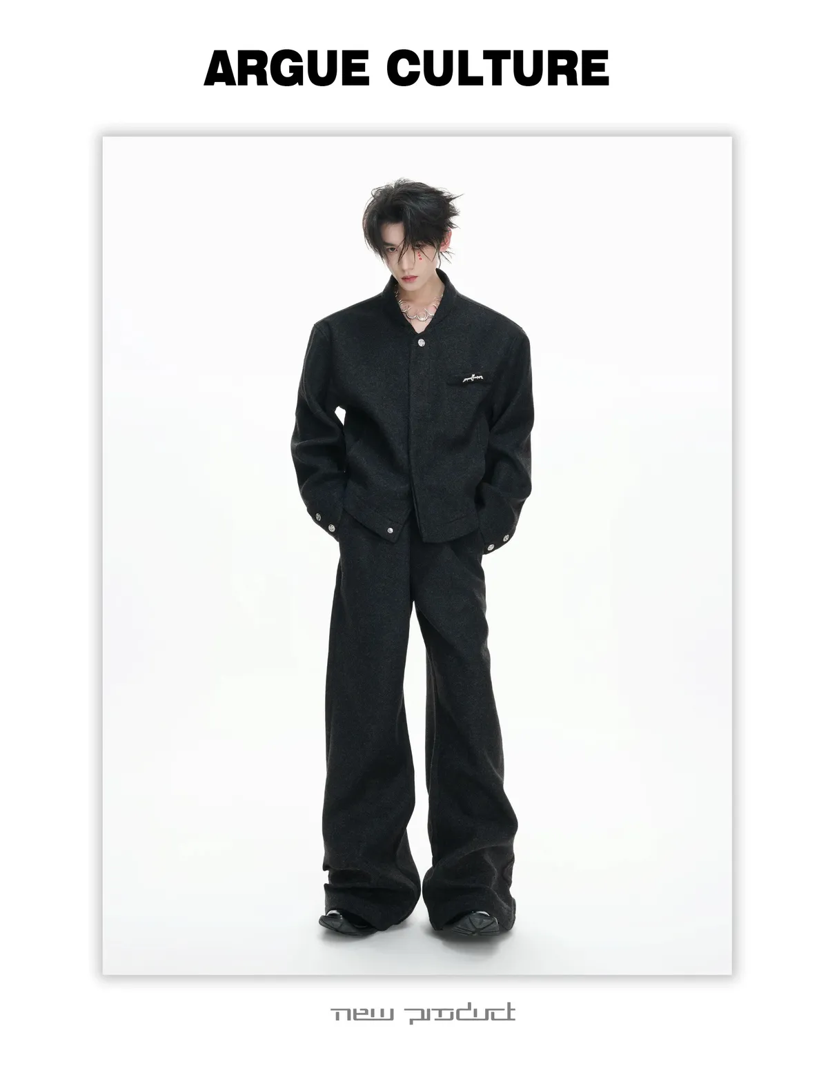ARGUE 重工復古 廓形 牛仔外套 微喇叭 牛仔褲 套裝(水泥灰)