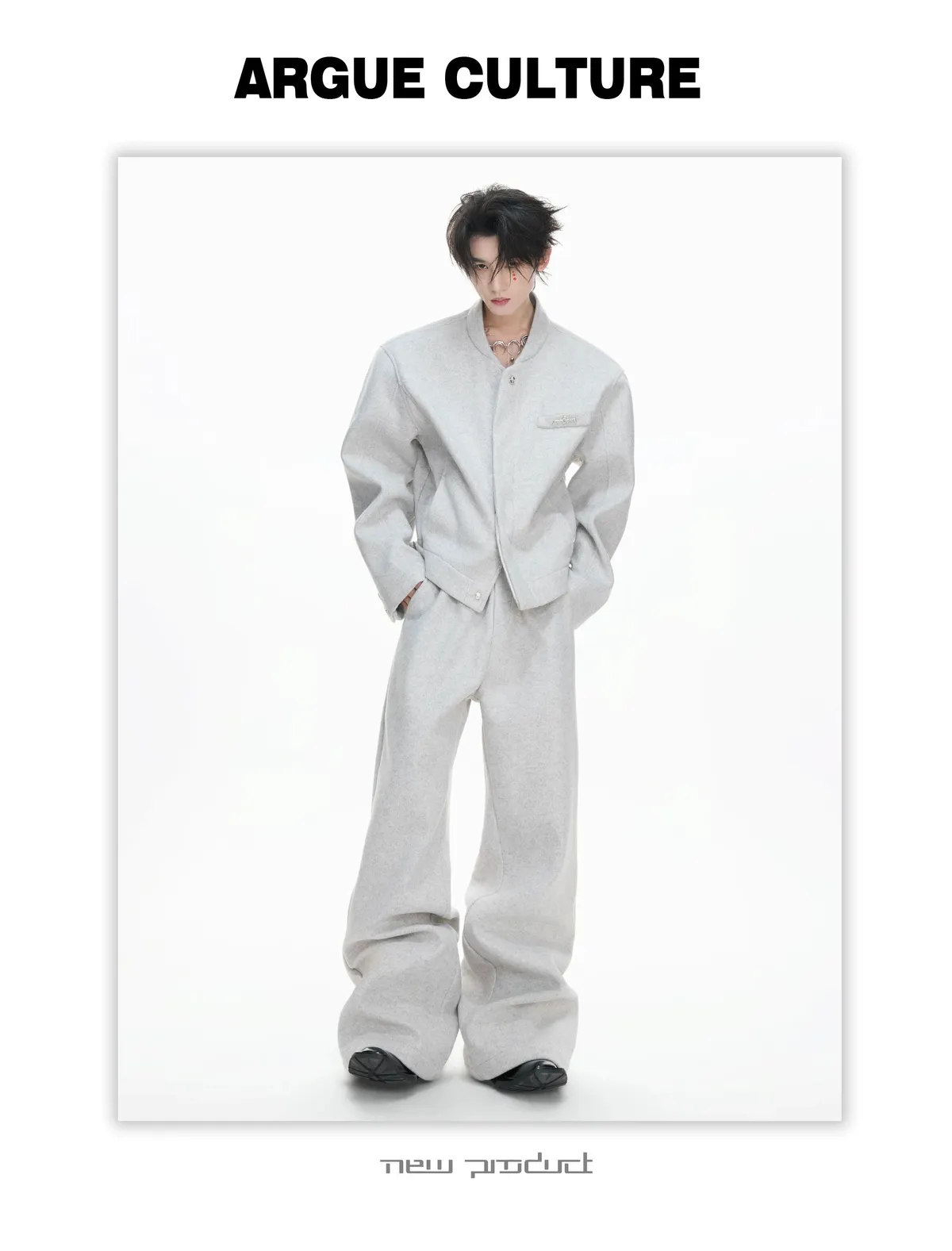 [LAX STUDIO] ARGUE 秀款 廓形收腰 解構毛呢 西裝外套 西裝褲 套裝(灰