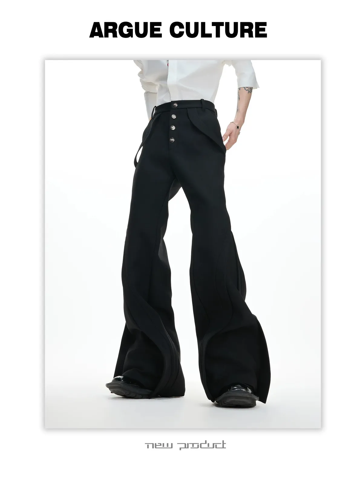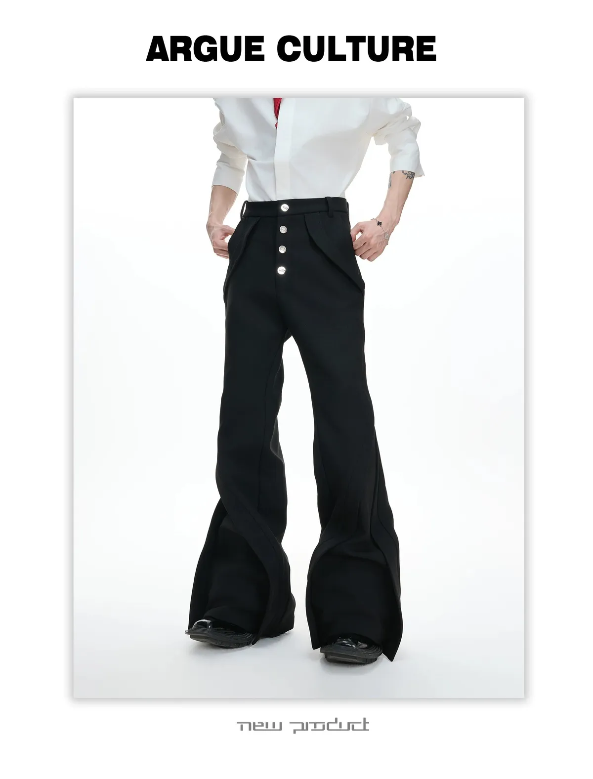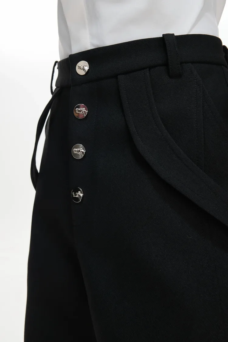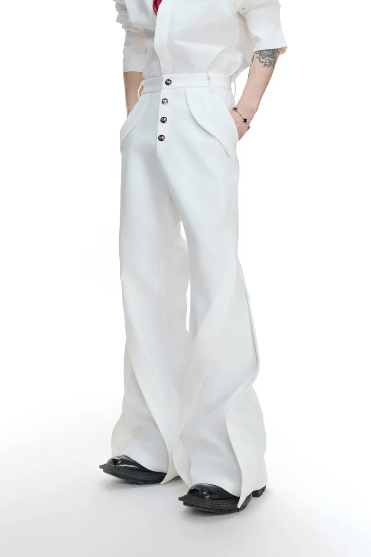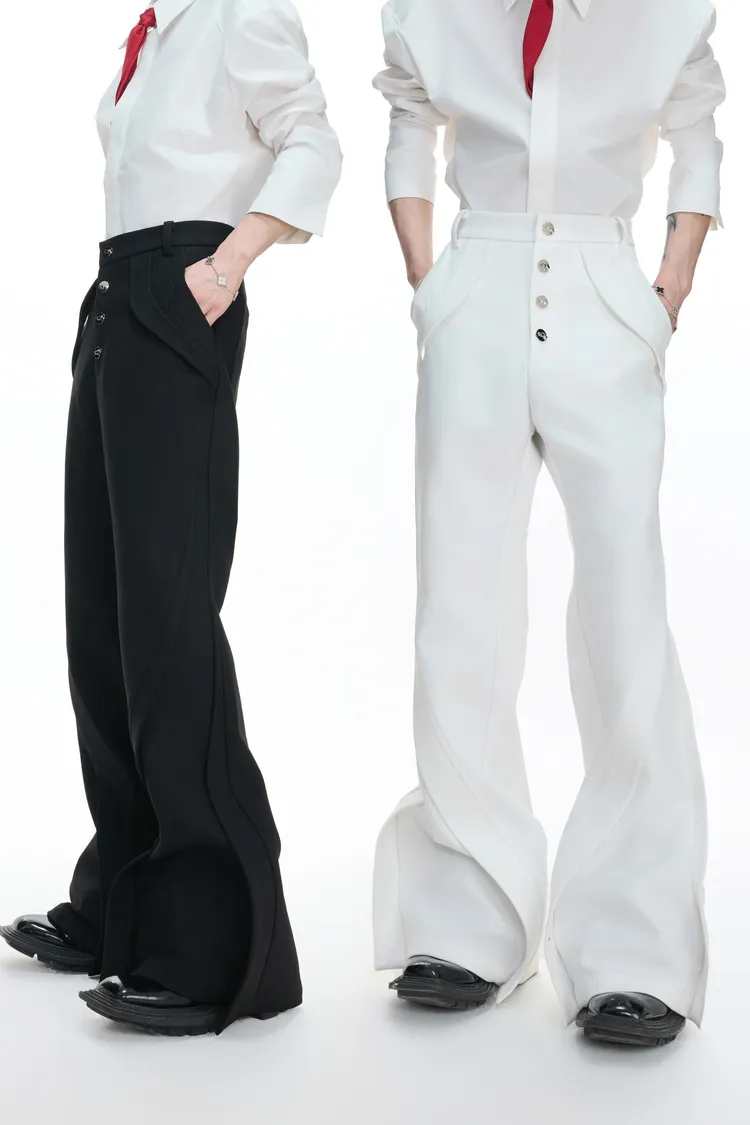 ARGUE 微喇叭 金屬釦 立體裁片 西裝褲(黑/白)