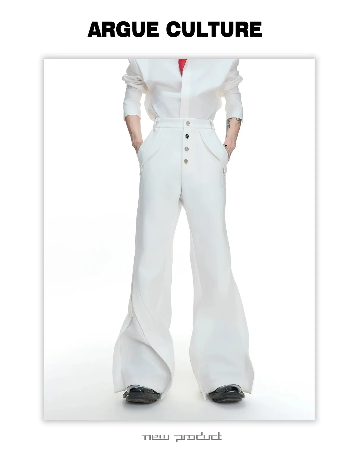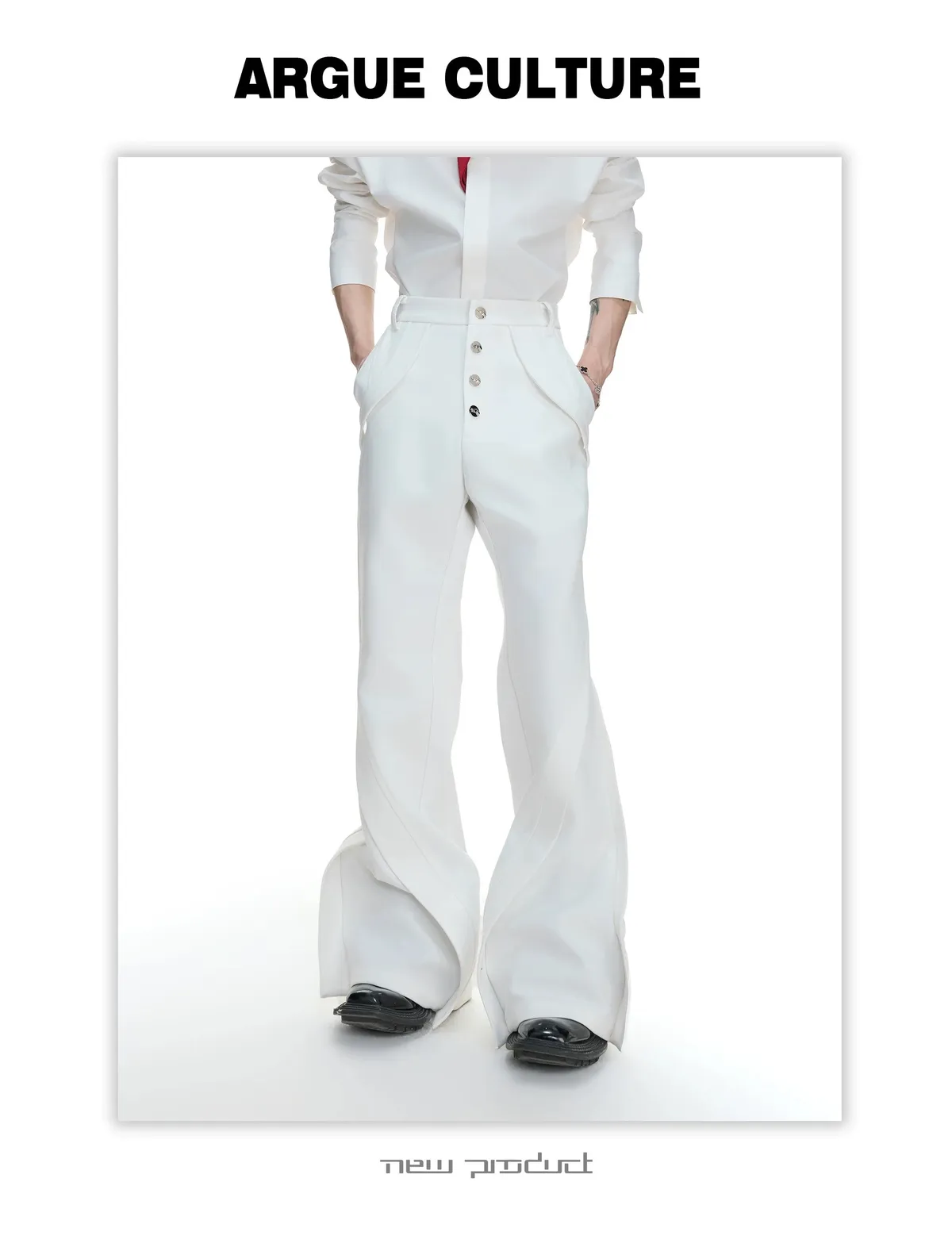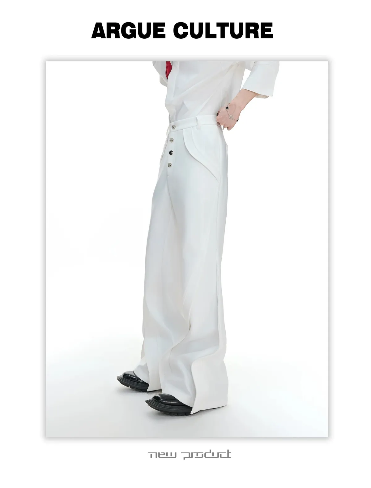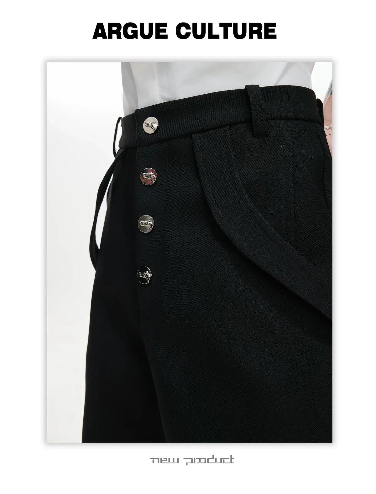 ARGUE 微喇叭 金屬釦 立體裁片 西裝褲(黑/白)