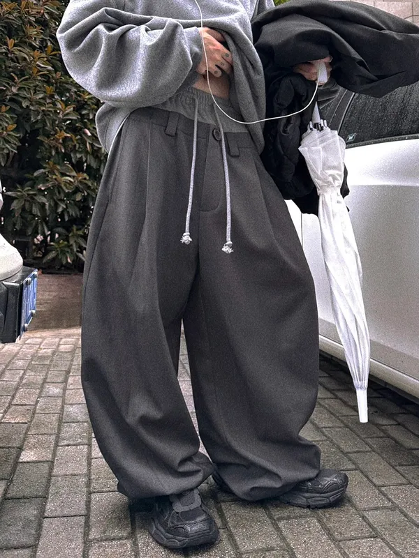 AUROCEAN 雙褲頭 磨毛打褶 西裝褲(深灰)