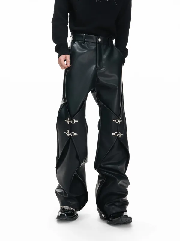 ARGUE 上蠟 消防釦 分割垂墜 皮褲(黑色)