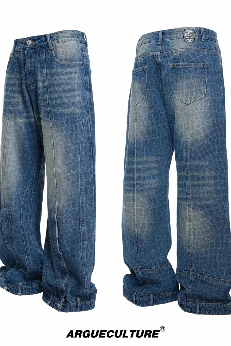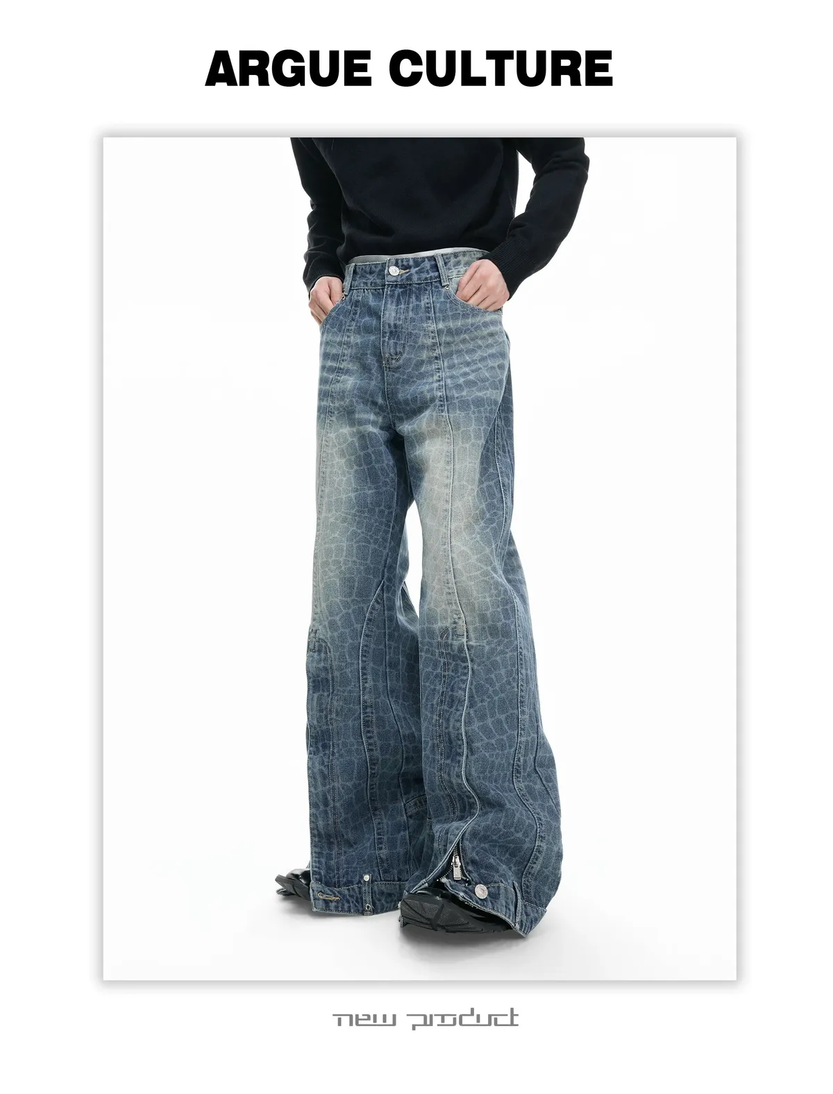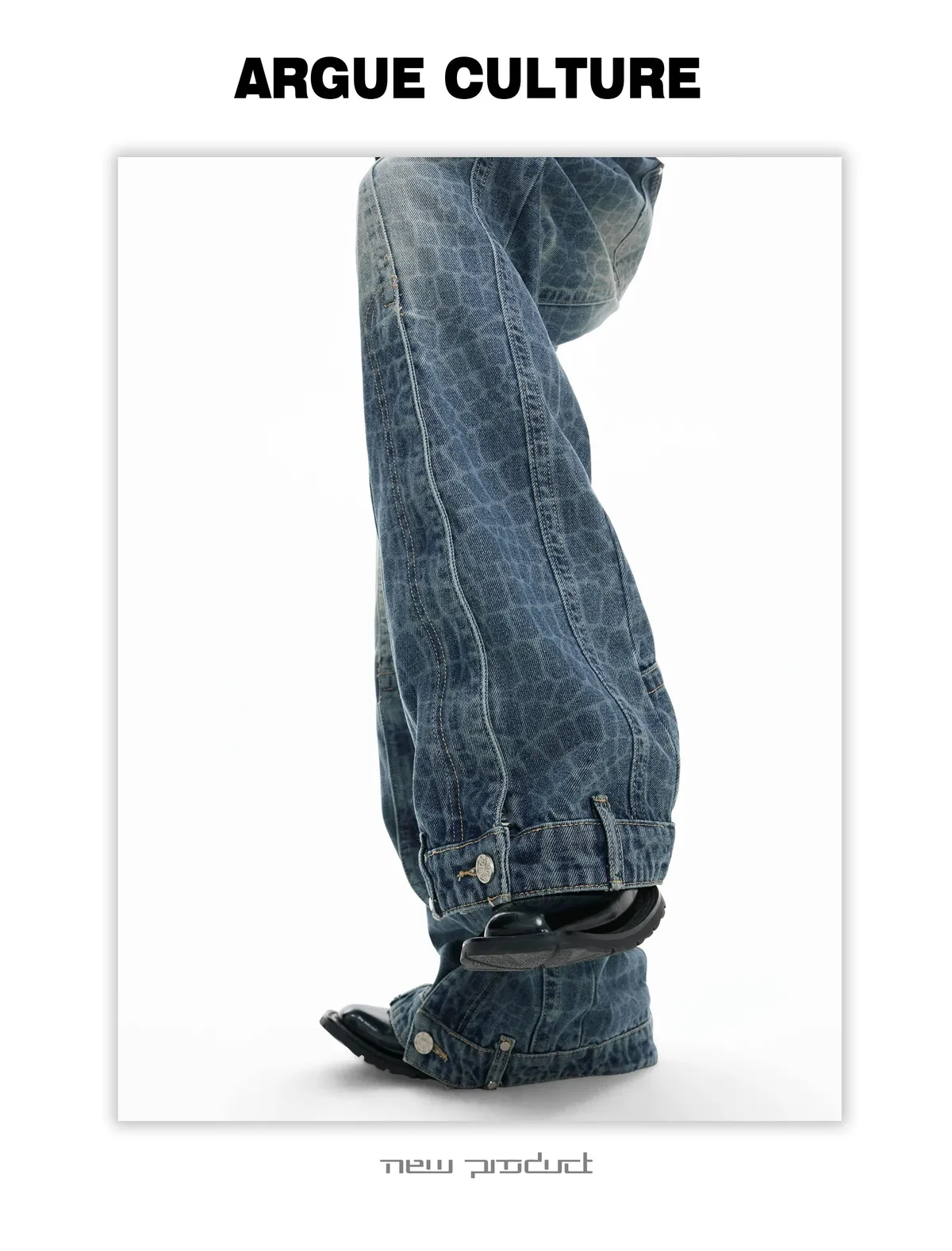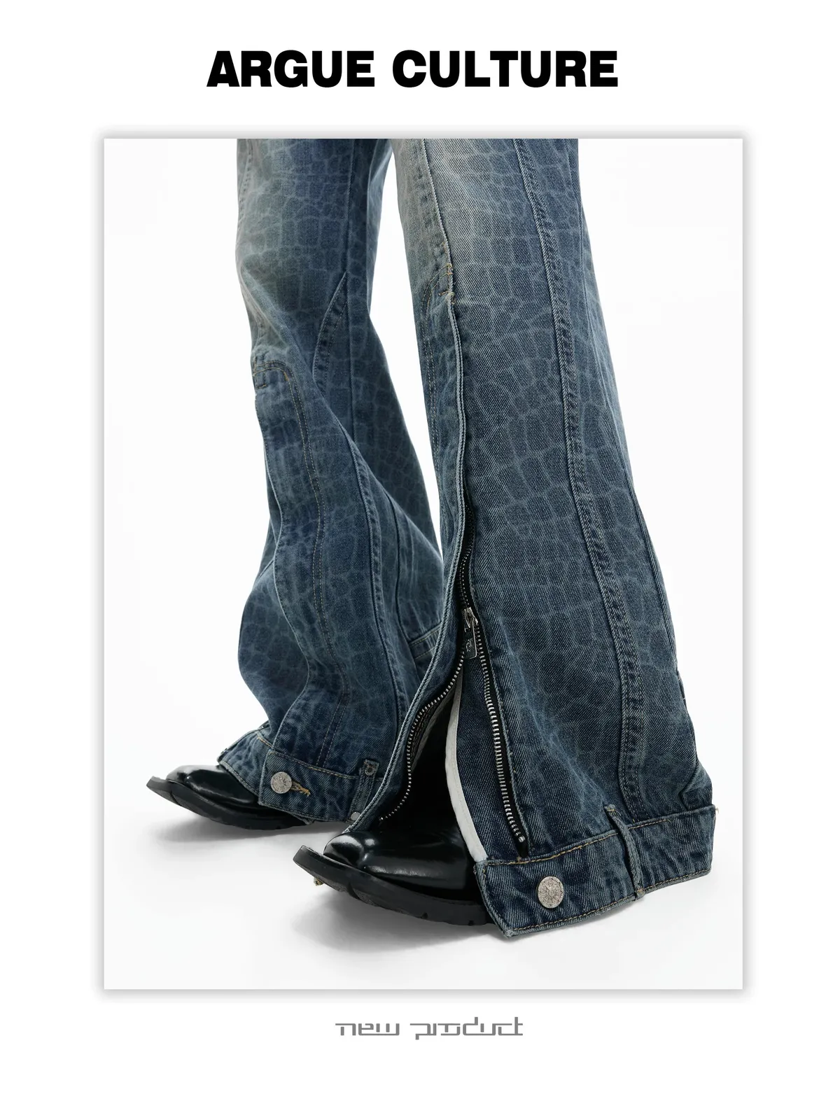 ARGUE 爆裂紋 前開衩 可調拉鏈 牛仔褲(藍色)